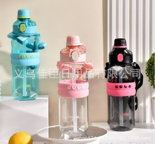 亚马逊热销款简约高级吸管直饮双饮用杯男女运动水壶学生便携水杯