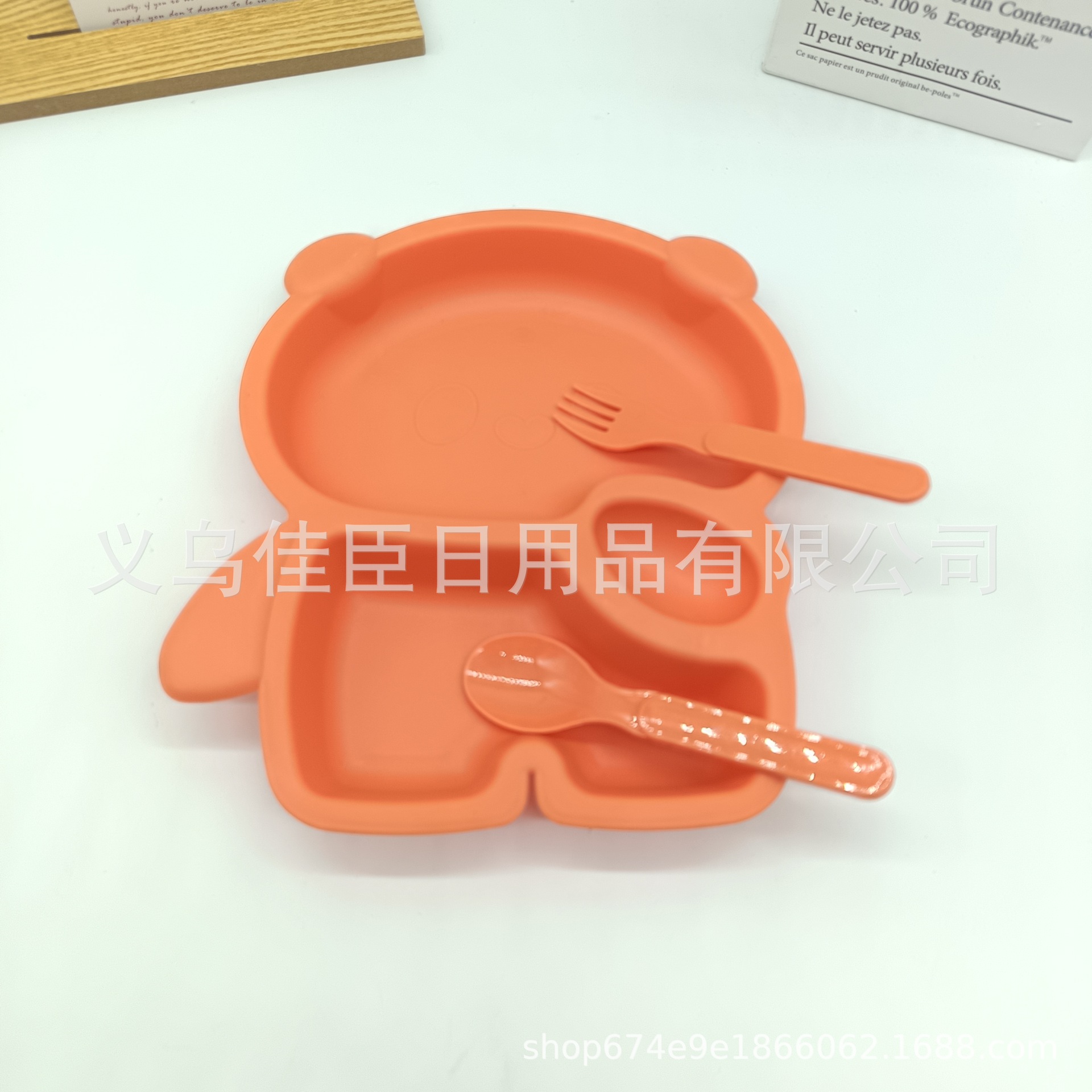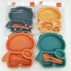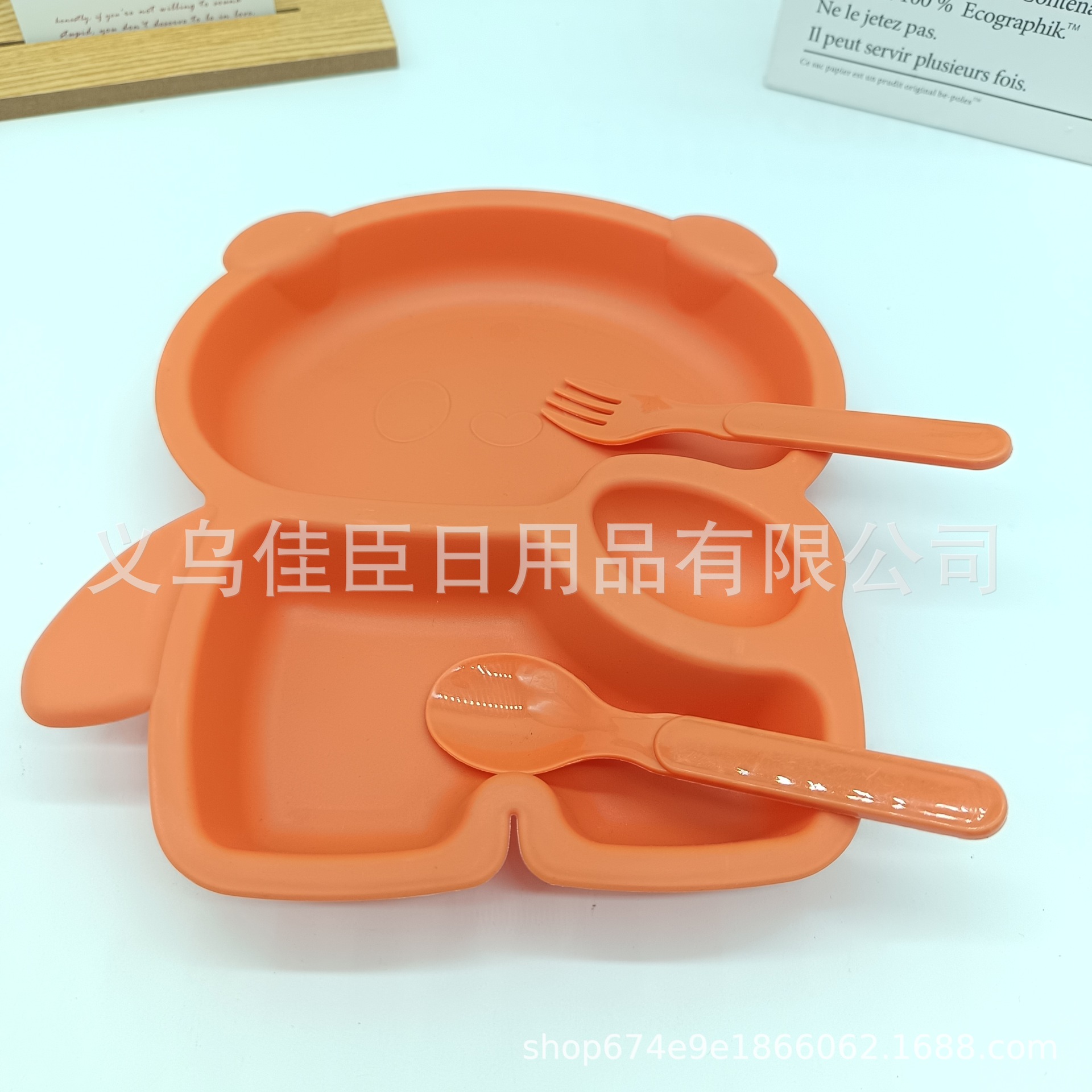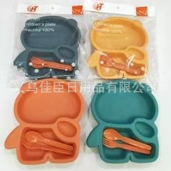跨境热销pp材质儿童餐盘带餐具套装可爱小熊猫创意高颜值宝宝餐盘