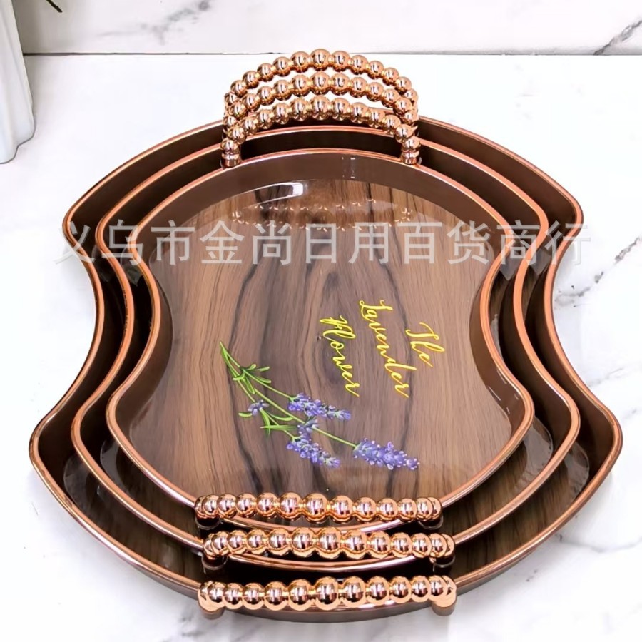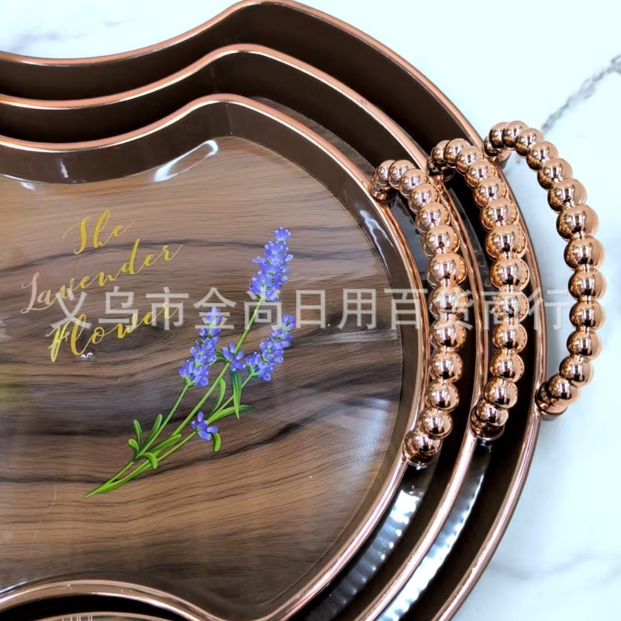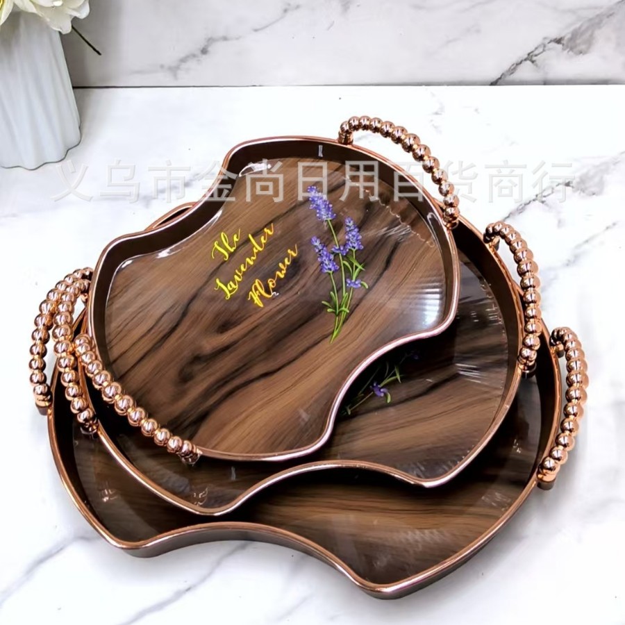 新轻奢不规则托盘珍珠手柄餐厅茶盘茶几杯子放茶杯水杯家用客厅餐