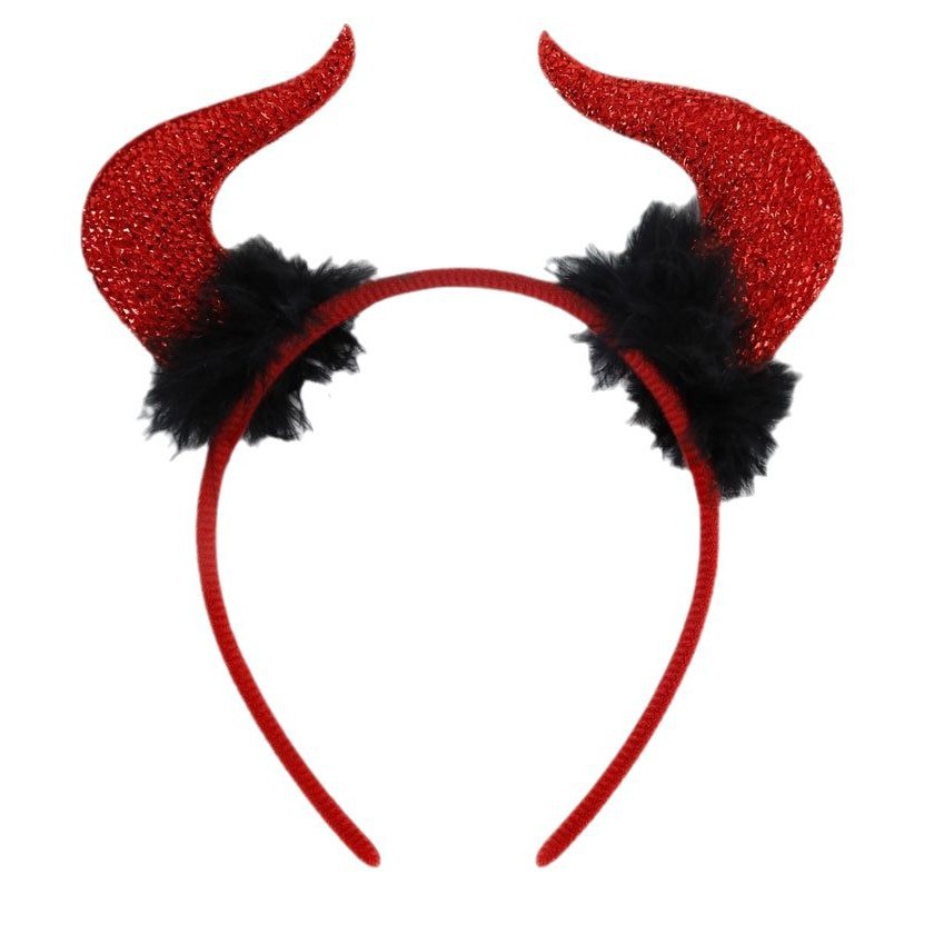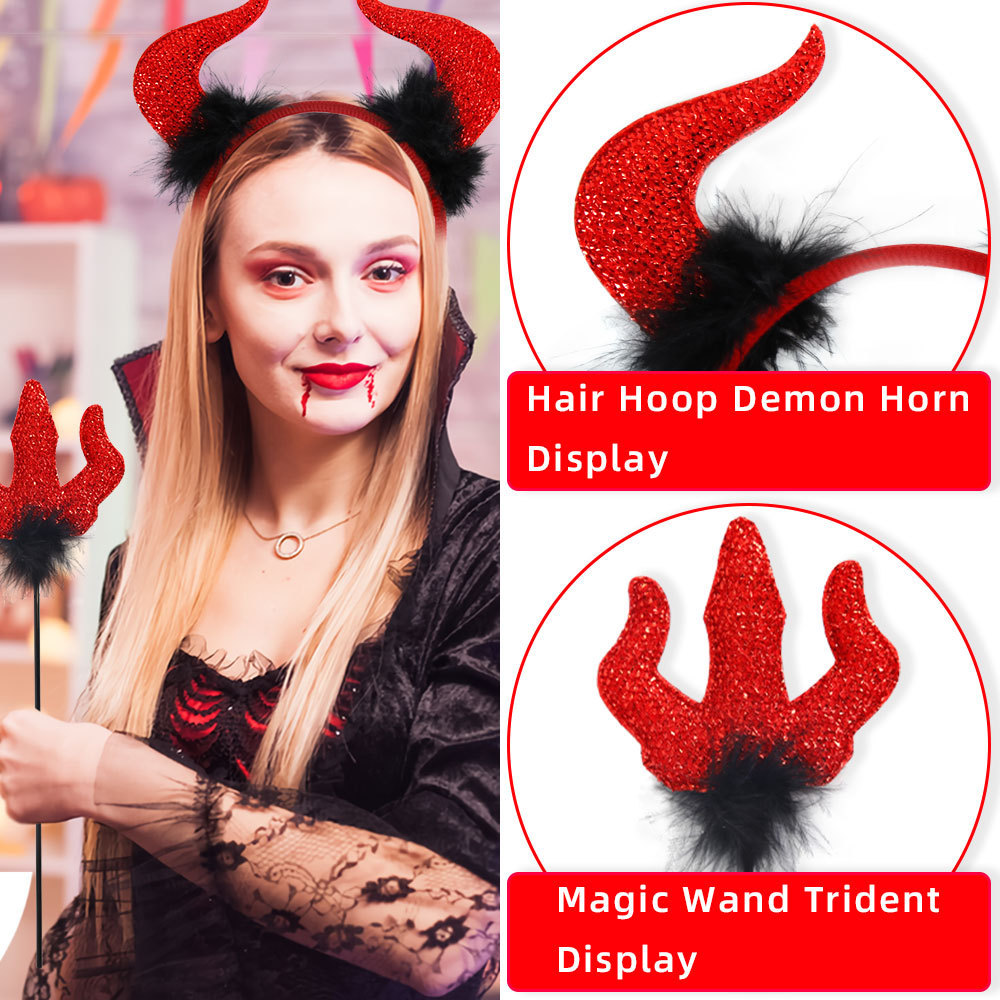 万圣节派对化妆舞会儿童表演装扮红色恶魔牛角头饰发箍手杖套装