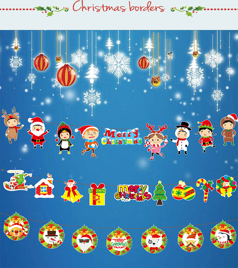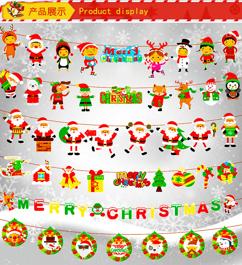 圣诞节装饰品圣诞拉旗挂旗节日横幅派对装饰纸质卡通圣诞拉花串旗