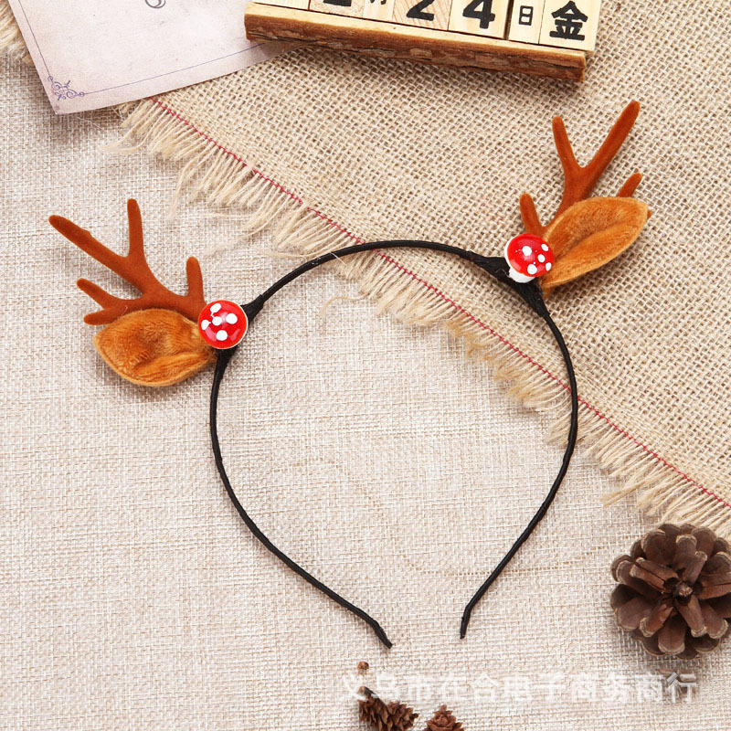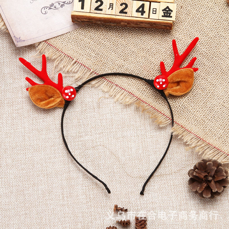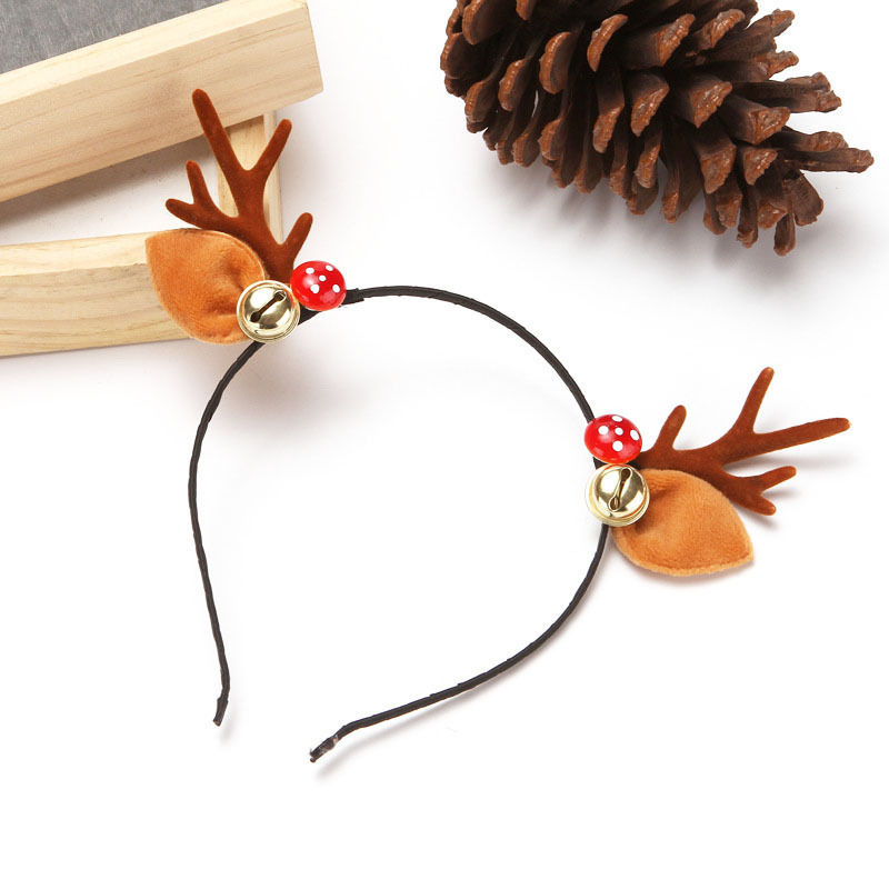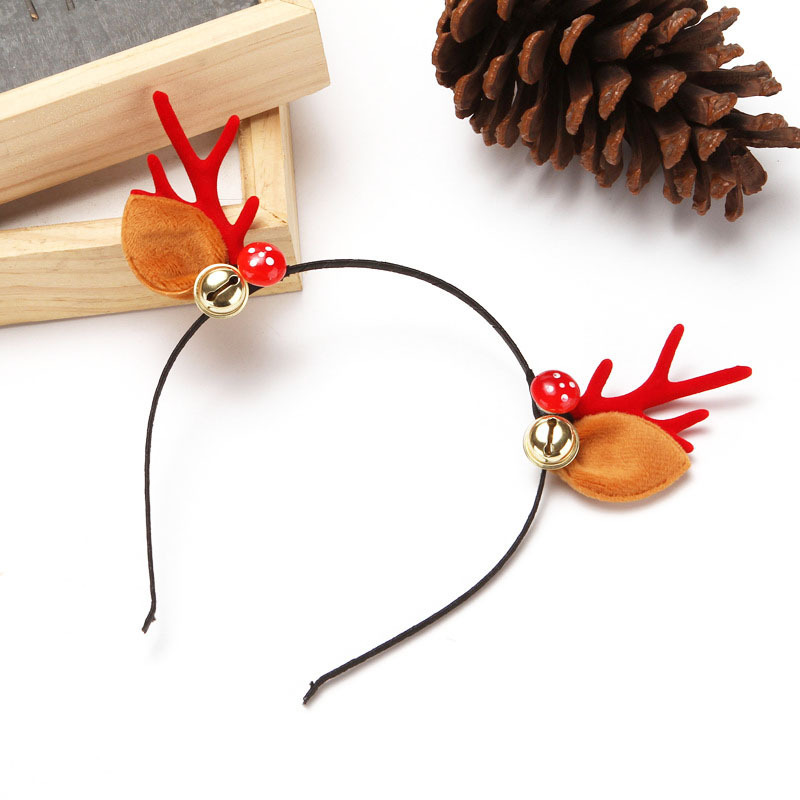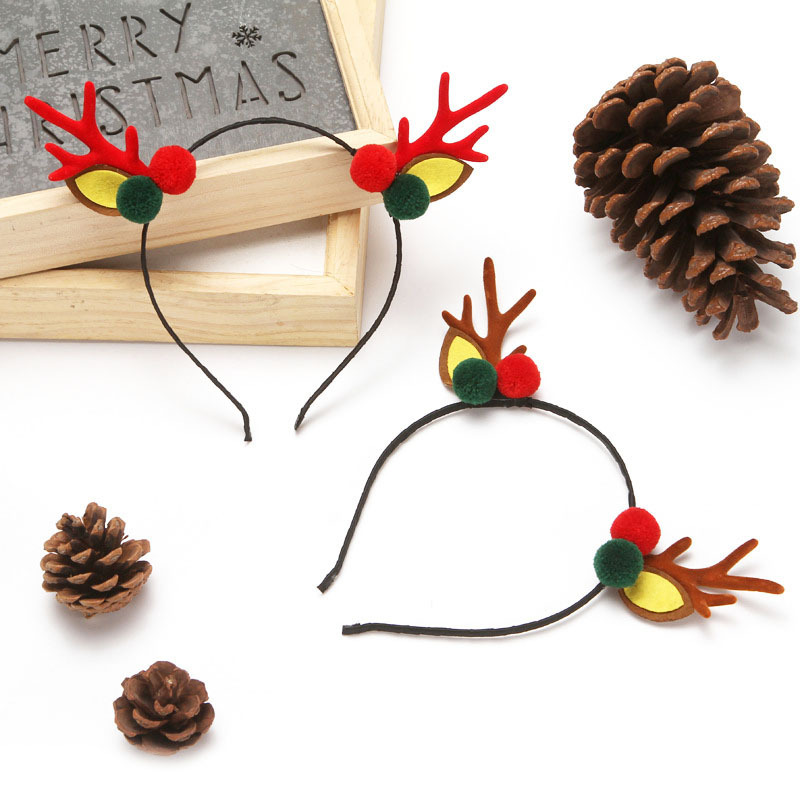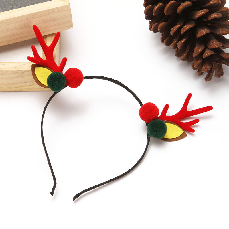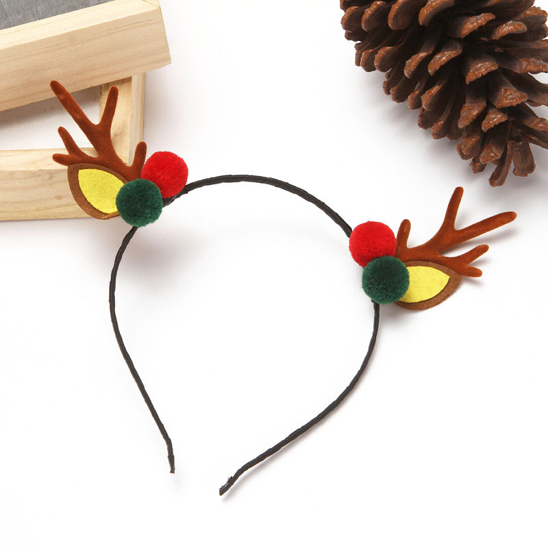 亚马逊圣诞鹿角发箍欧美节日派对装扮儿童圣诞节毛球铃铛头饰头扣