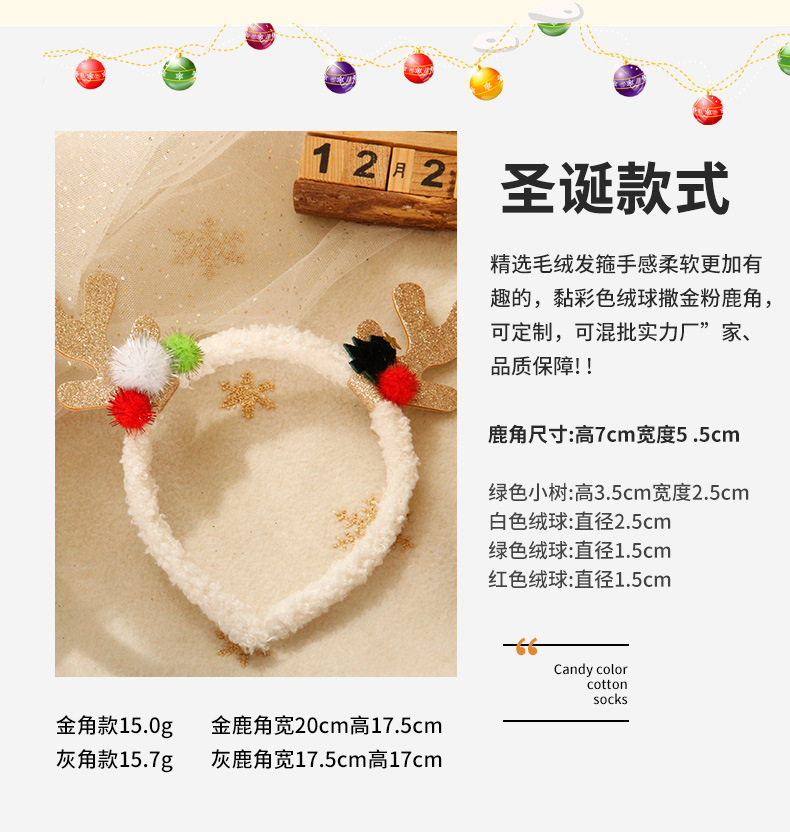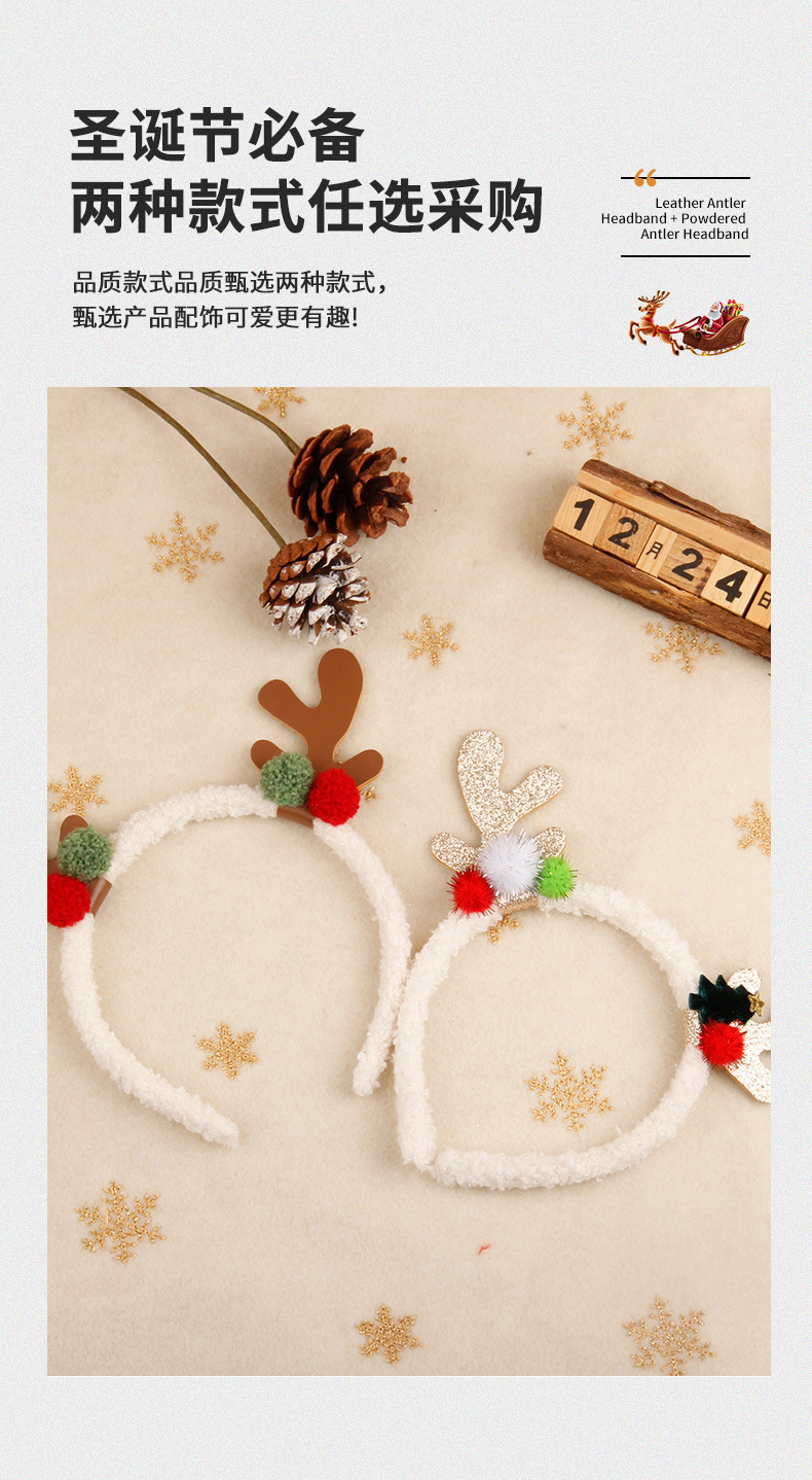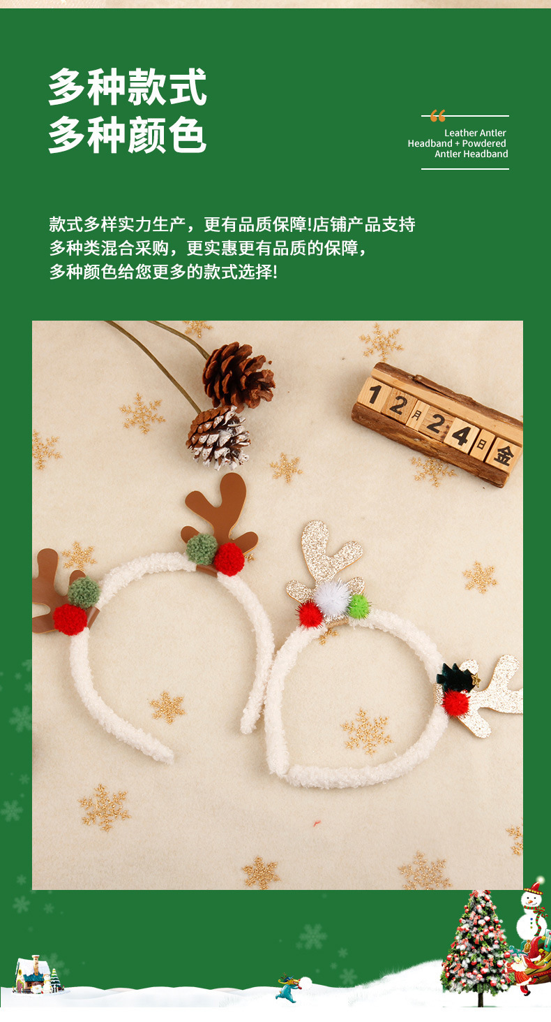 跨境圣诞节鹿角发箍麋鹿彩色头箍少女头扣儿童节日派对发饰礼物