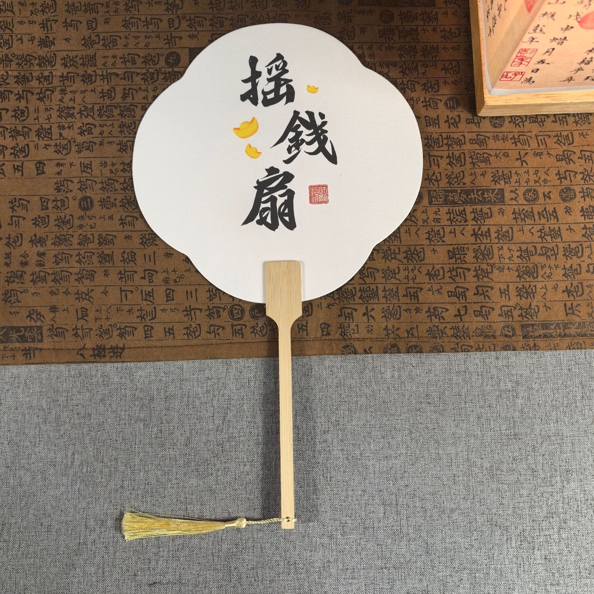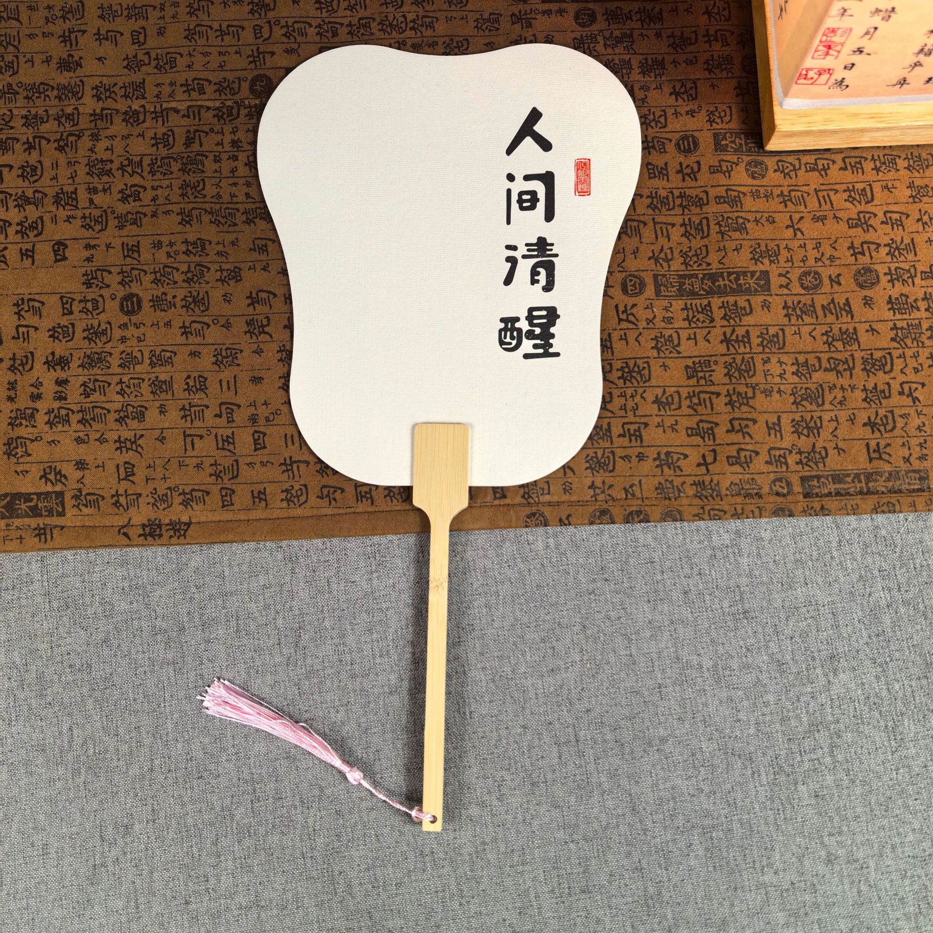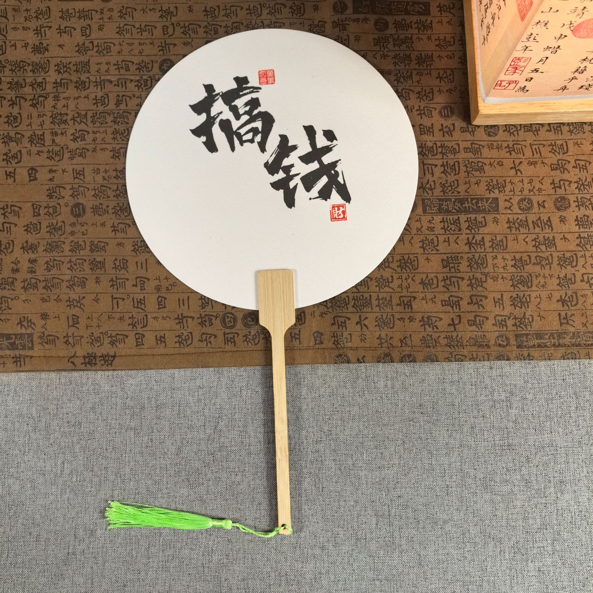 漆扇书法文字宣纸古风扇子国潮汉服拍照道具带字白色漂漆diy团扇
