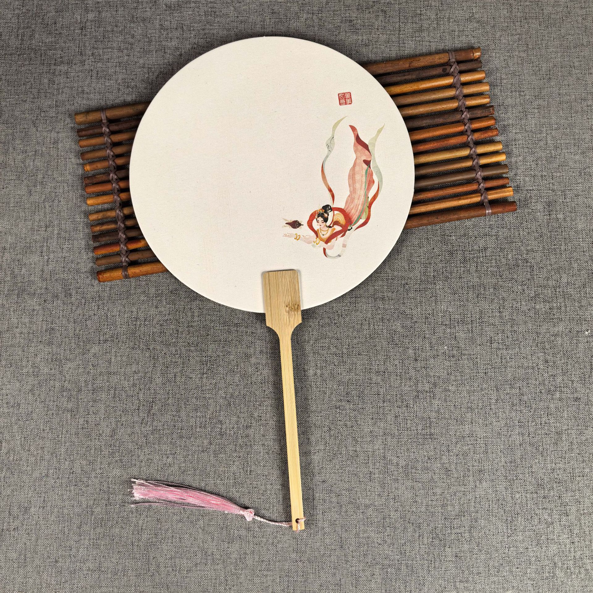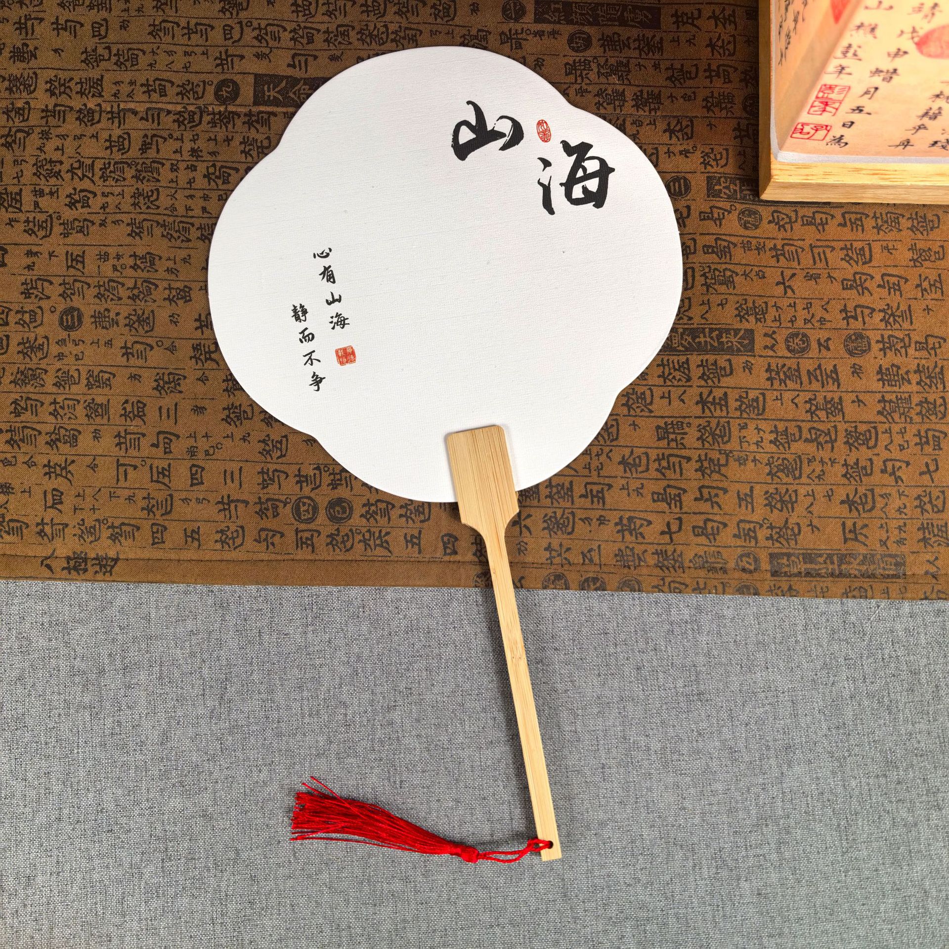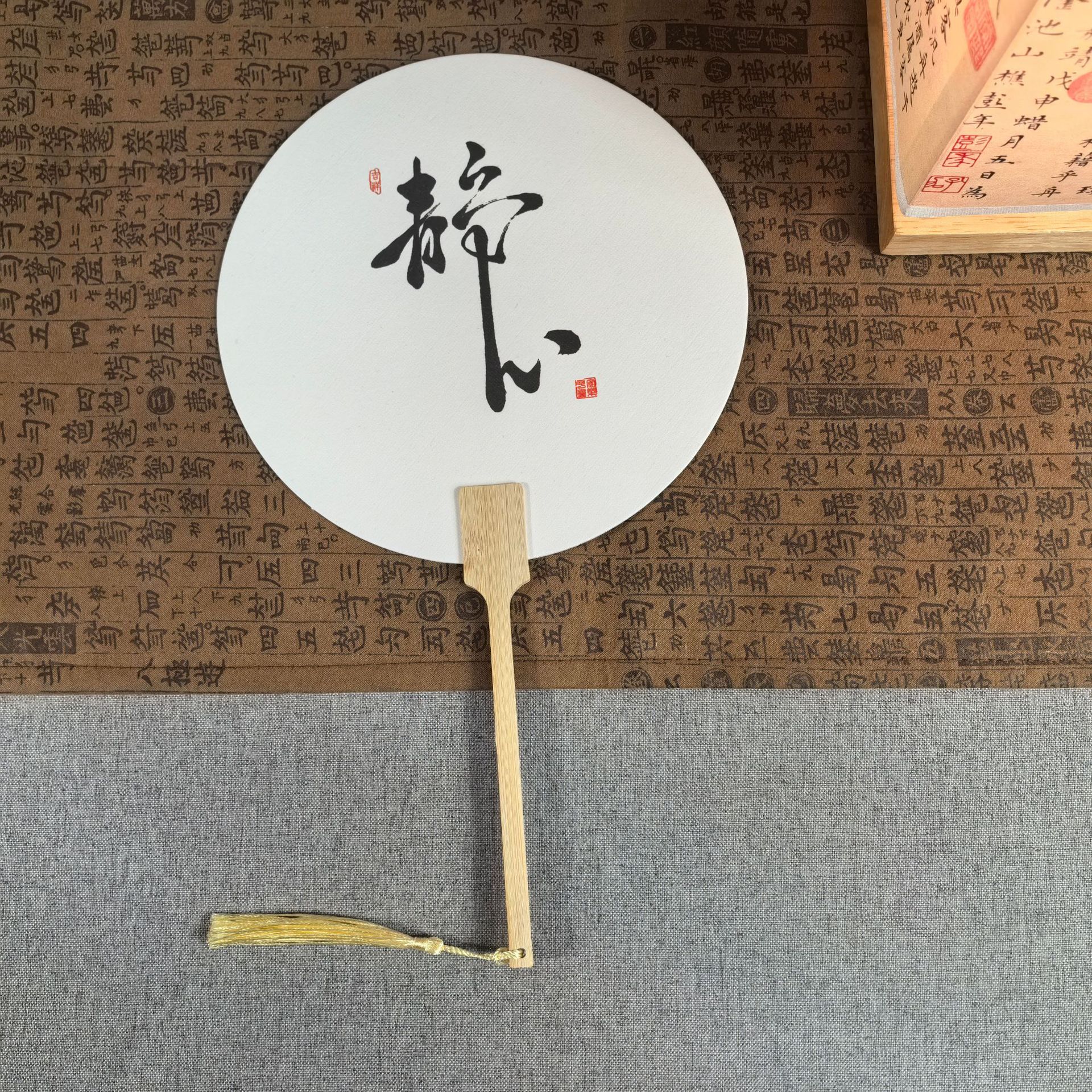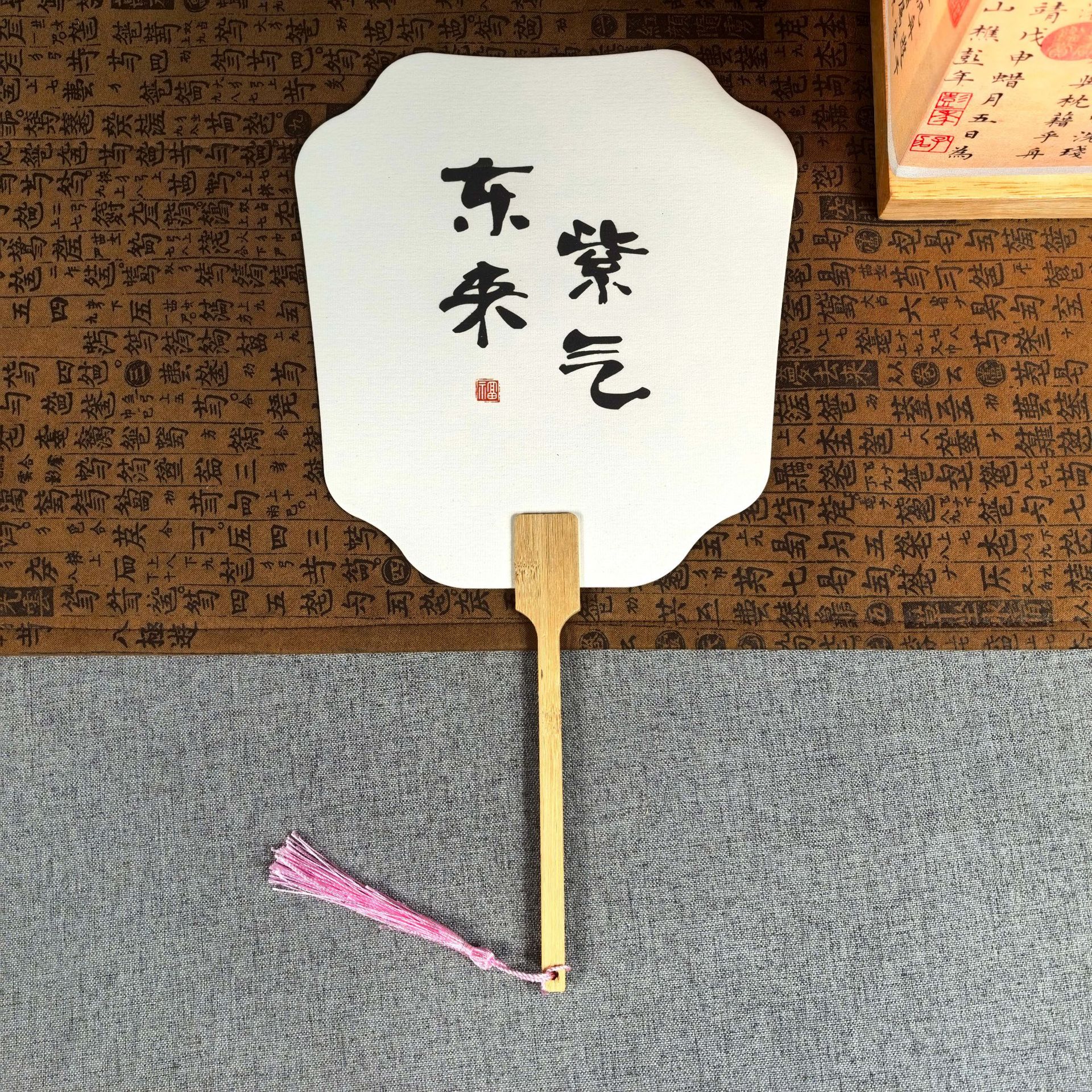 漆扇书法文字宣纸古风扇子国潮汉服拍照道具带字白色漂漆diy团扇