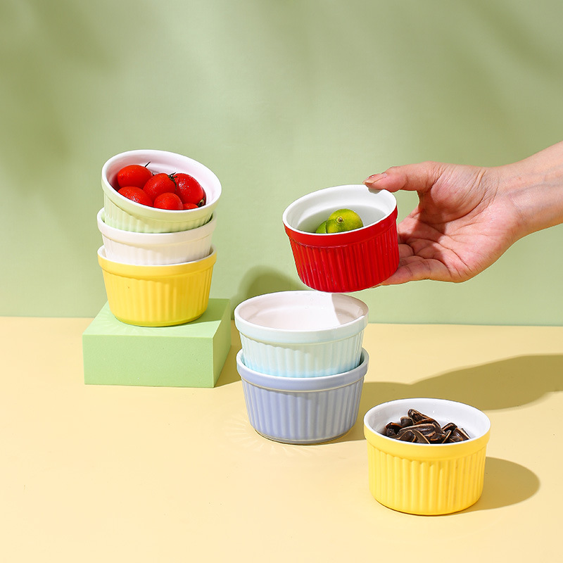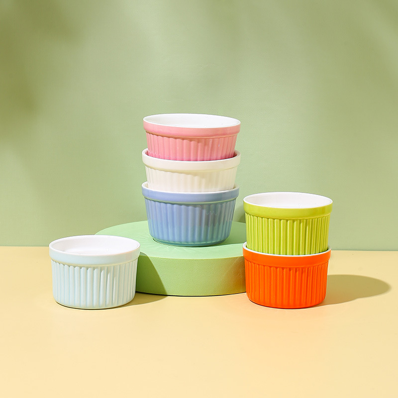 厂家批发陶瓷条纹盅 烘焙耐高温舒芙蕾烤碗条纹蛋糕盅舒芙蕾烤盅