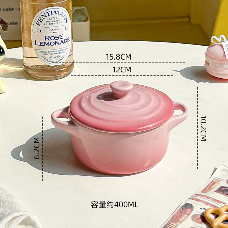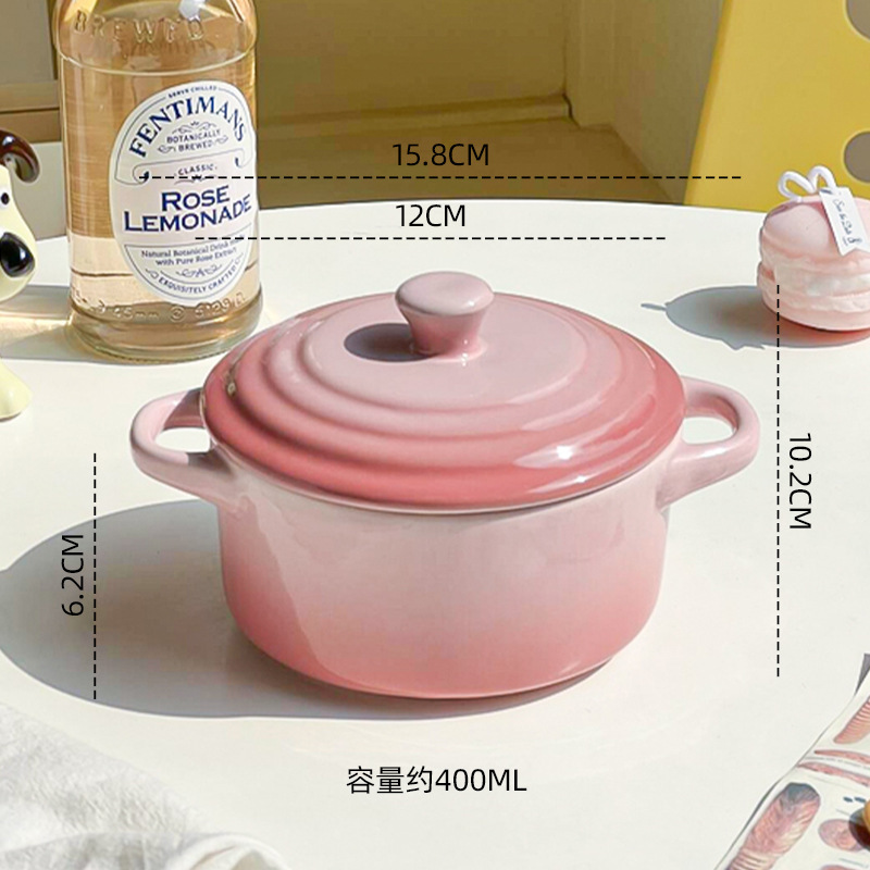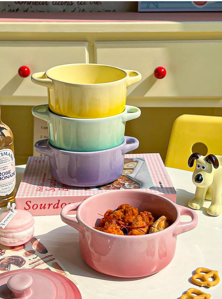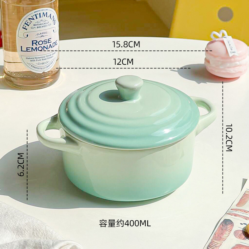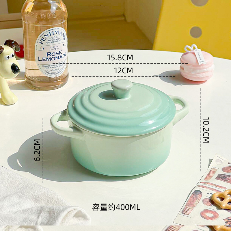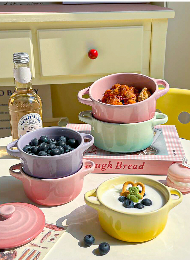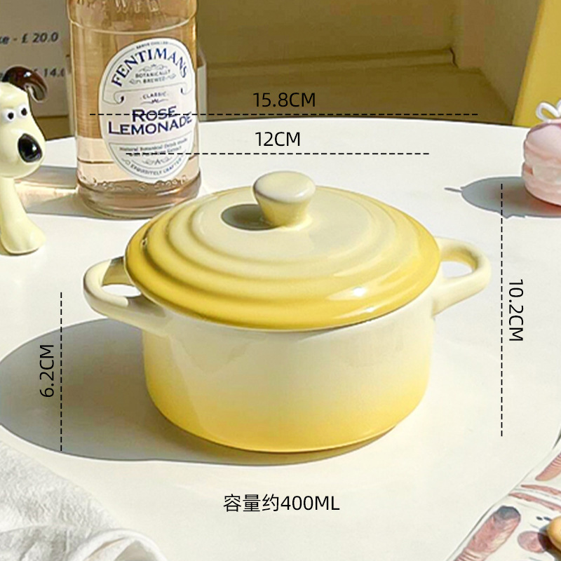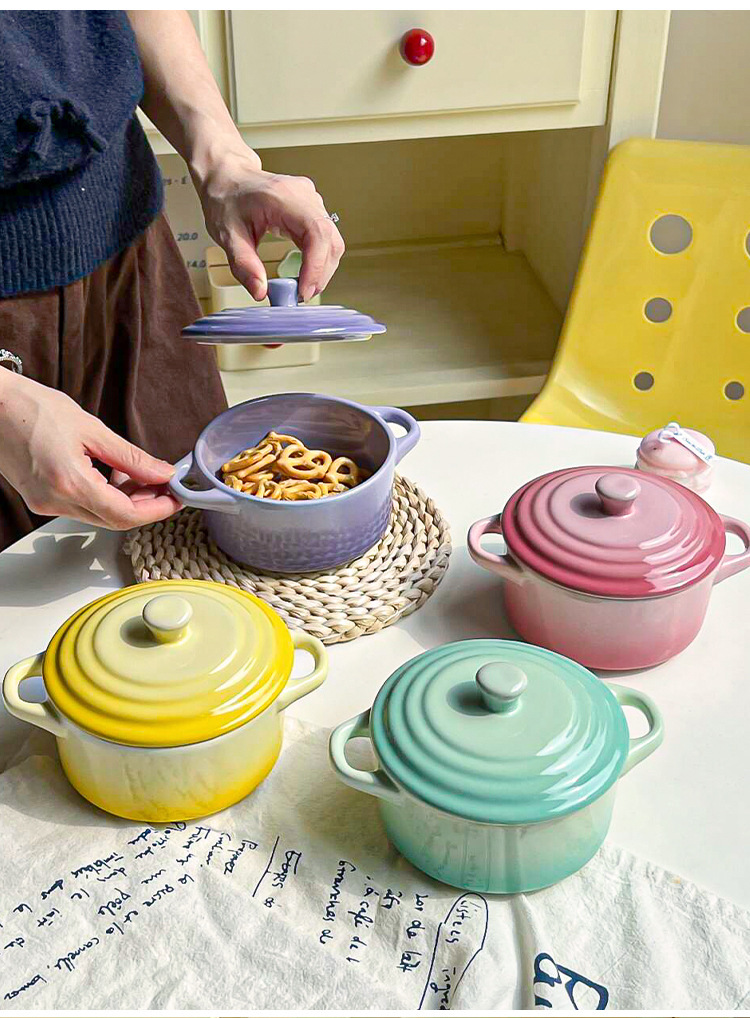 ins风渐变色陶瓷双耳带盖炖盅蒸蛋碗隔水炖家用炖燕窝微波炉烤碗