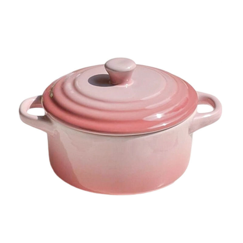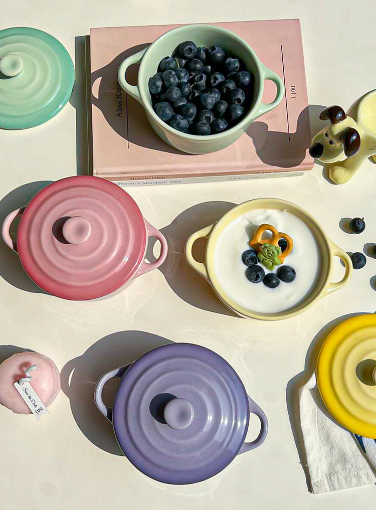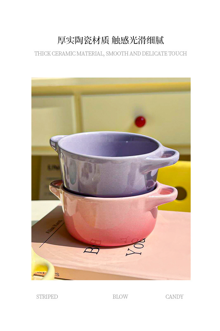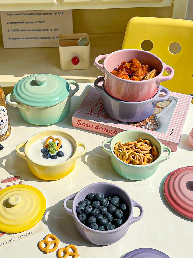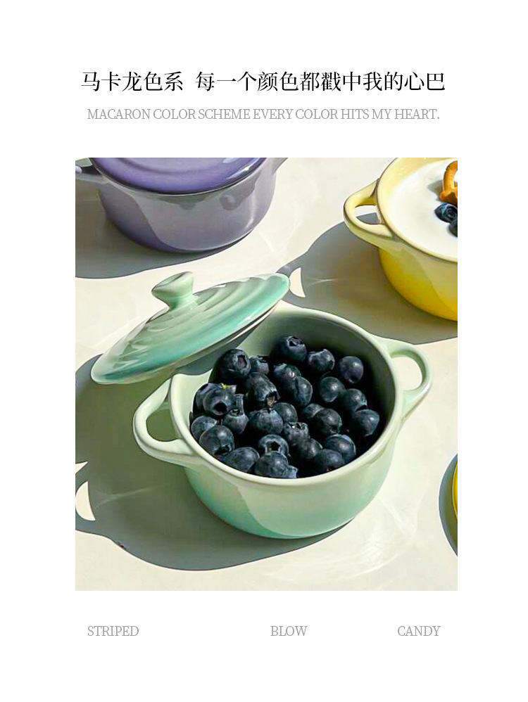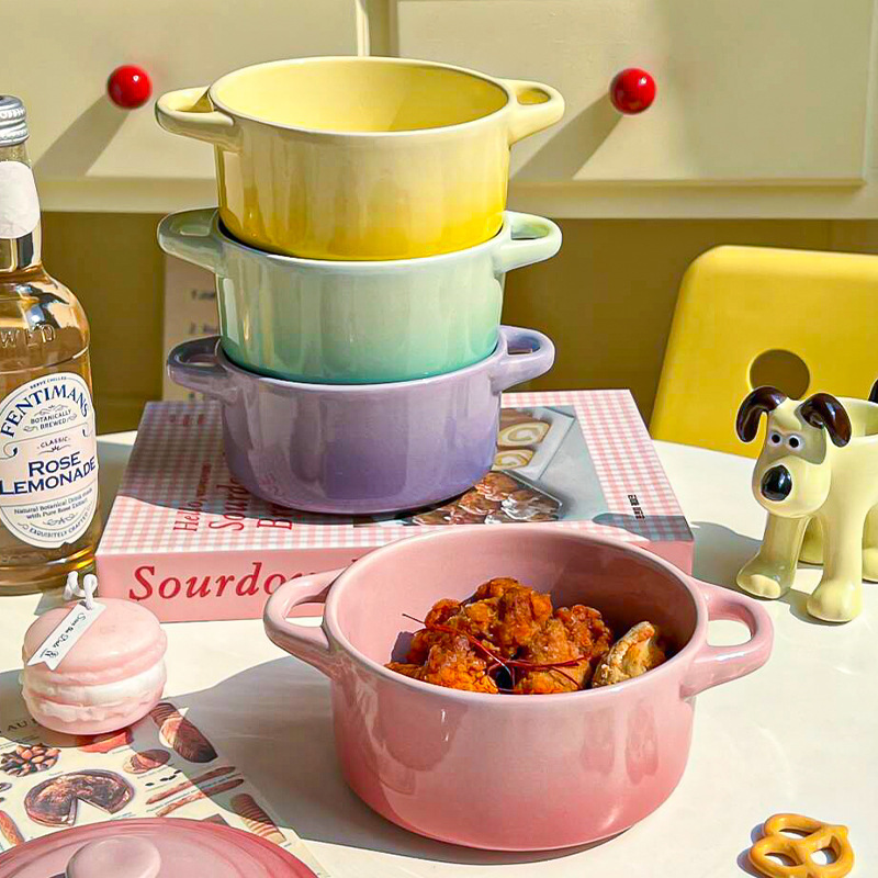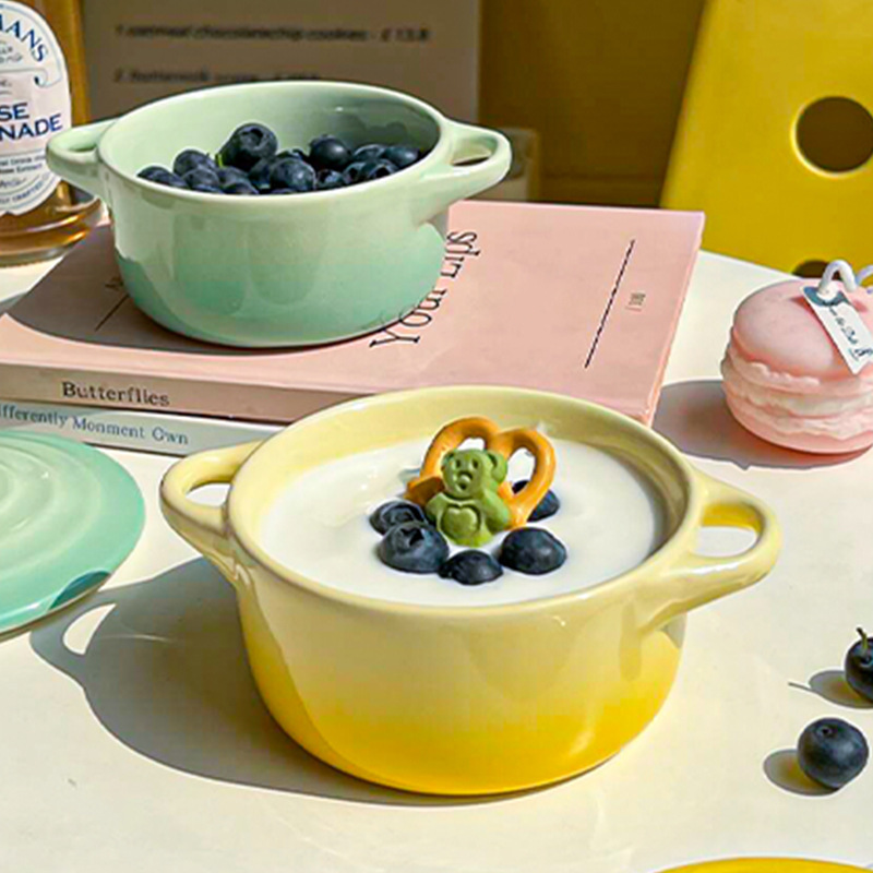 ins风渐变色陶瓷双耳带盖炖盅蒸蛋碗隔水炖家用炖燕窝微波炉烤碗