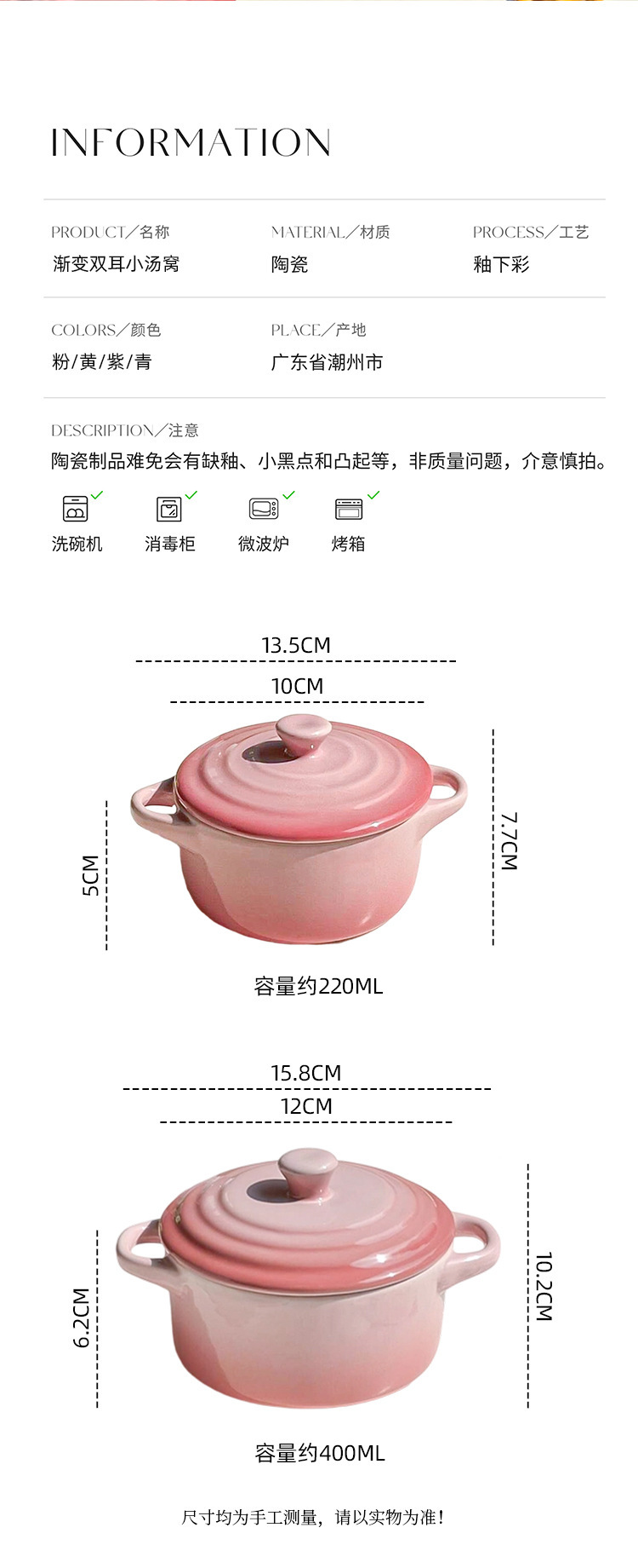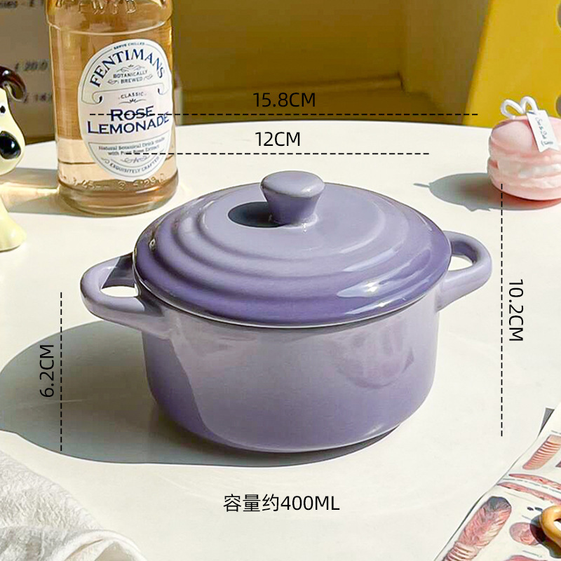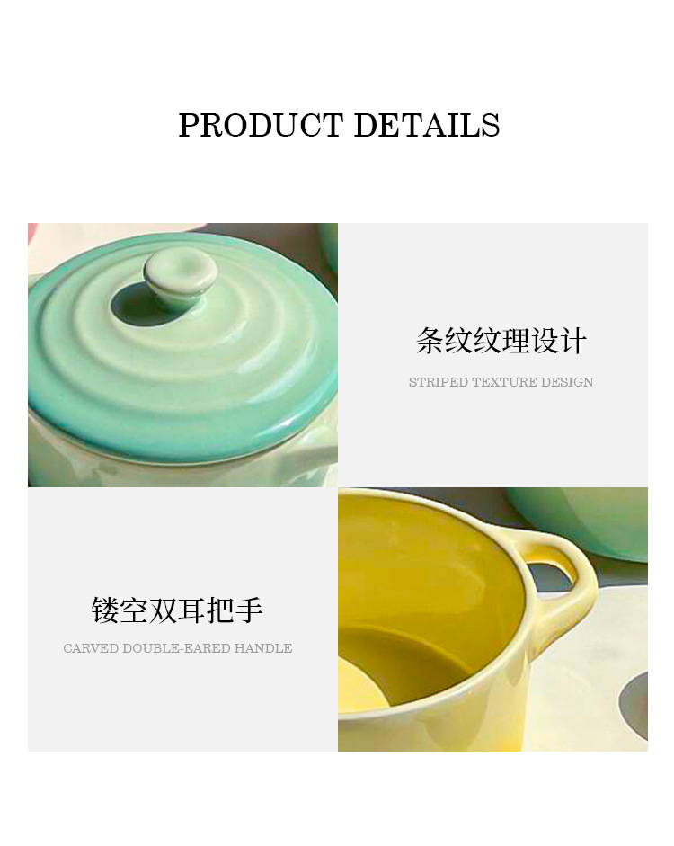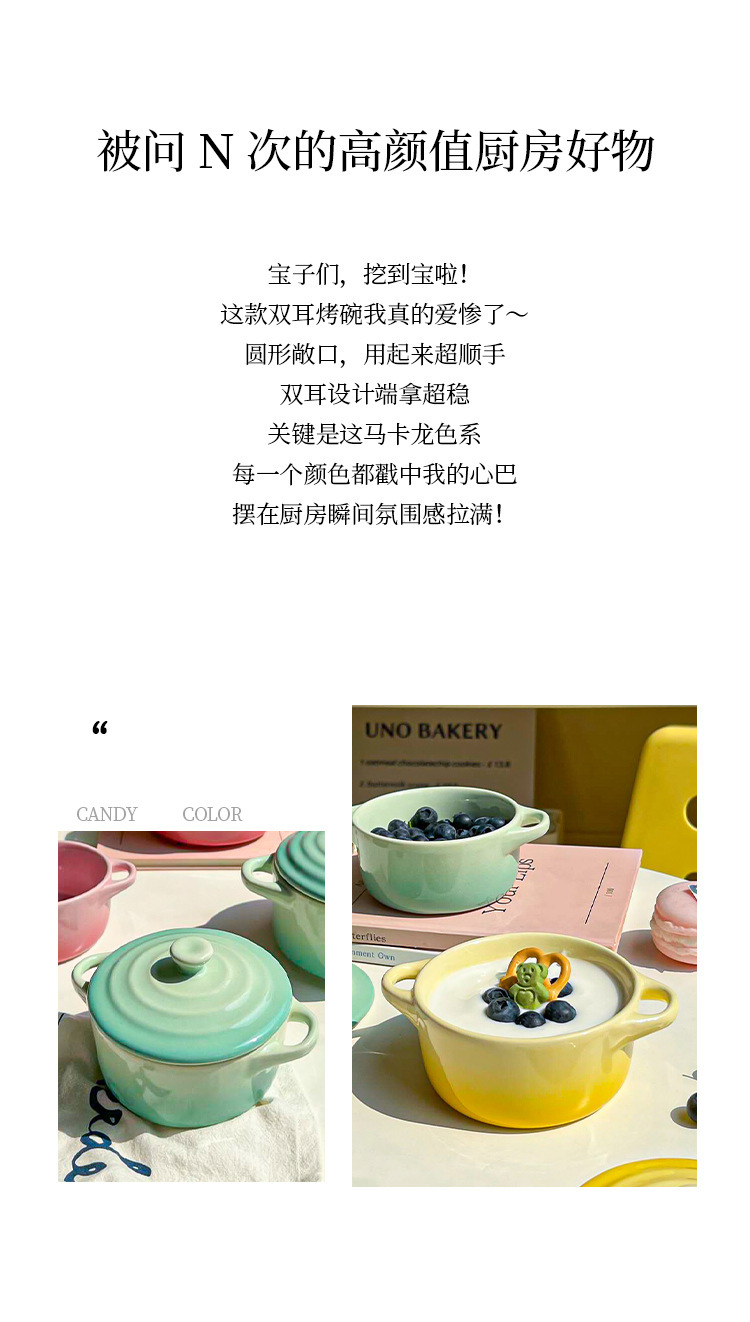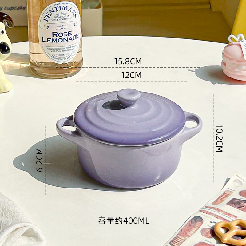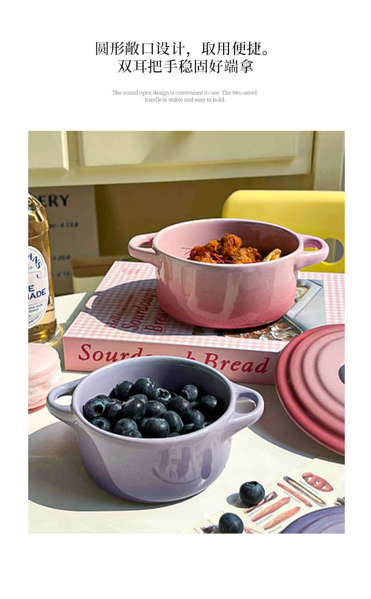 ins风渐变色陶瓷双耳带盖炖盅蒸蛋碗隔水炖家用炖燕窝微波炉烤碗