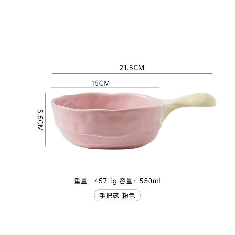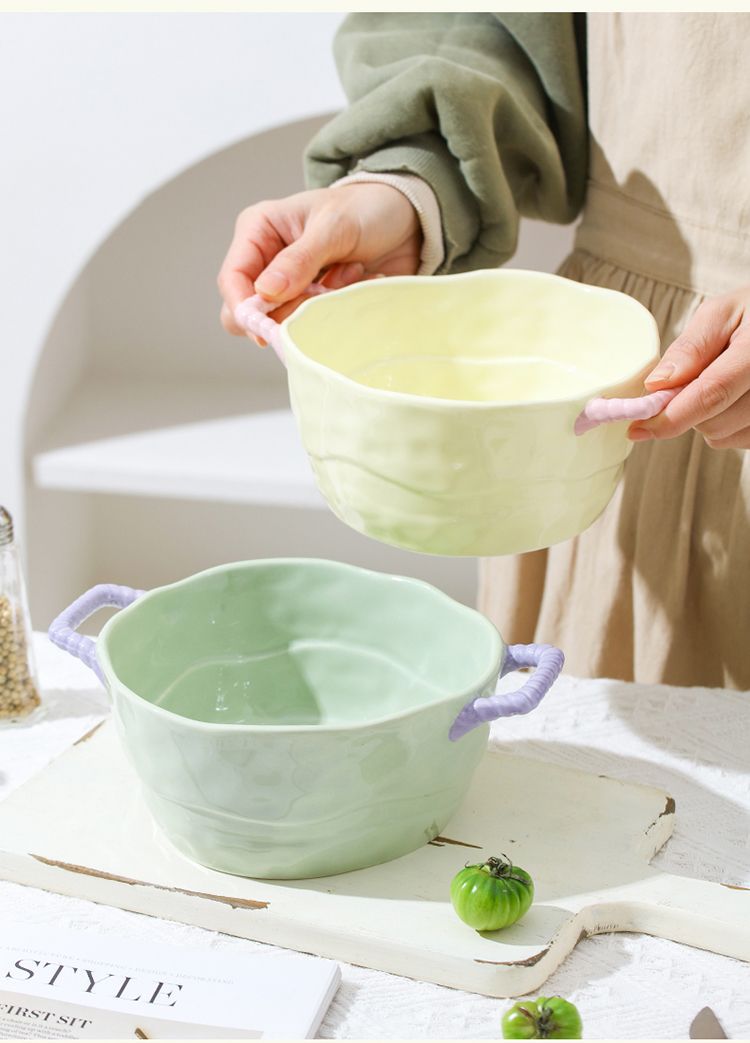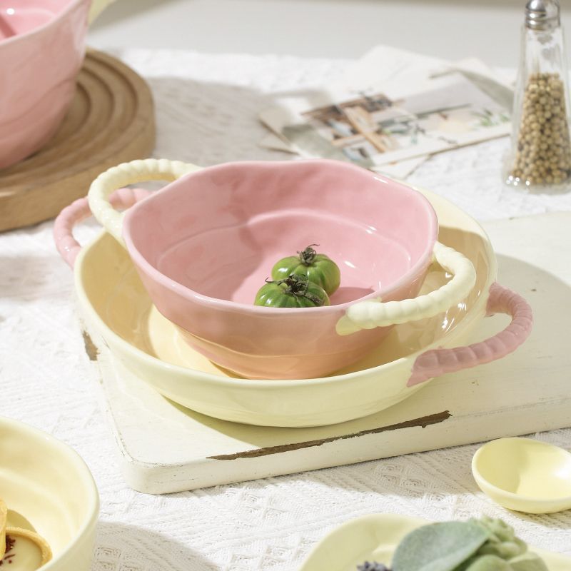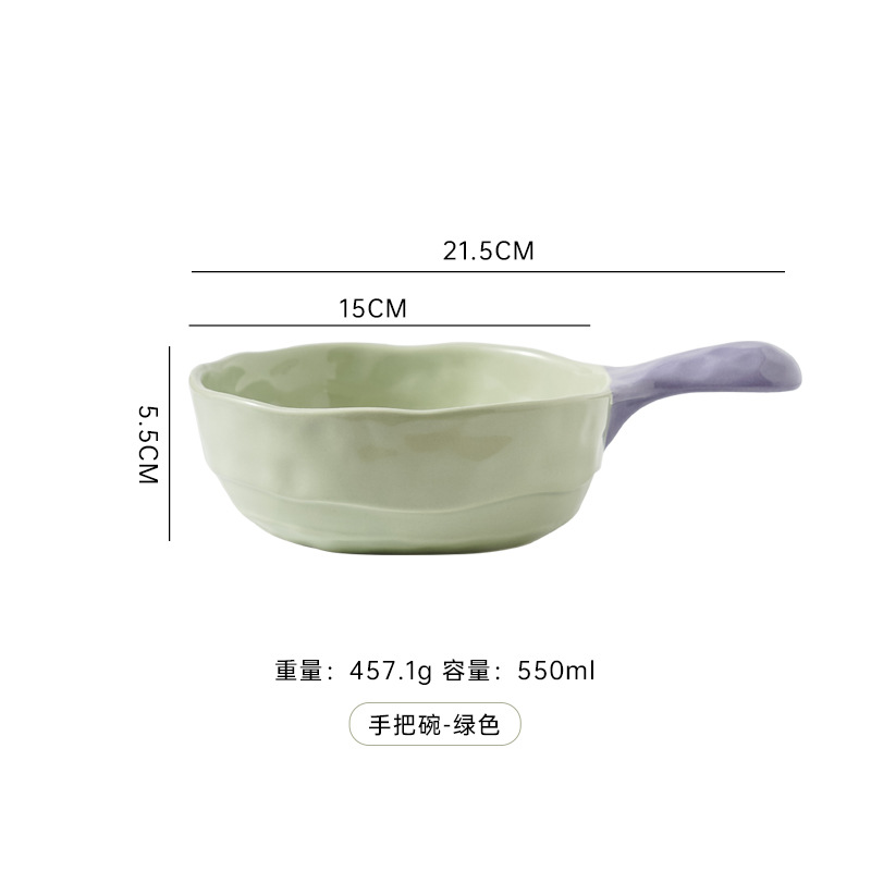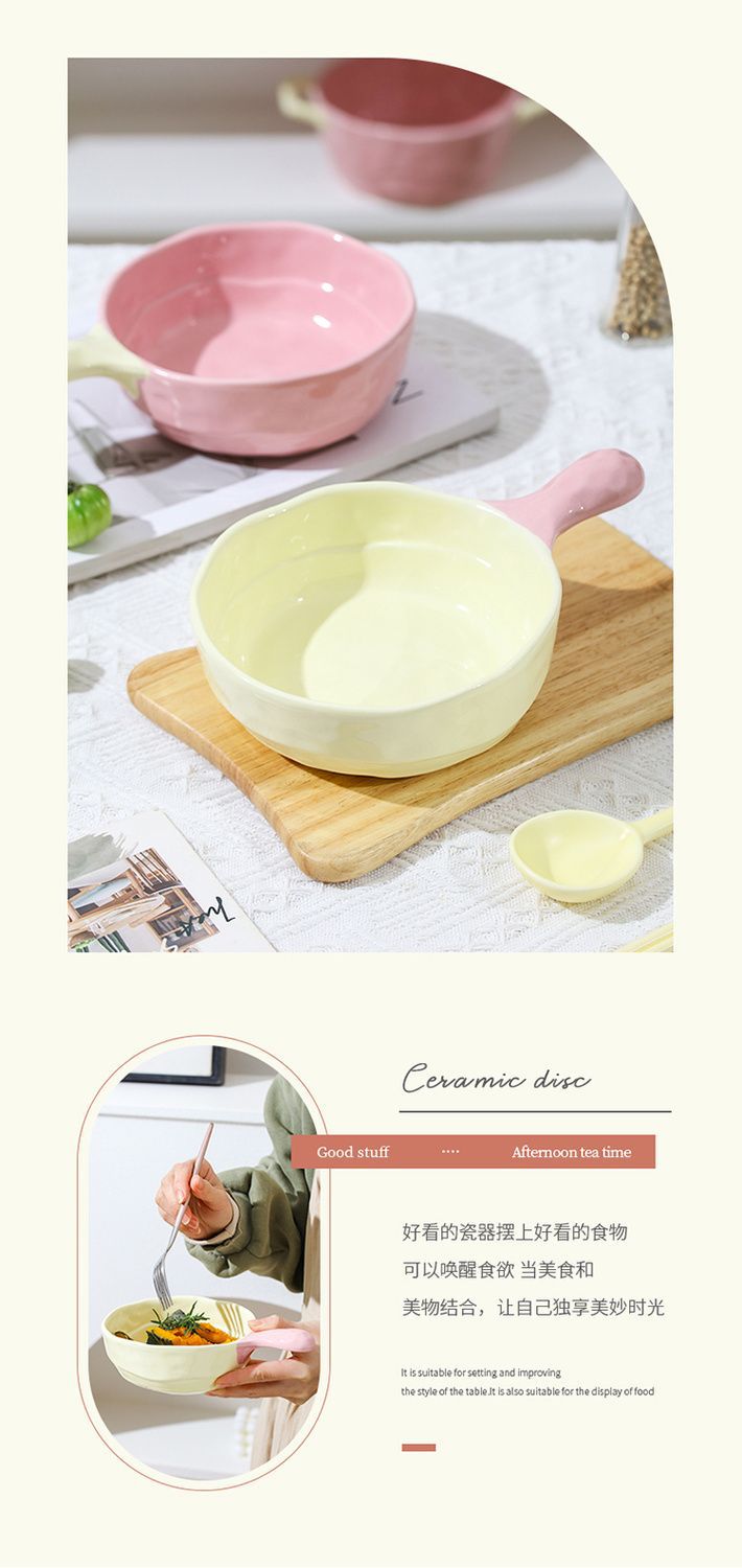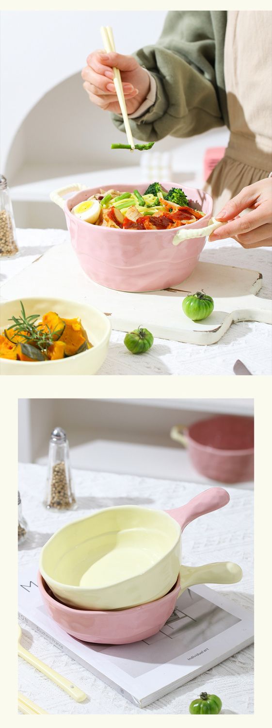 ins拼色陶瓷手柄碗烤碗带把手泡面碗氛围感高颜值沙拉水果酸奶碗