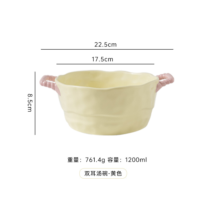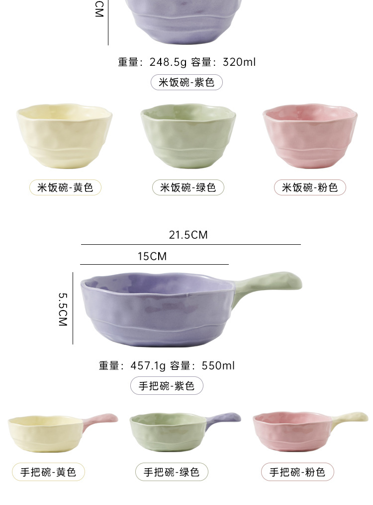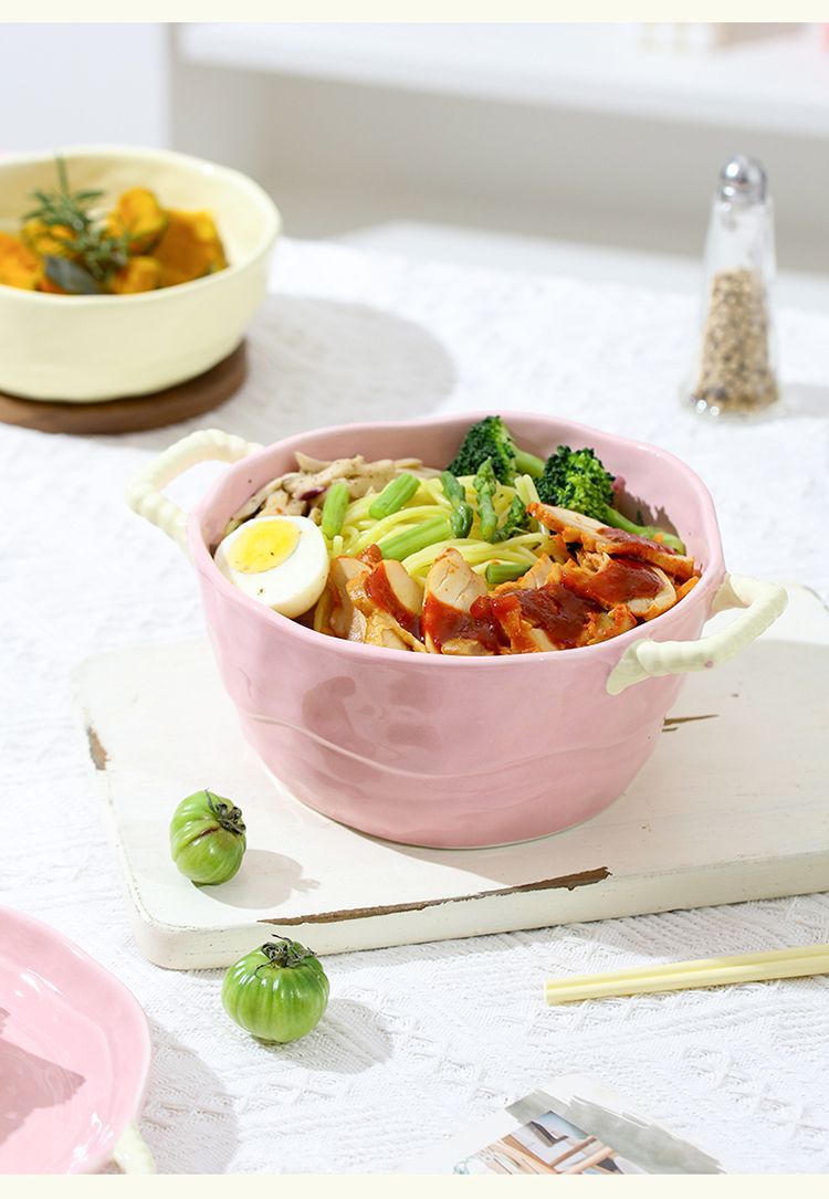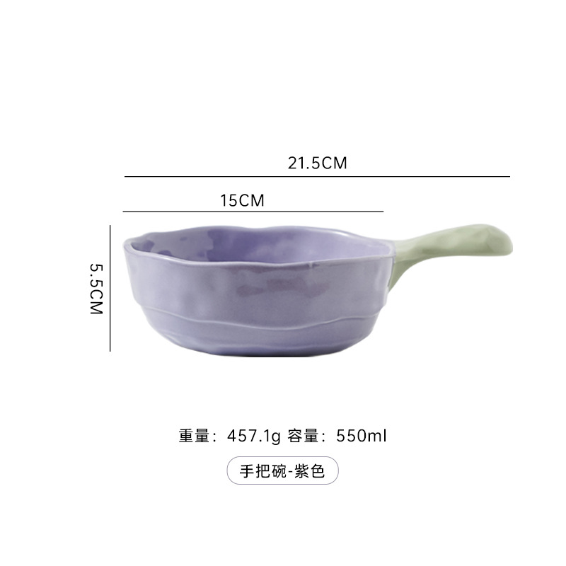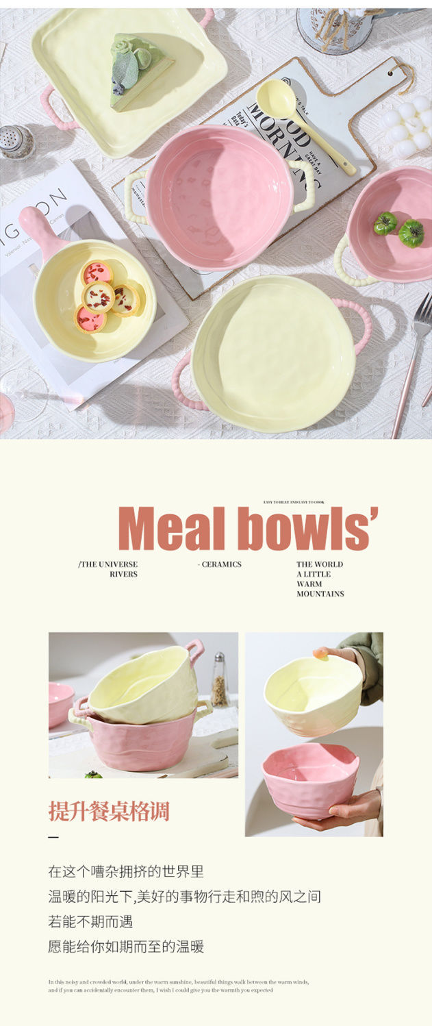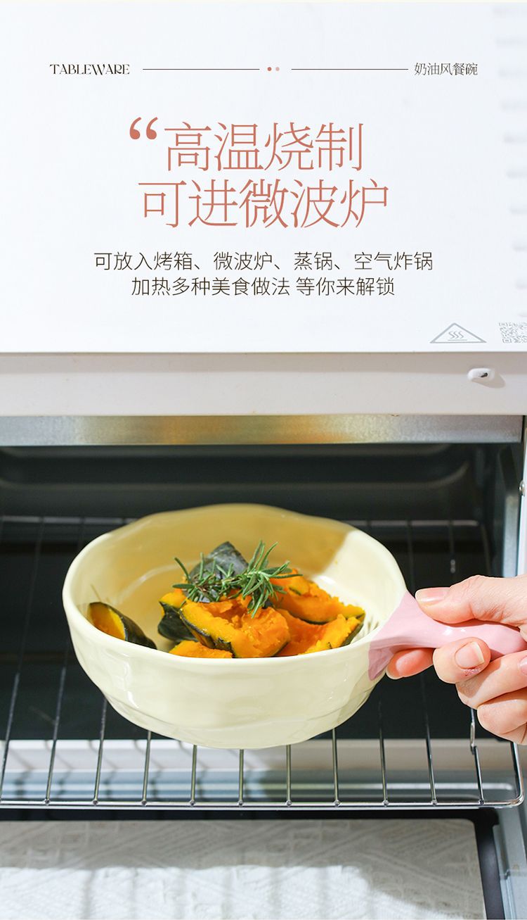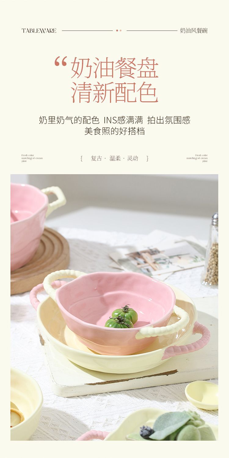 ins拼色陶瓷手柄碗烤碗带把手泡面碗氛围感高颜值沙拉水果酸奶碗