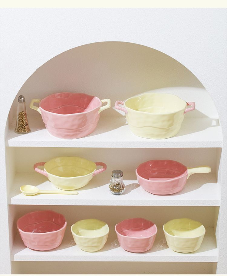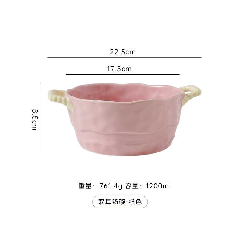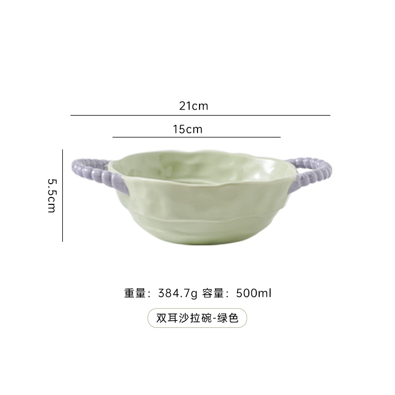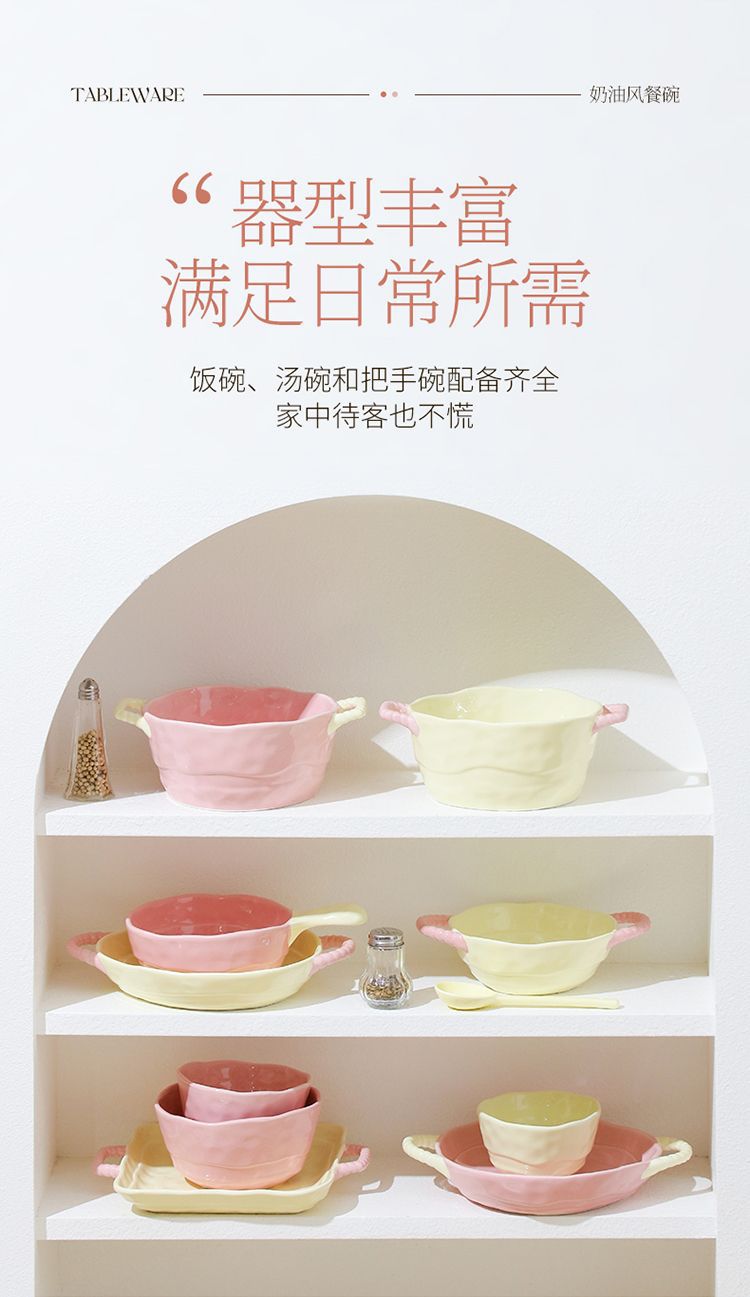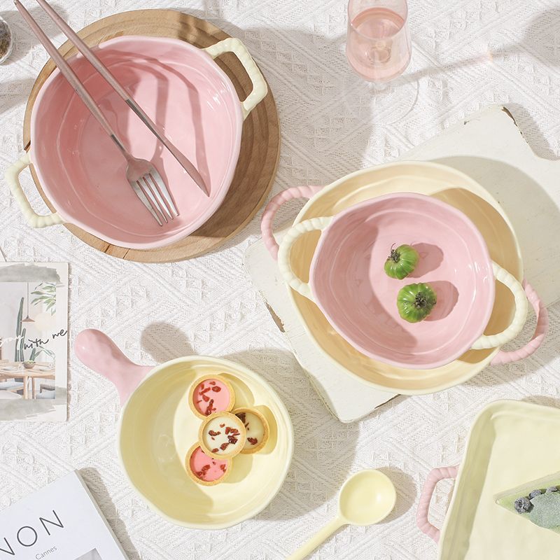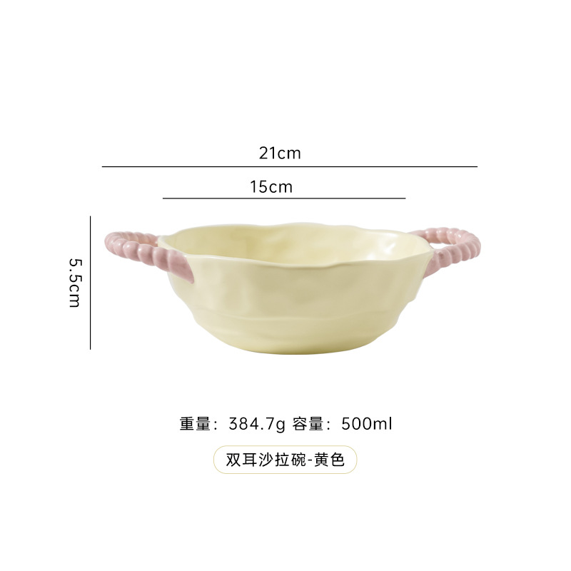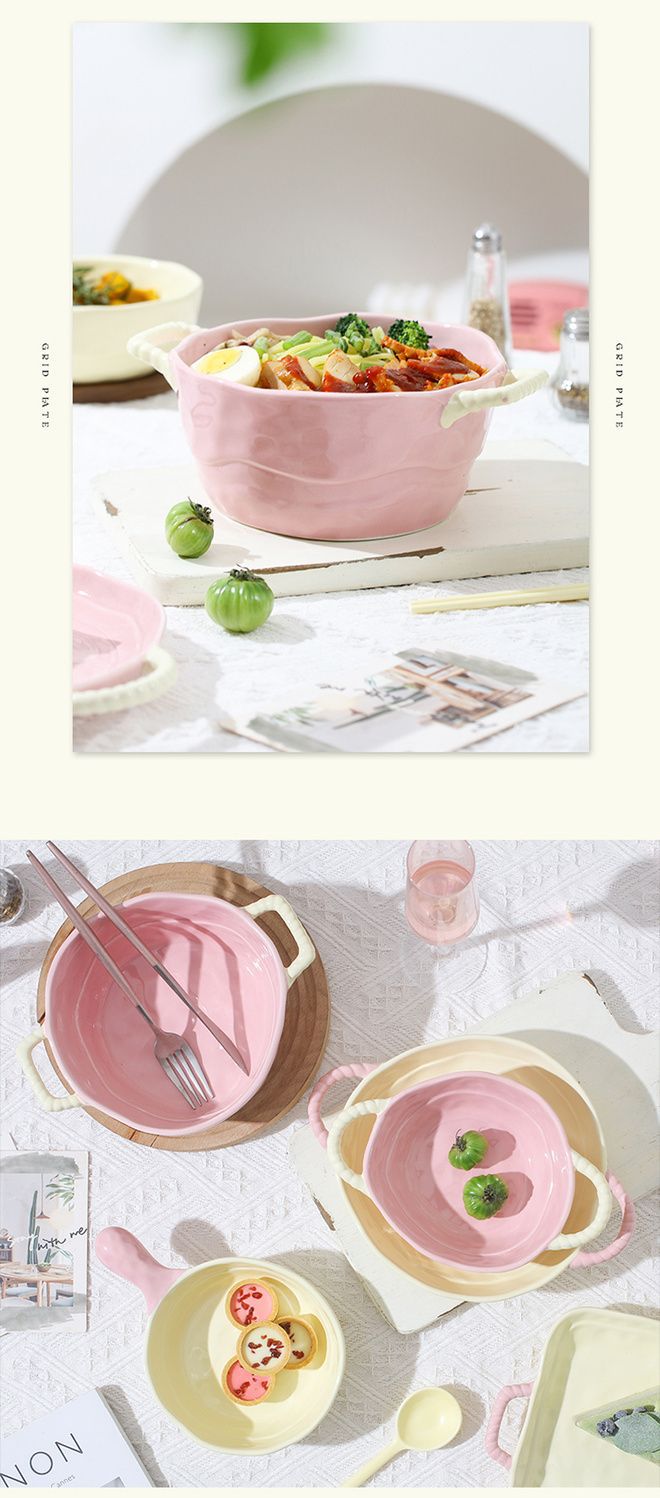 ins拼色陶瓷手柄碗烤碗带把手泡面碗氛围感高颜值沙拉水果酸奶碗