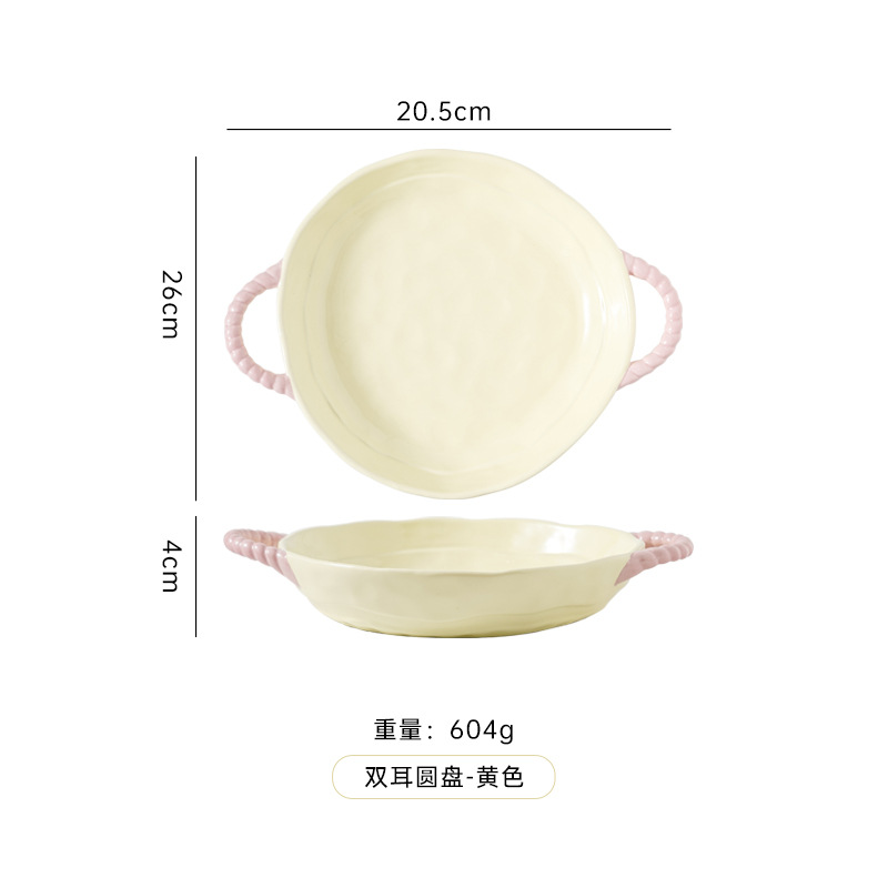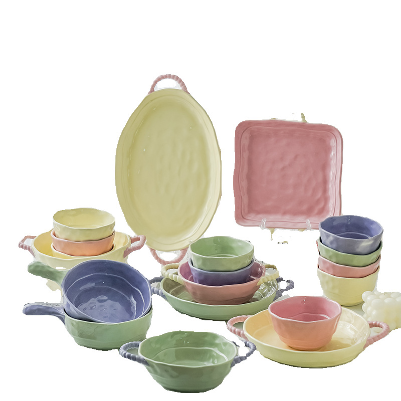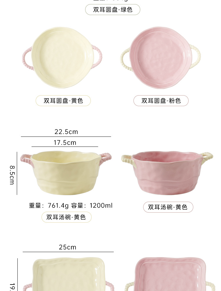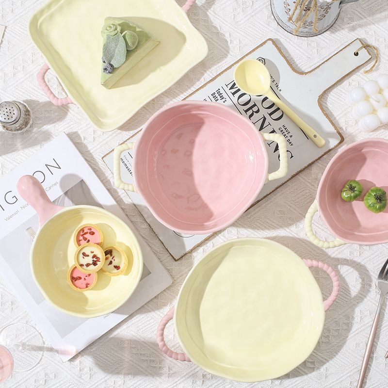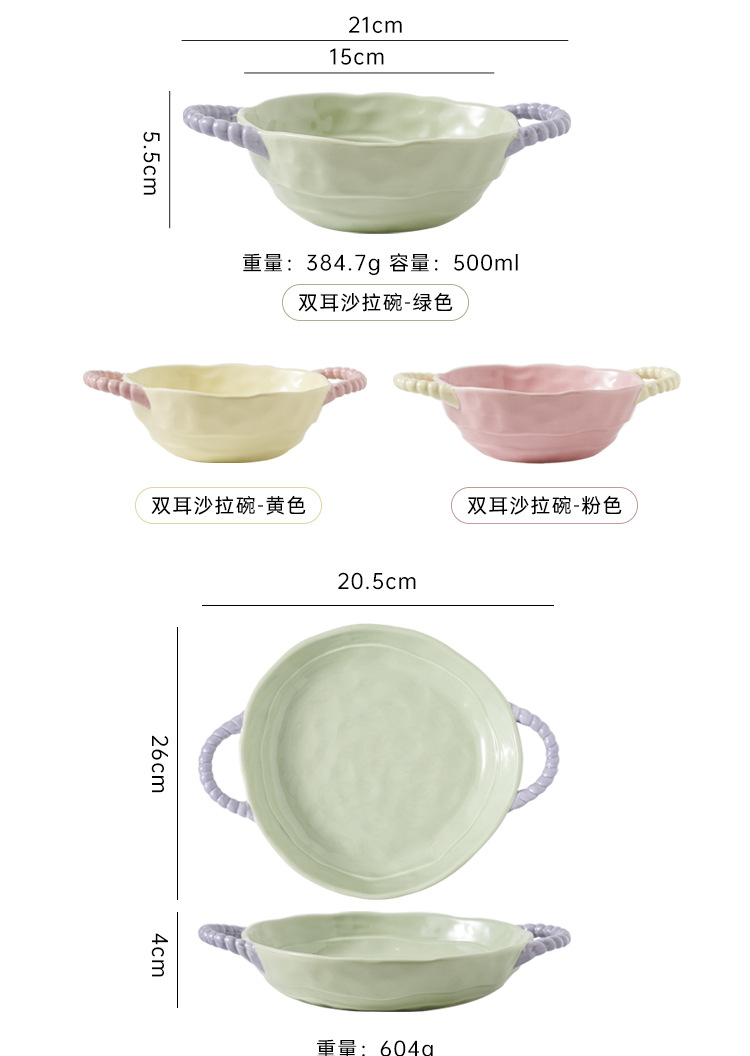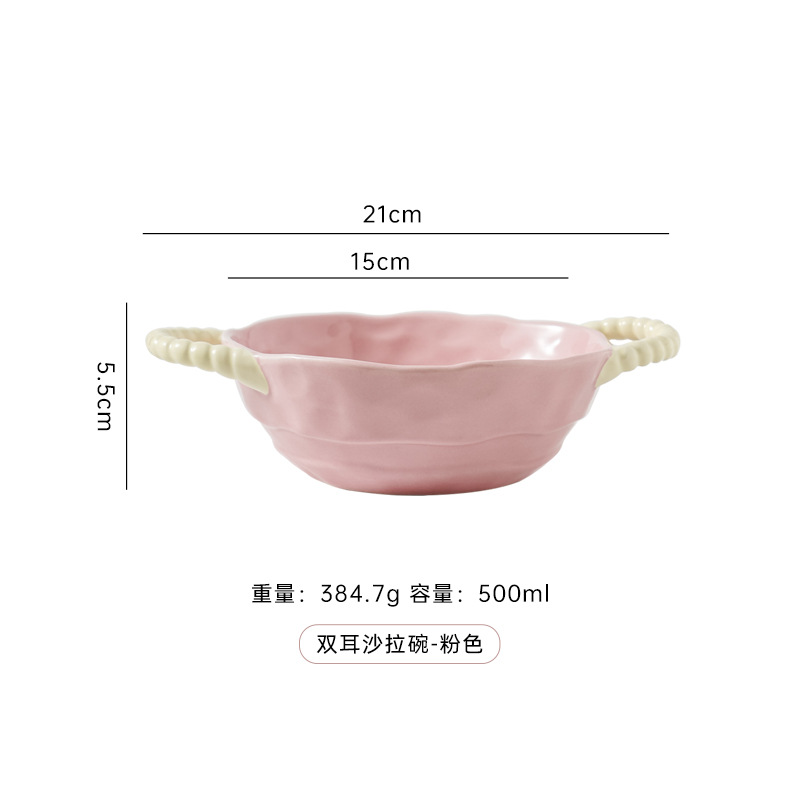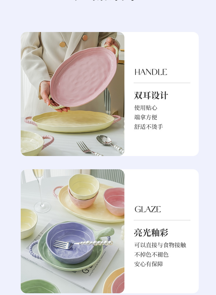 ins拼色陶瓷手柄碗烤碗带把手泡面碗氛围感高颜值沙拉水果酸奶碗