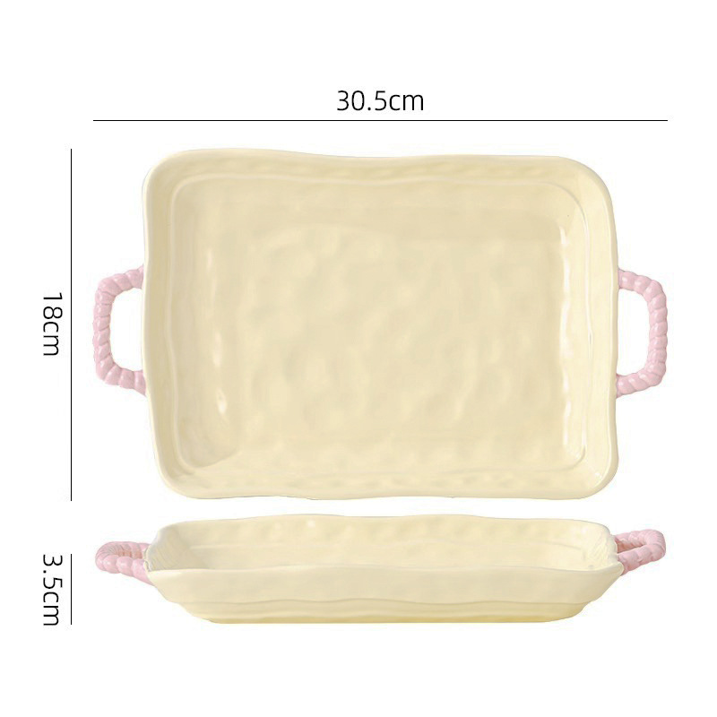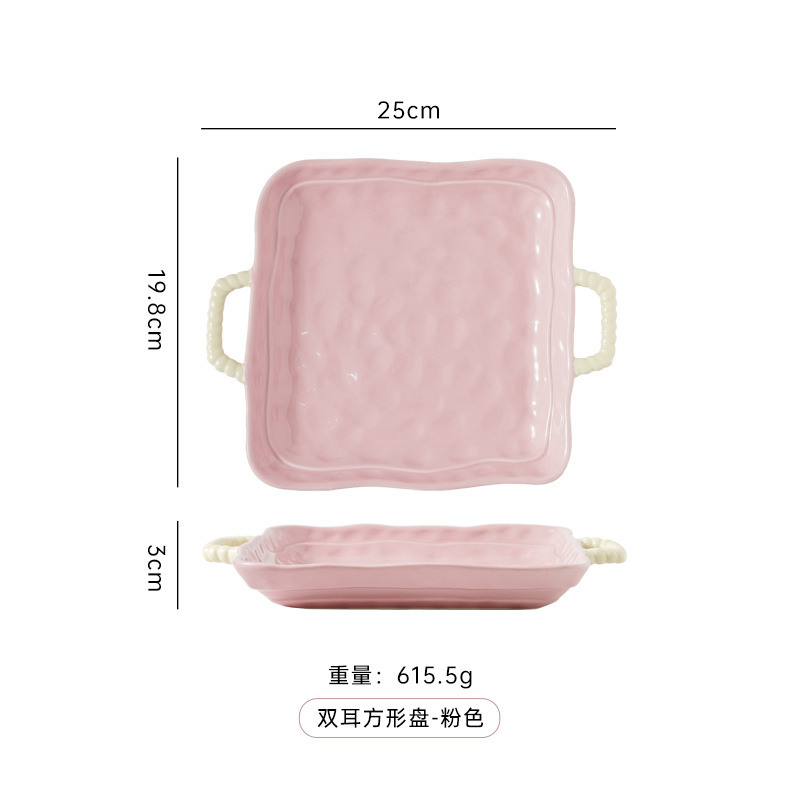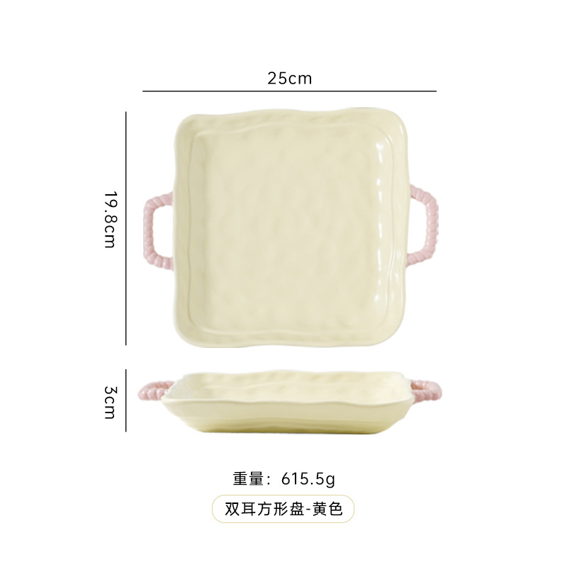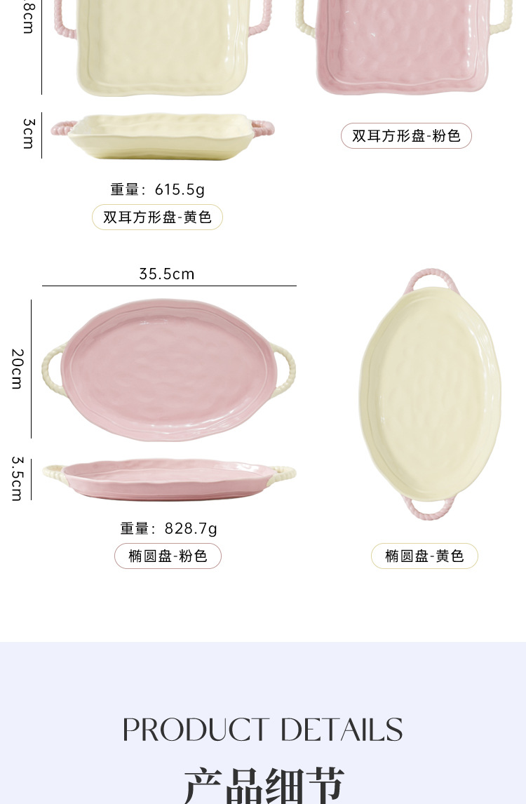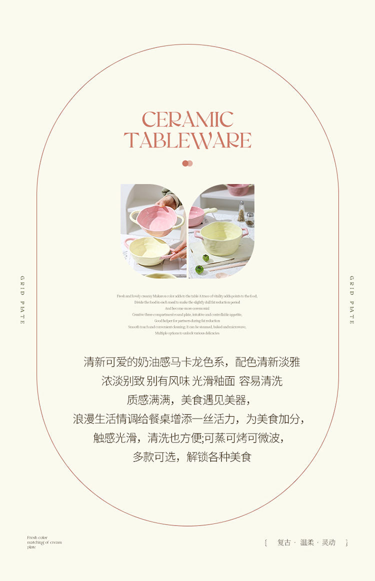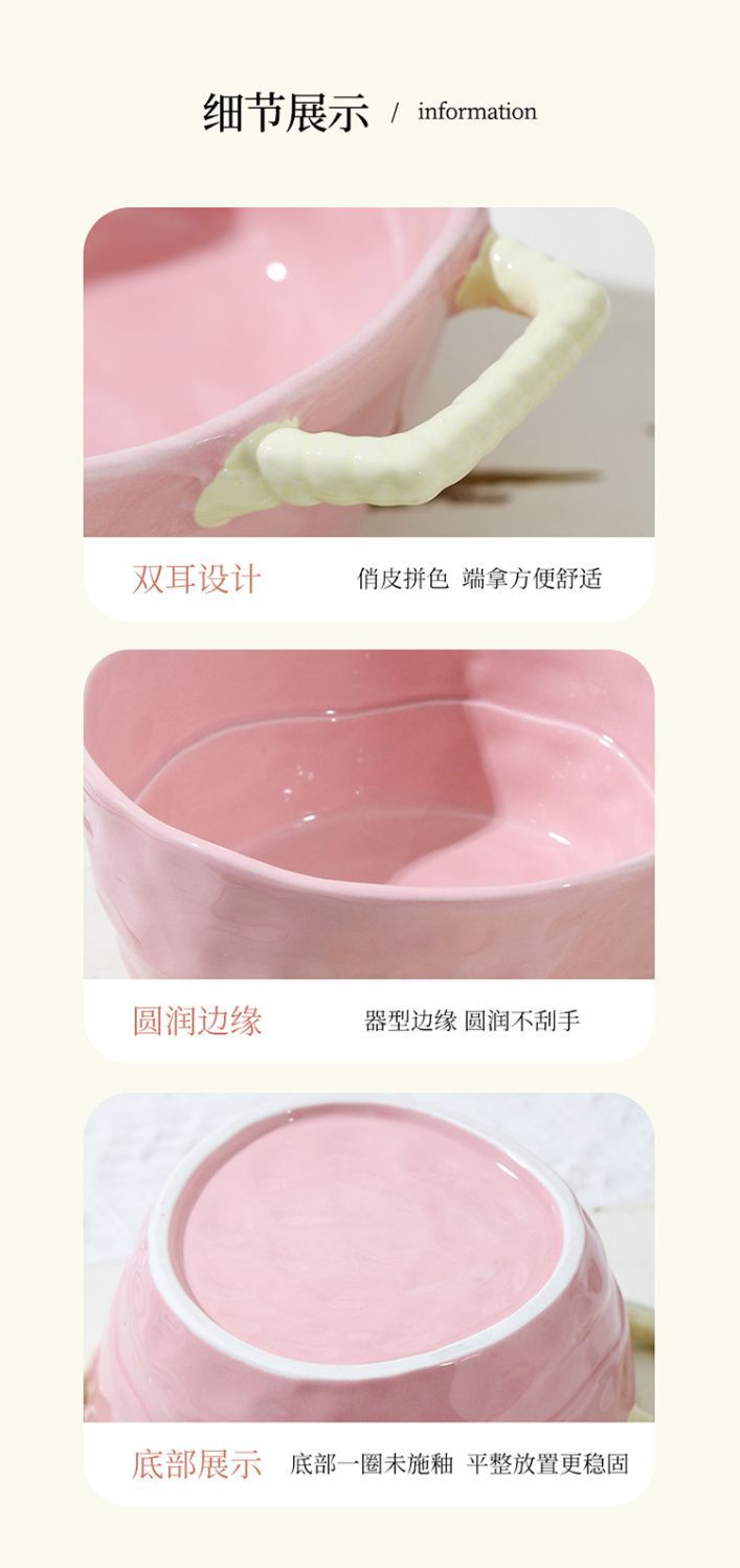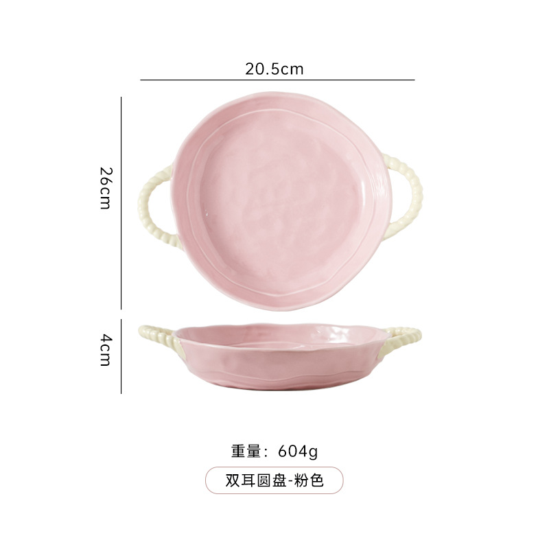 ins拼色陶瓷手柄碗烤碗带把手泡面碗氛围感高颜值沙拉水果酸奶碗
