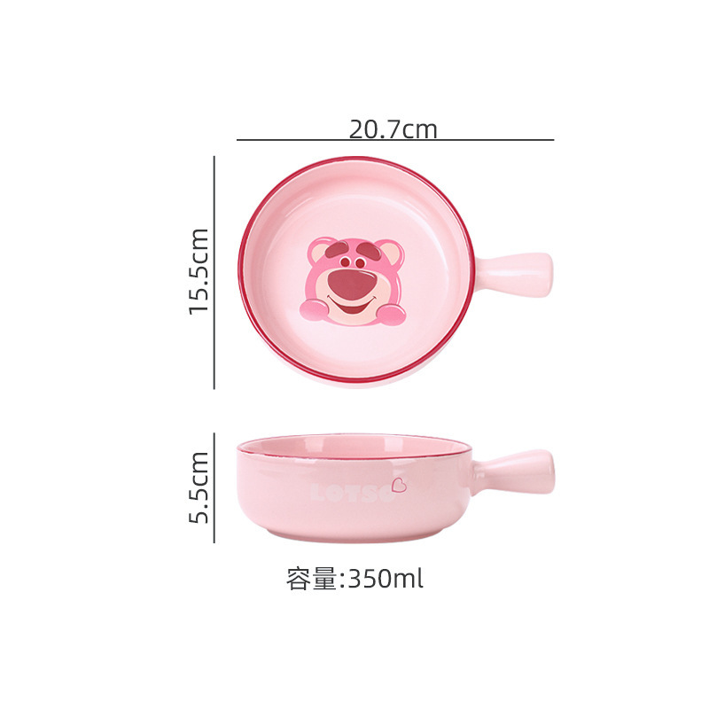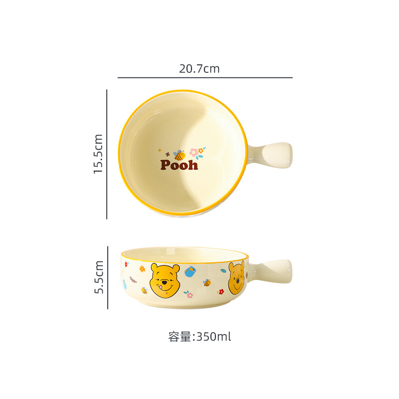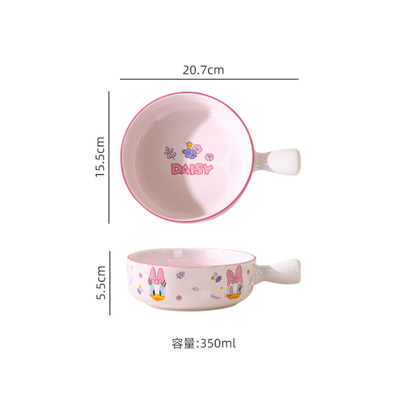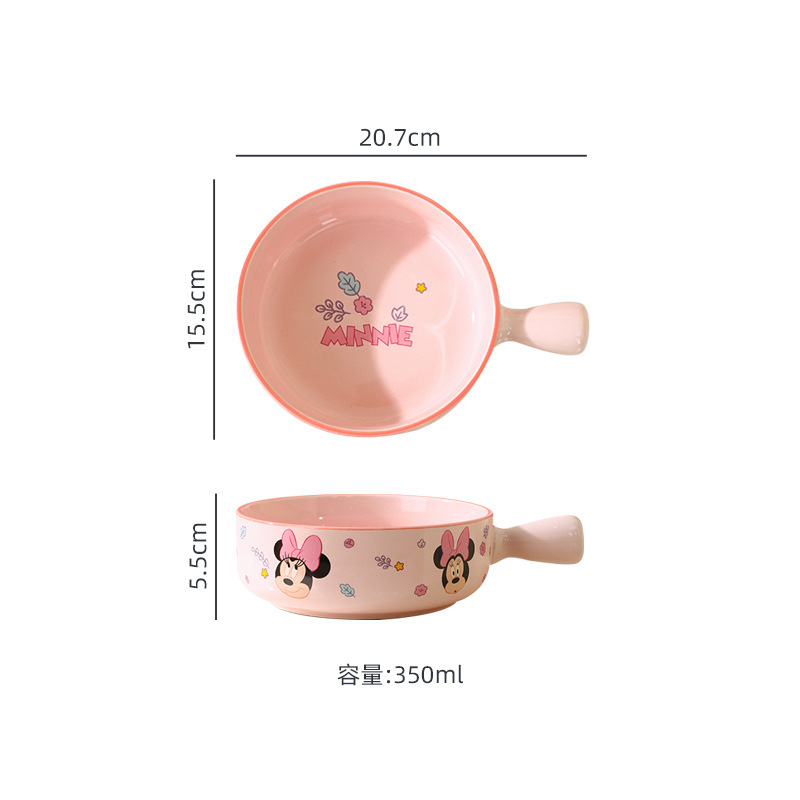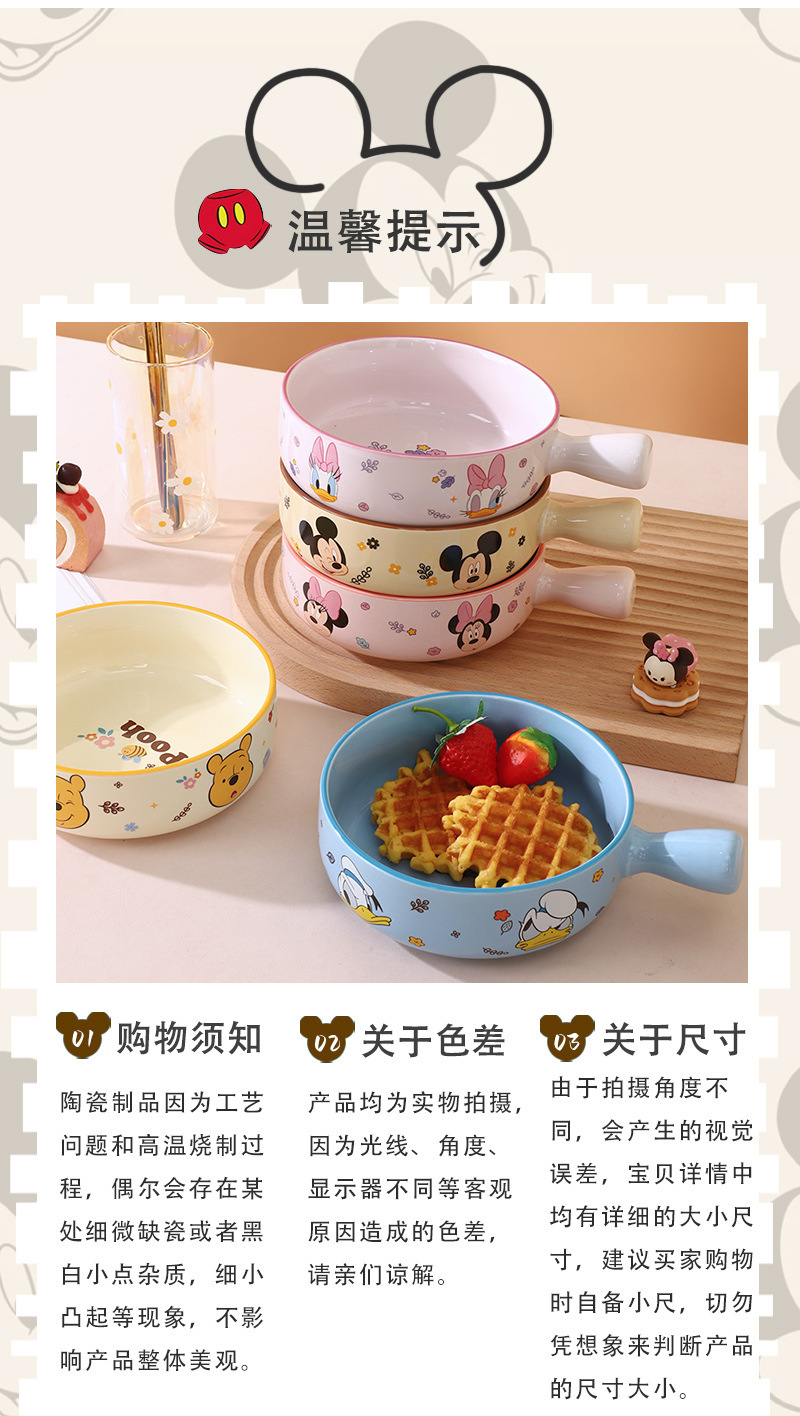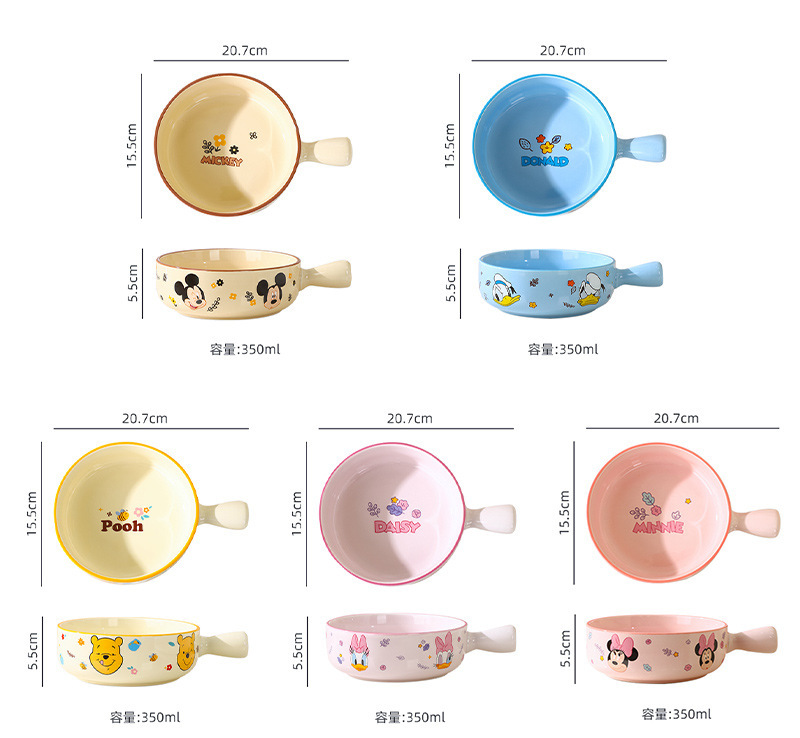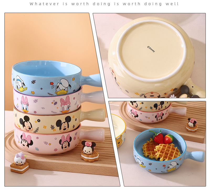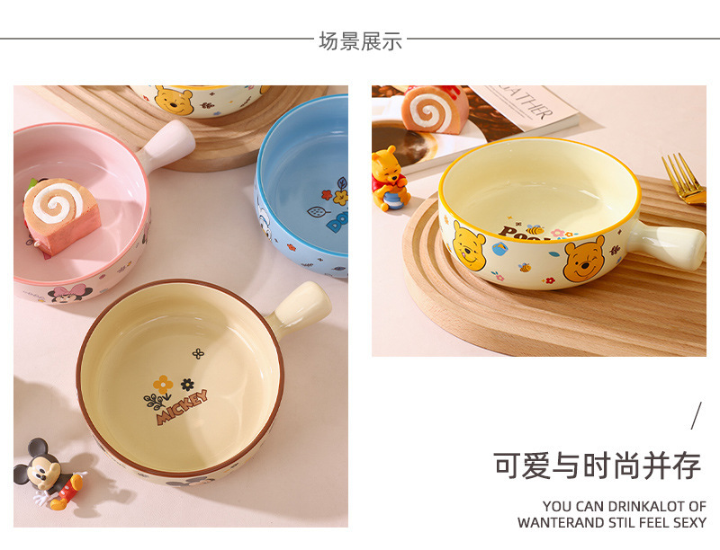 米奇卡通陶瓷碗带手柄不烫手加厚单柄烤碗圆形儿童早餐泡面碗汤碗