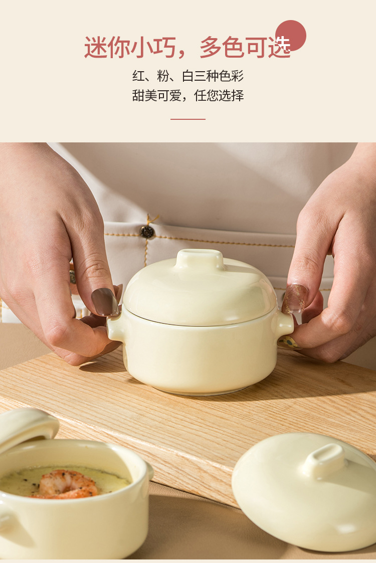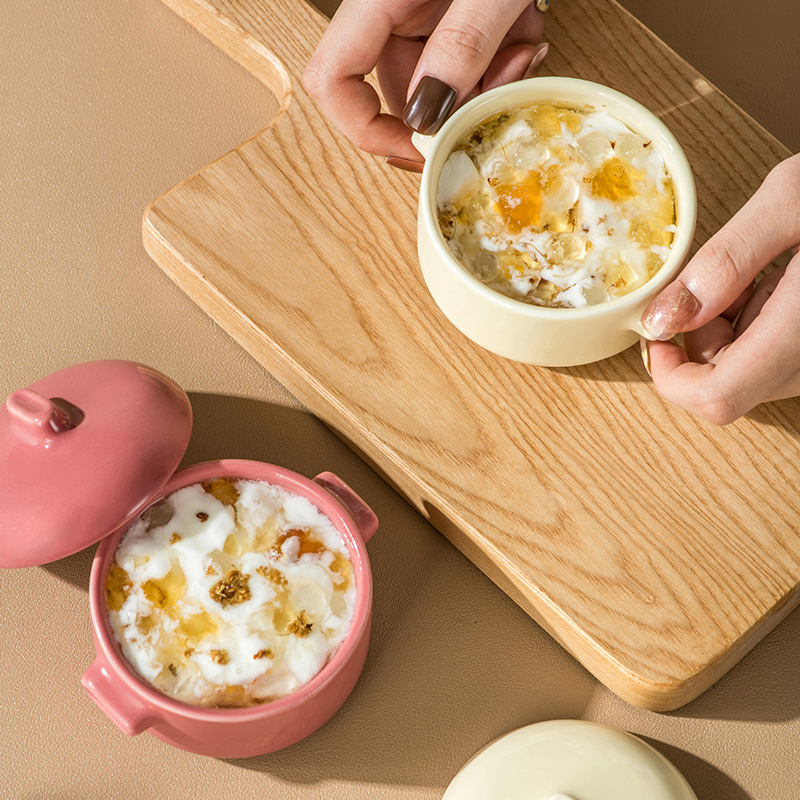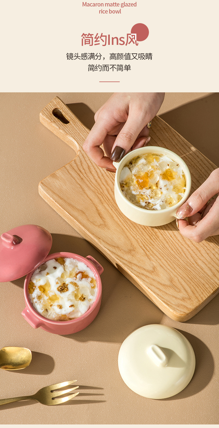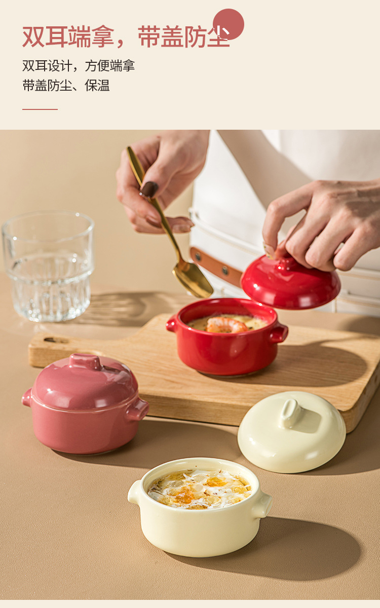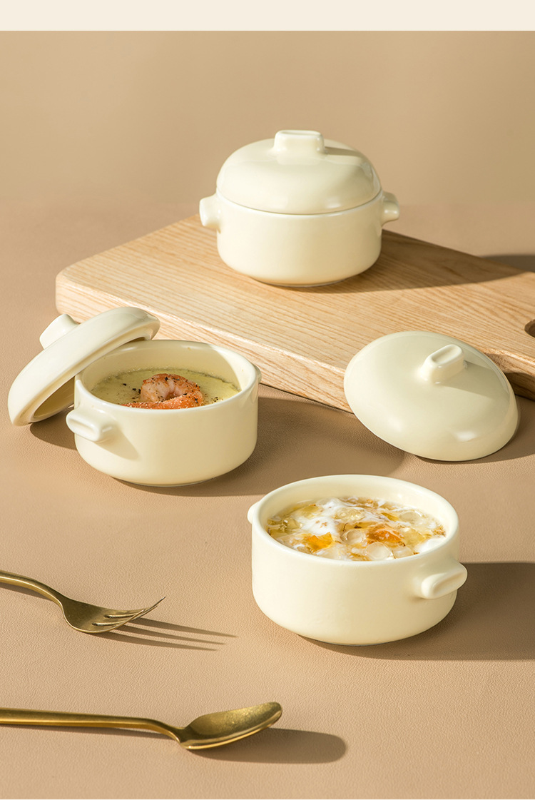 奶油风陶瓷带盖烘焙烤碗餐具婴儿辅食蒸蛋燕窝锅碗家用双耳碗炖盅