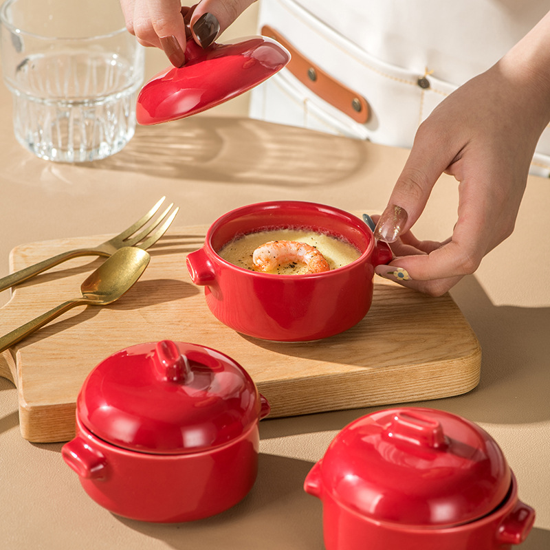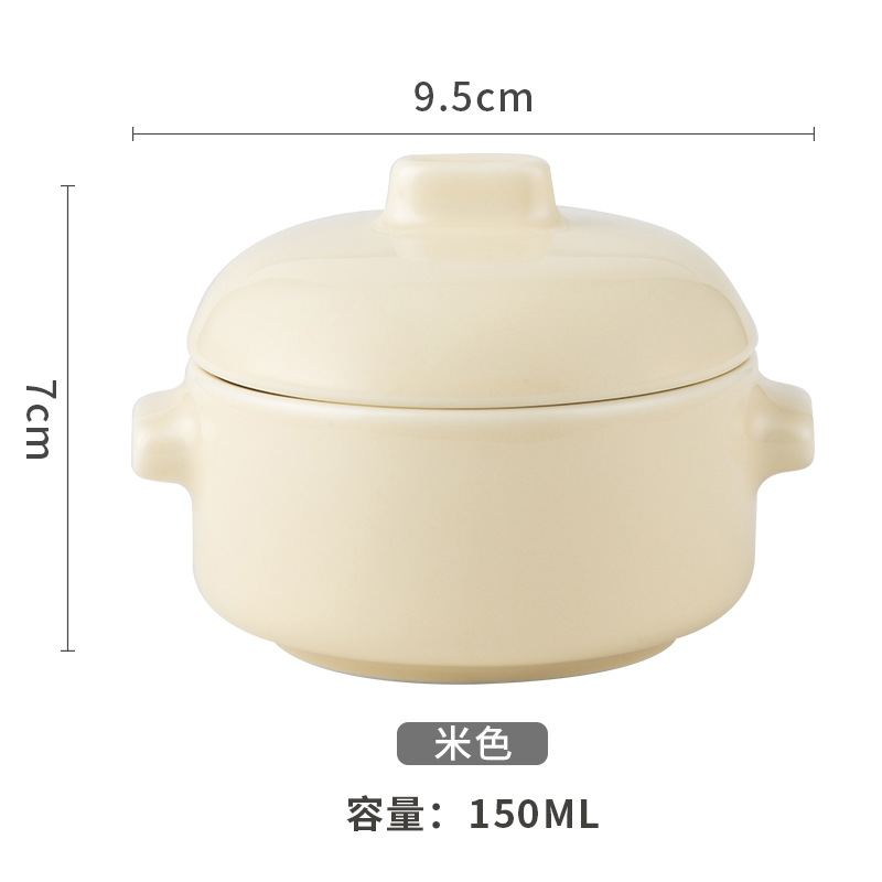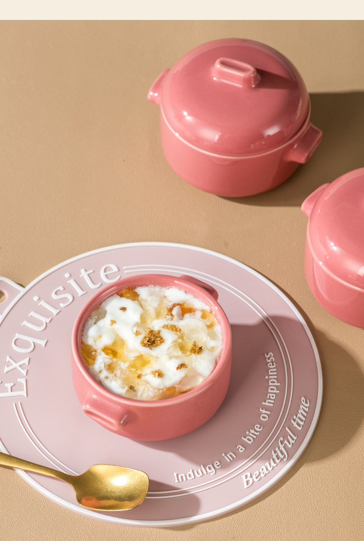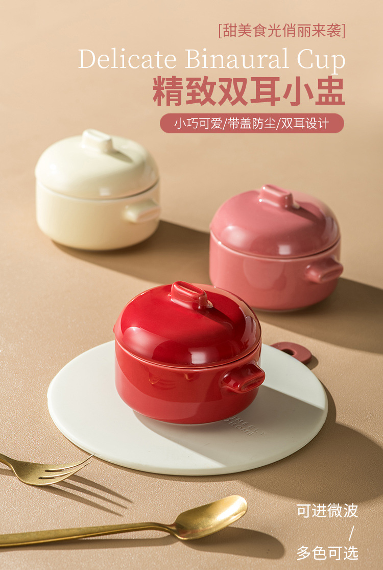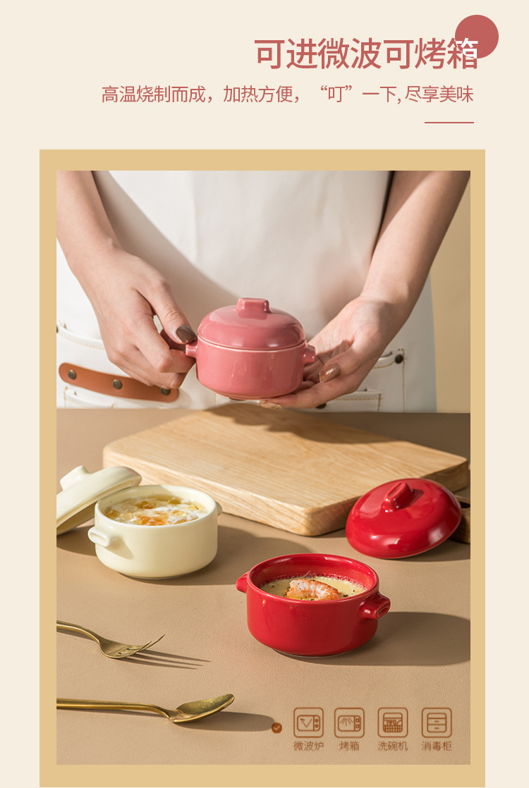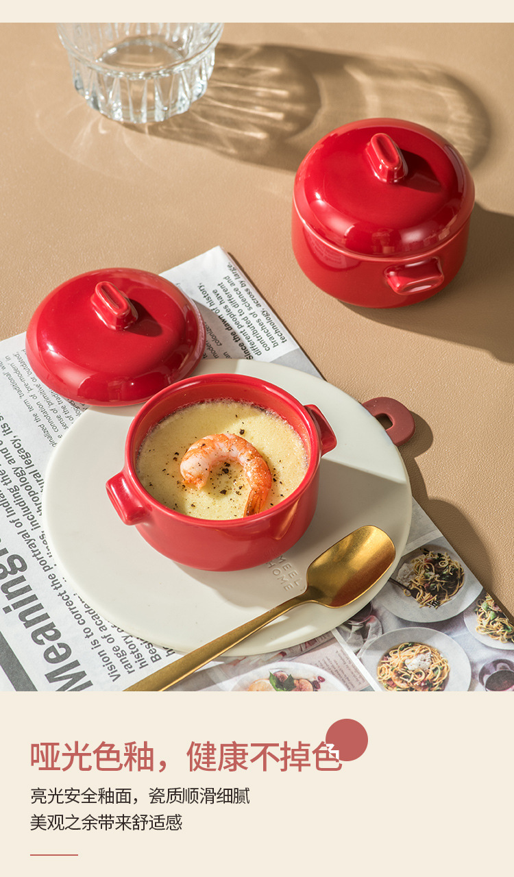 奶油风陶瓷带盖烘焙烤碗餐具婴儿辅食蒸蛋燕窝锅碗家用双耳碗炖盅