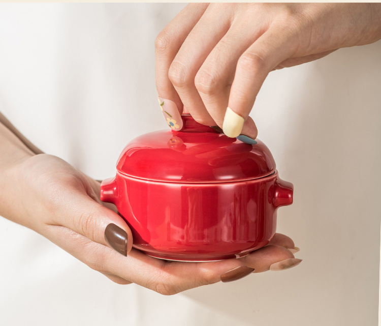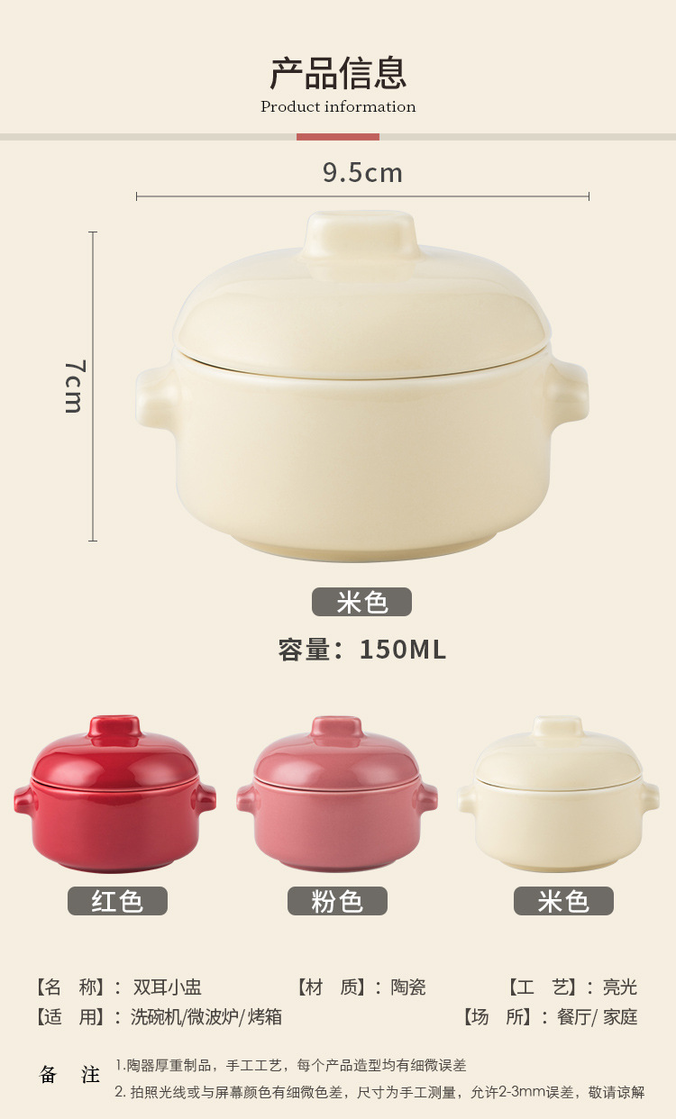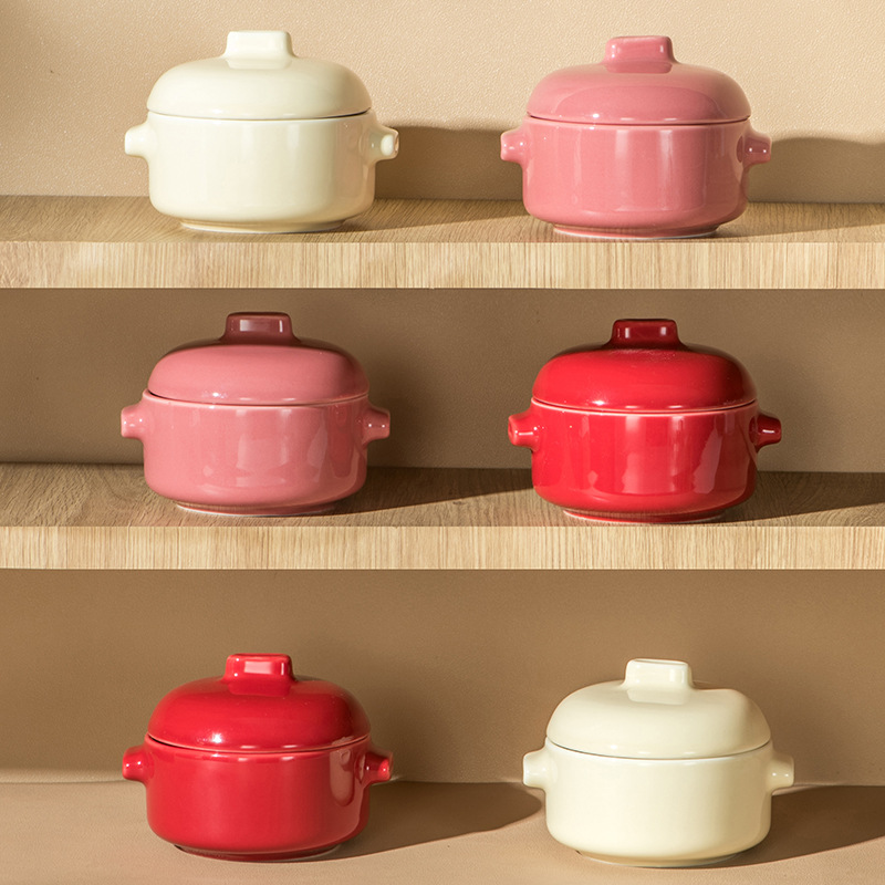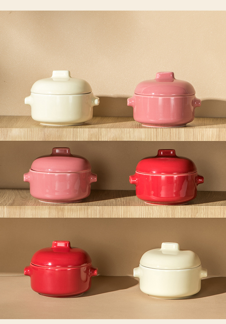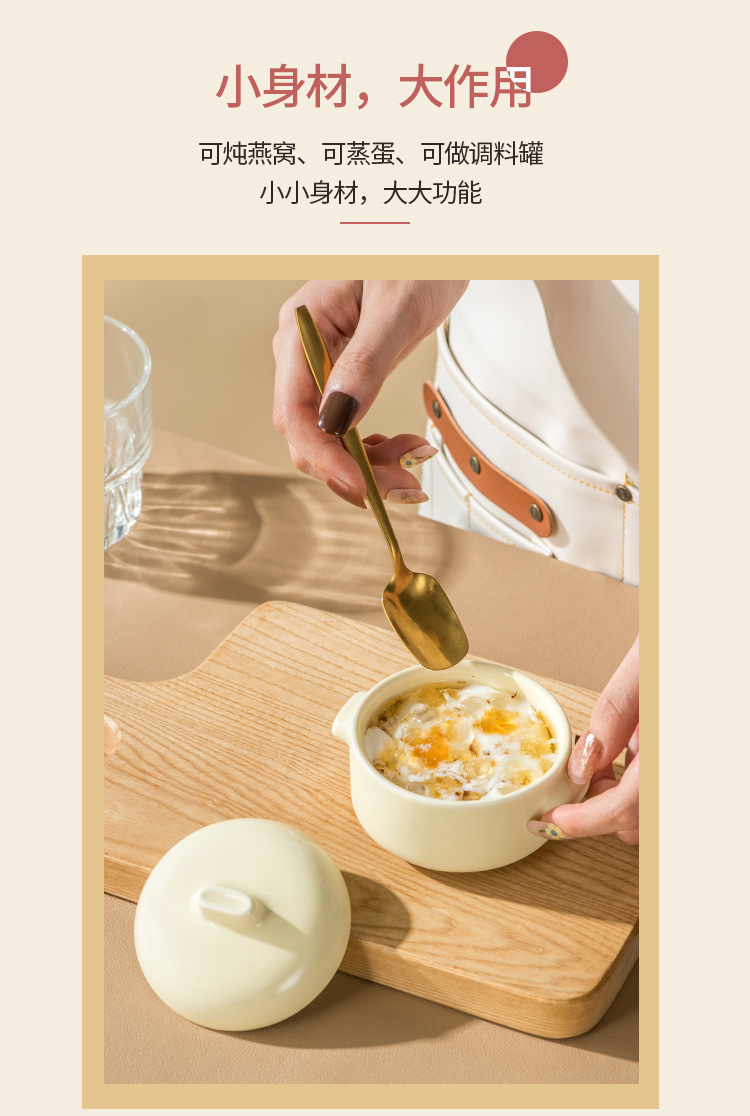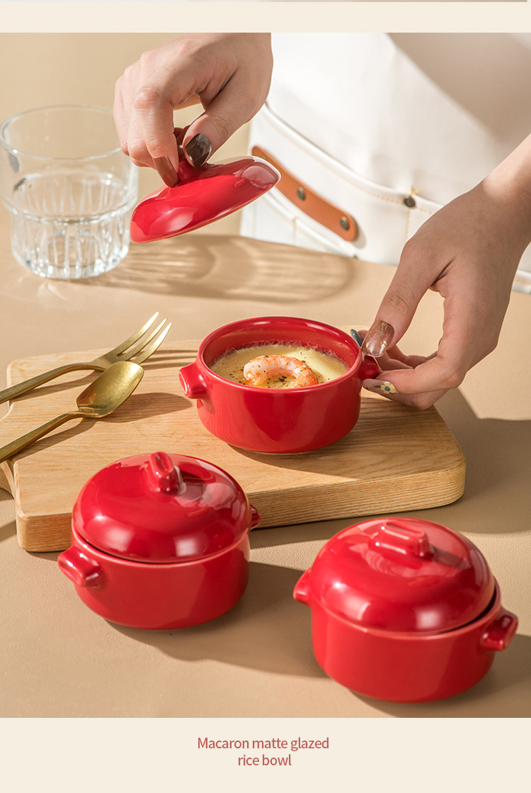 奶油风陶瓷带盖烘焙烤碗餐具婴儿辅食蒸蛋燕窝锅碗家用双耳碗炖盅