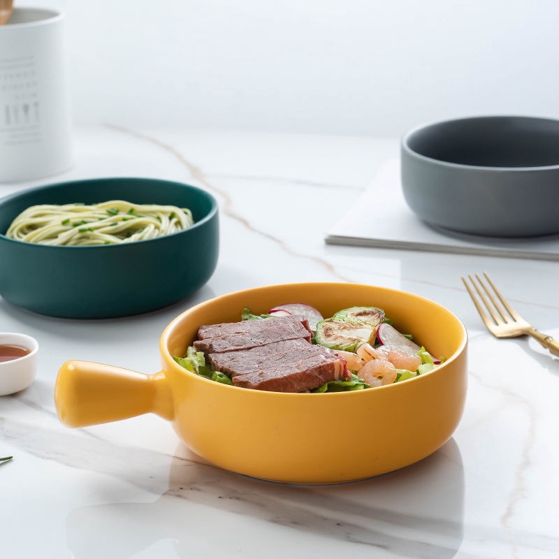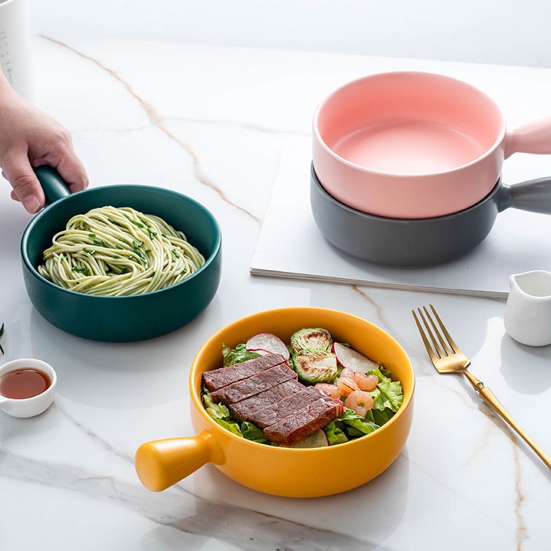 手柄碗焗饭碗北欧风带柄烘焙烤意大利面盘子约家用餐具汤面沙包邮