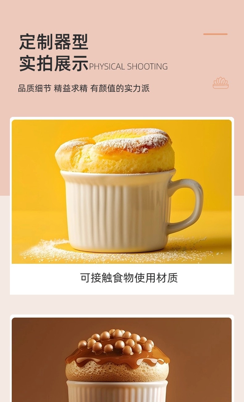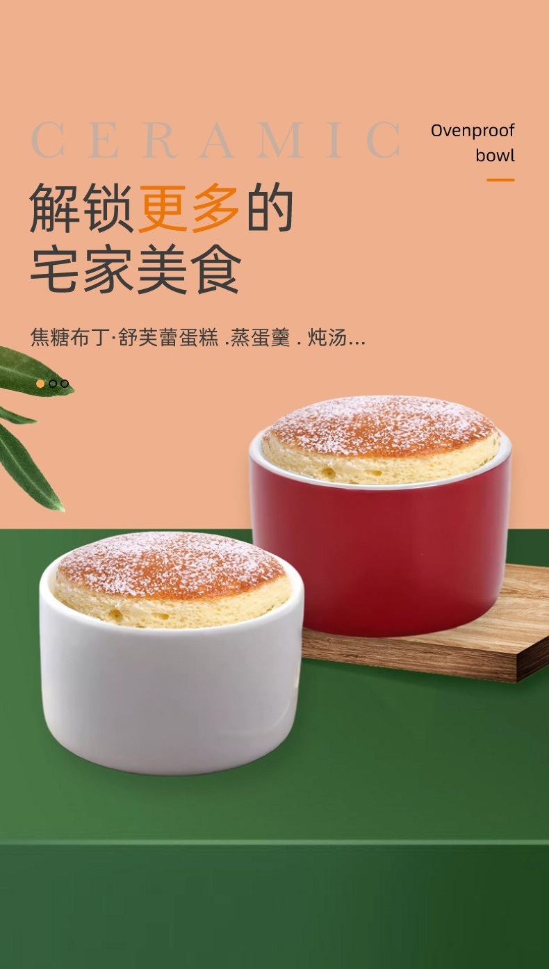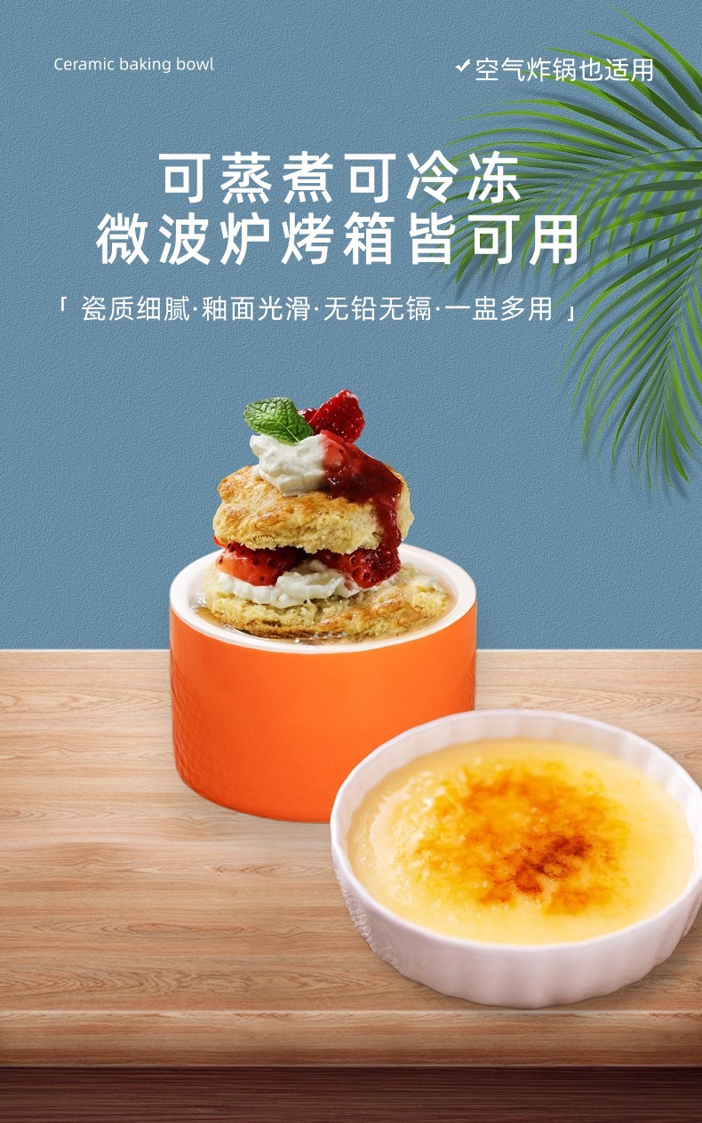 圆形盅陶瓷舒芙蕾烤碗可印LOGO空气炸锅焦糖布丁蒸蛋羹辅食小汤盅