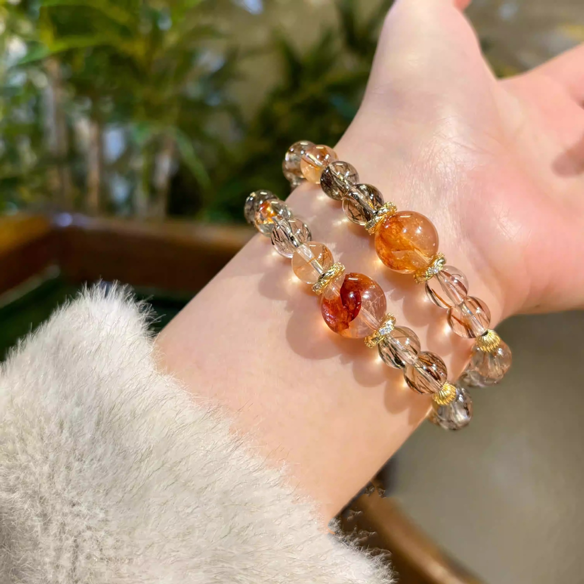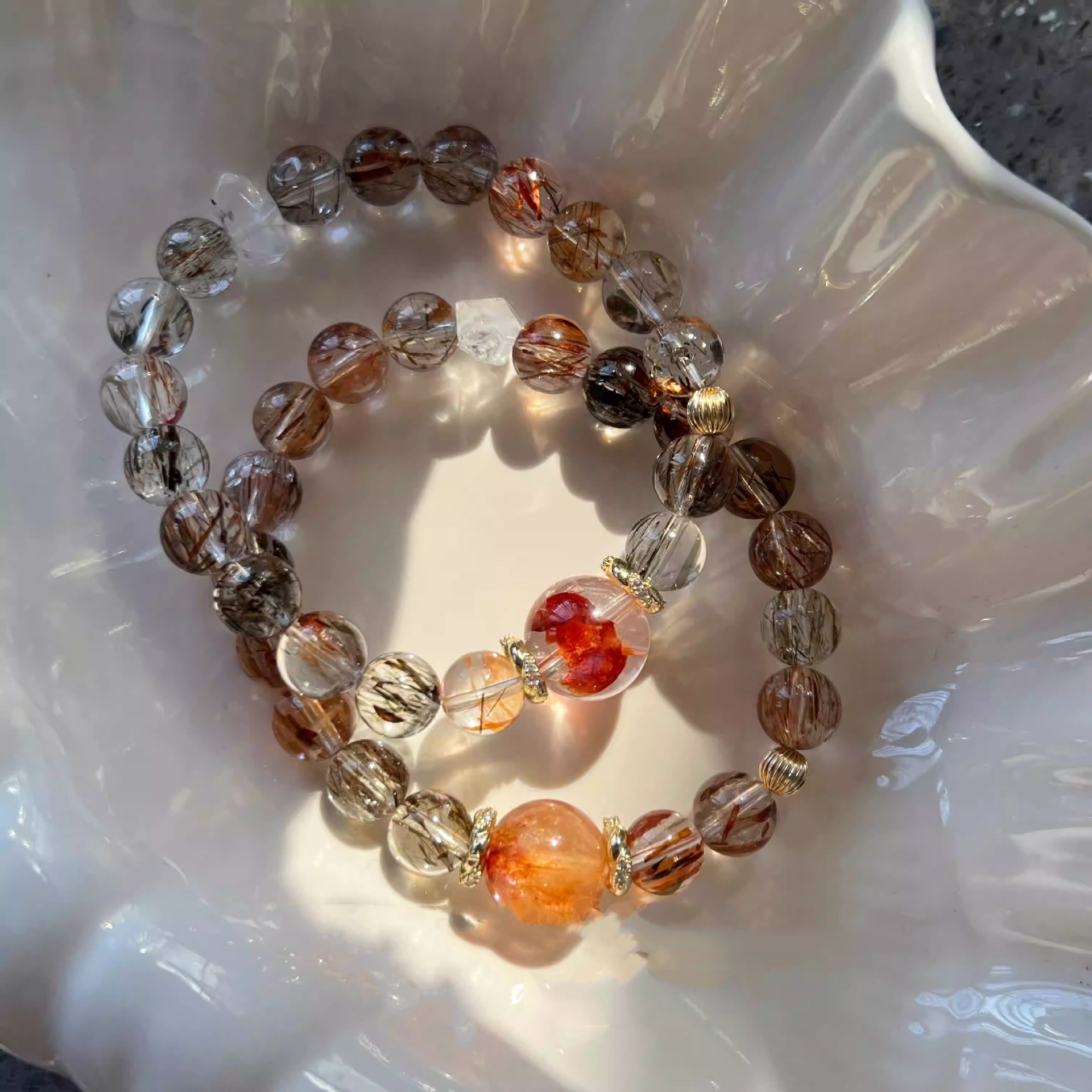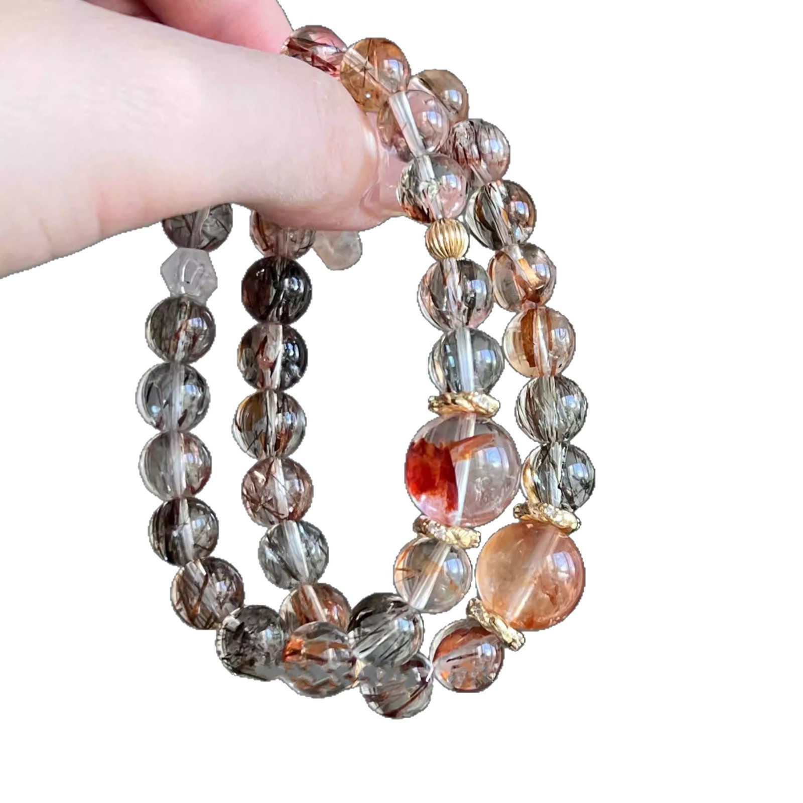 天然黑金超七红胶花手串包金水晶手链女小众设计手饰礼