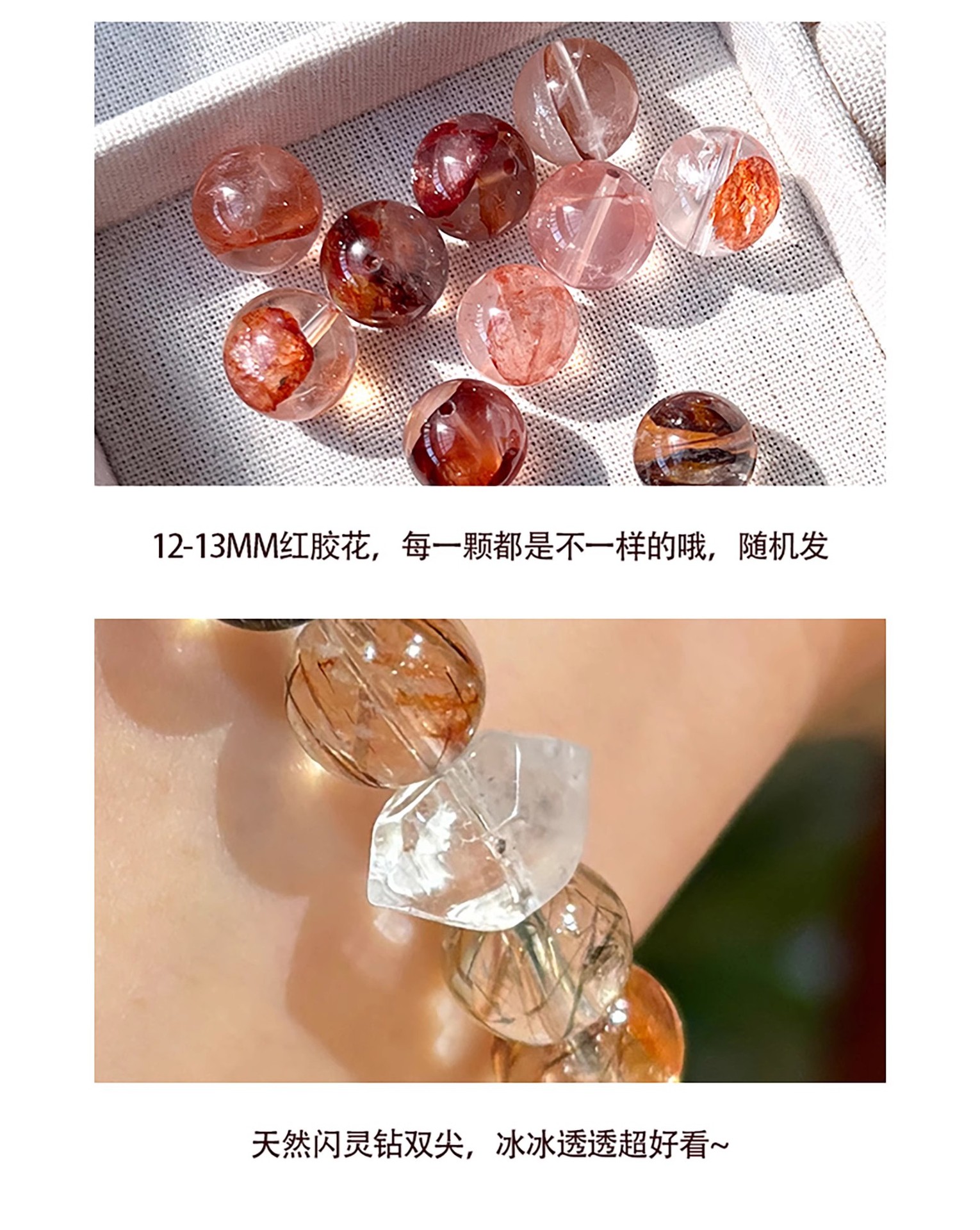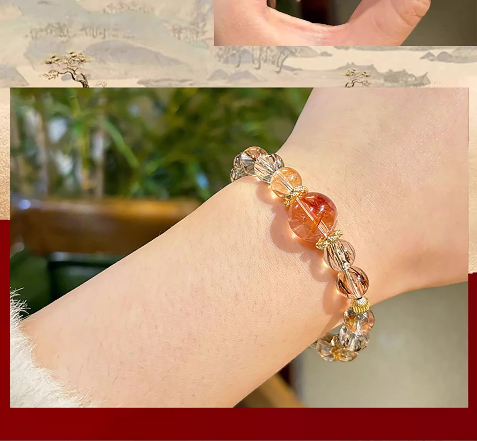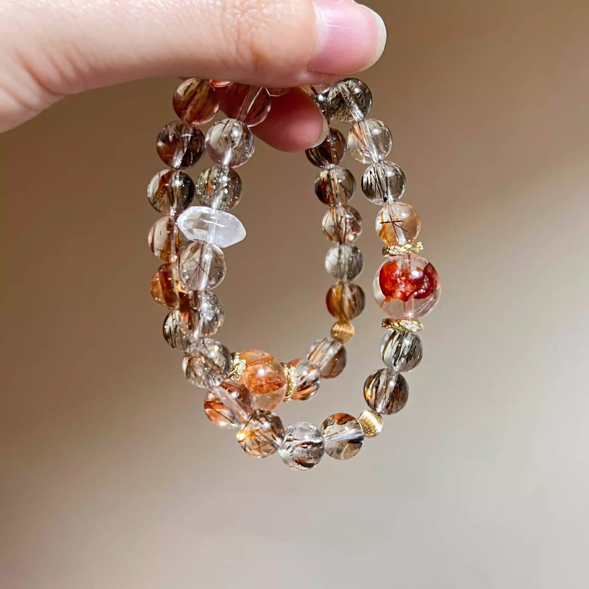 天然黑金超七红胶花手串包金水晶手链女小众设计手饰礼
