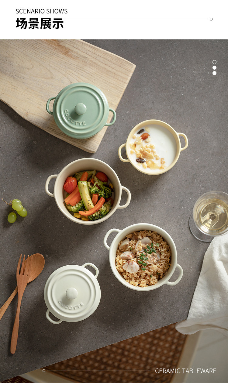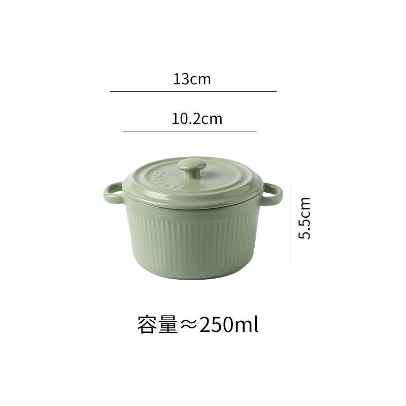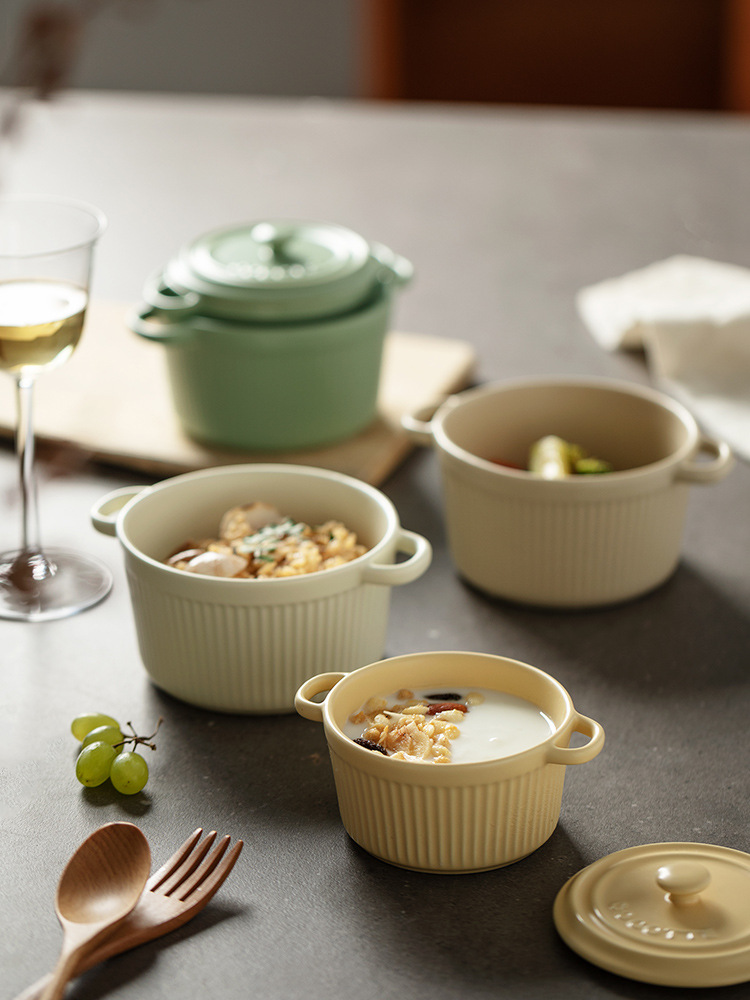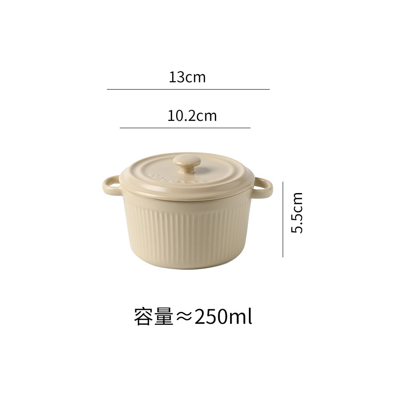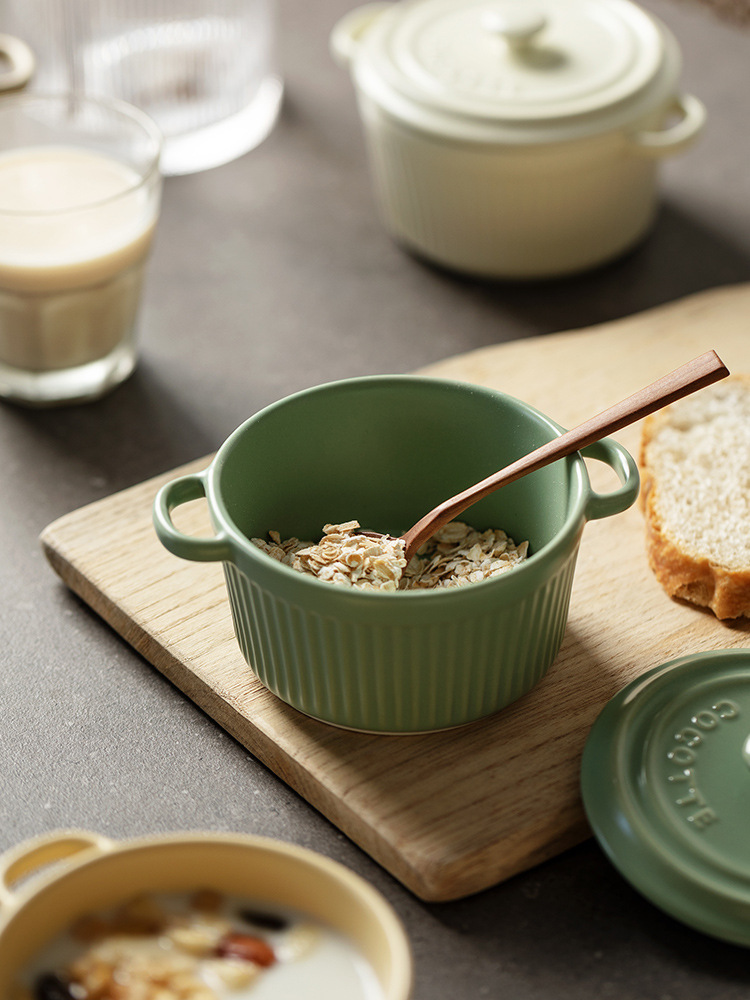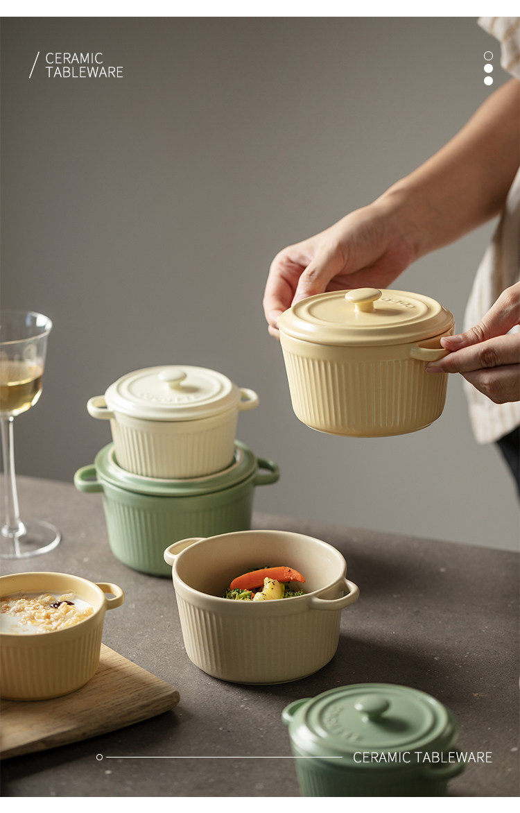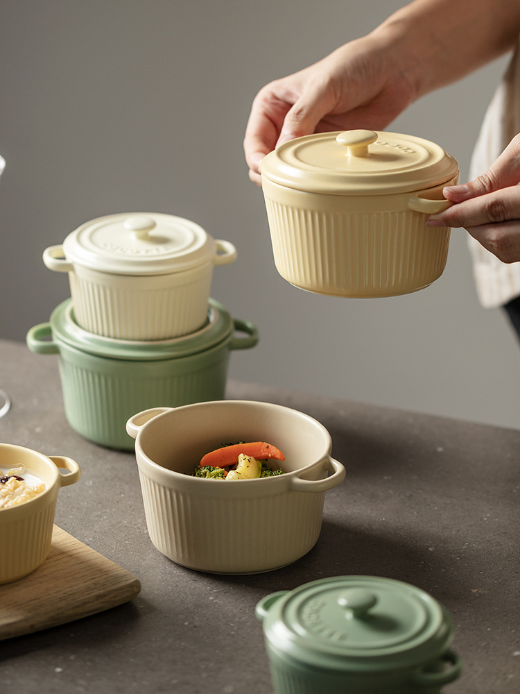 9QXC双耳蒸蛋碗舒芙蕾烤碗带盖空气炸锅儿童专用陶瓷炖蛋盅布丁碗