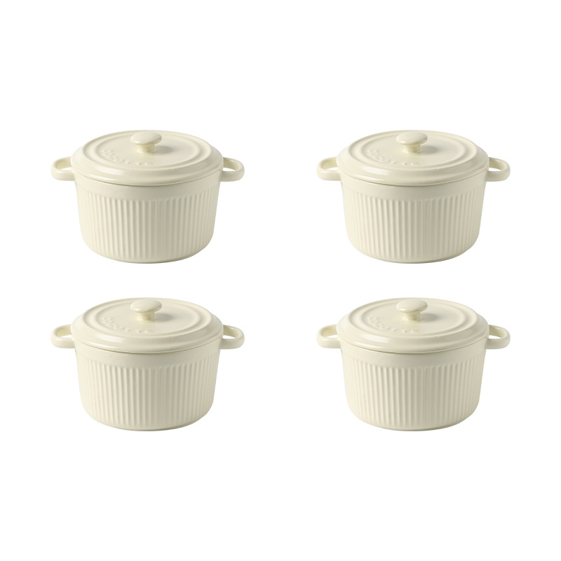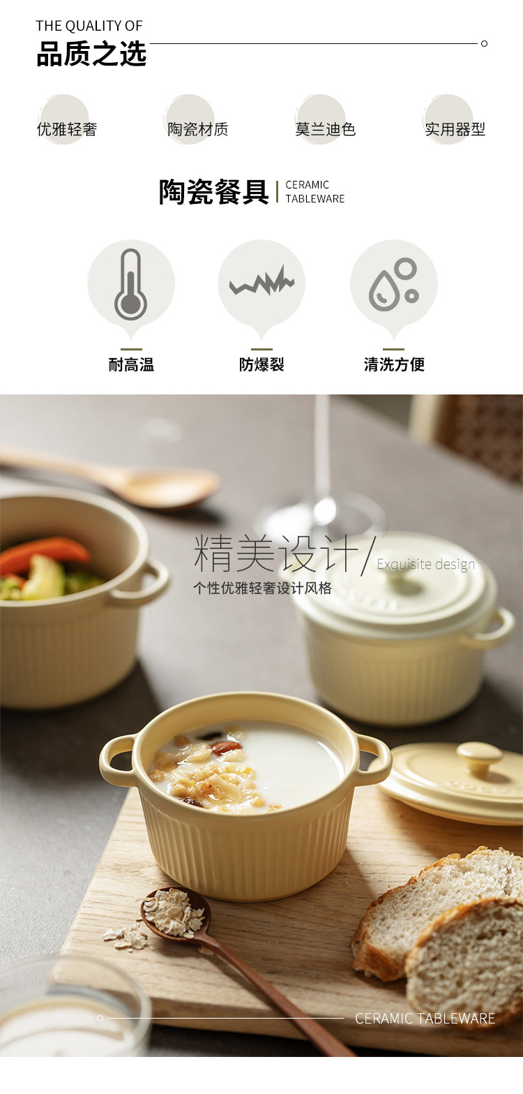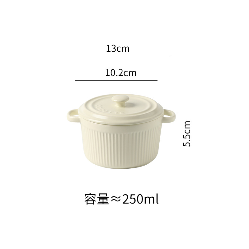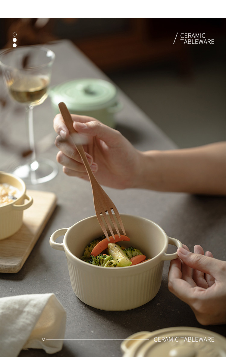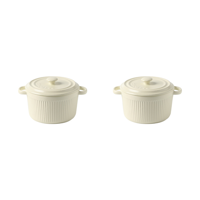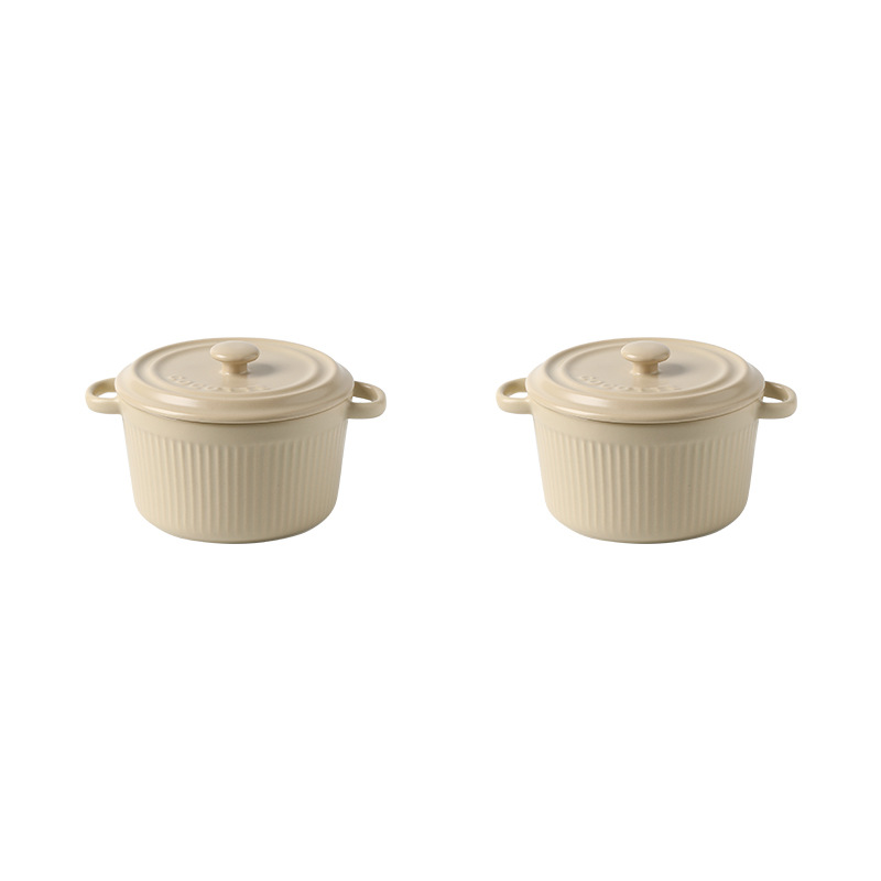 9QXC双耳蒸蛋碗舒芙蕾烤碗带盖空气炸锅儿童专用陶瓷炖蛋盅布丁碗