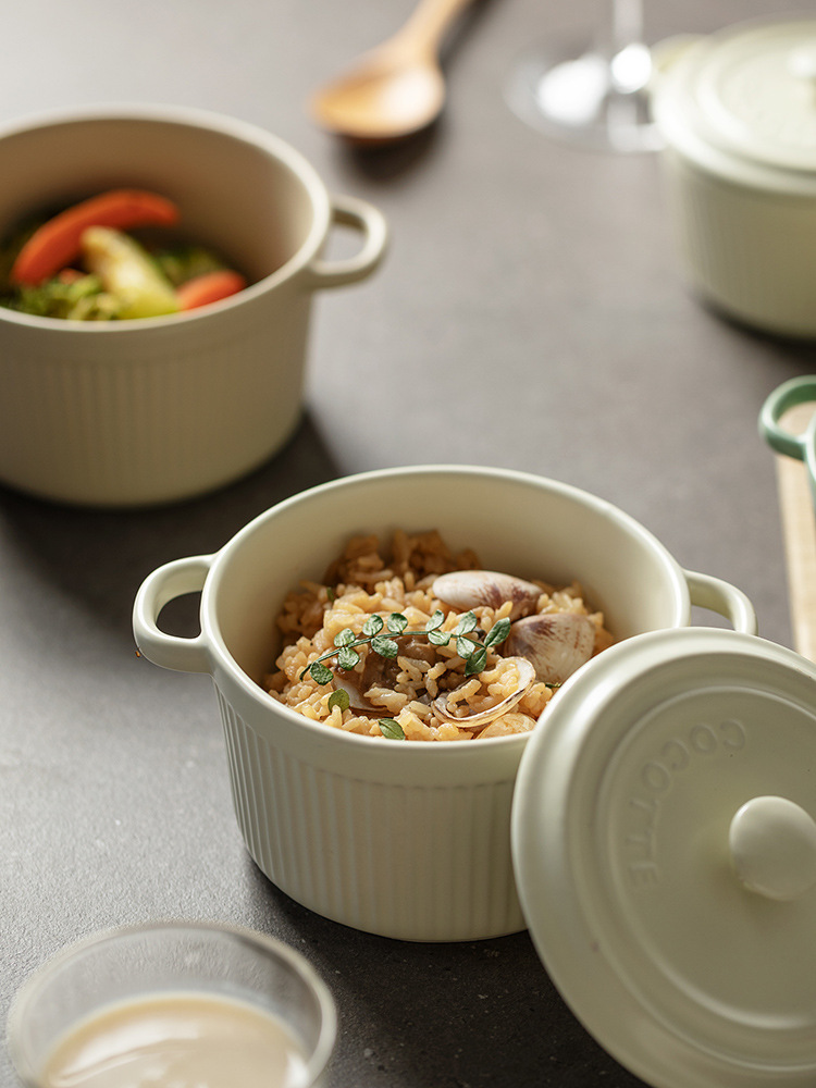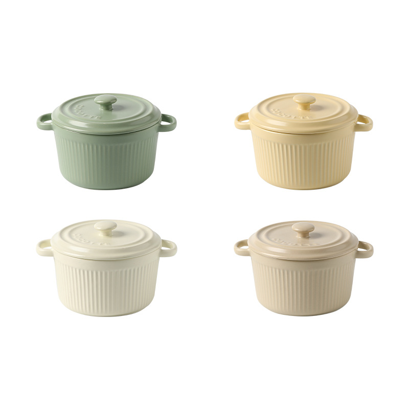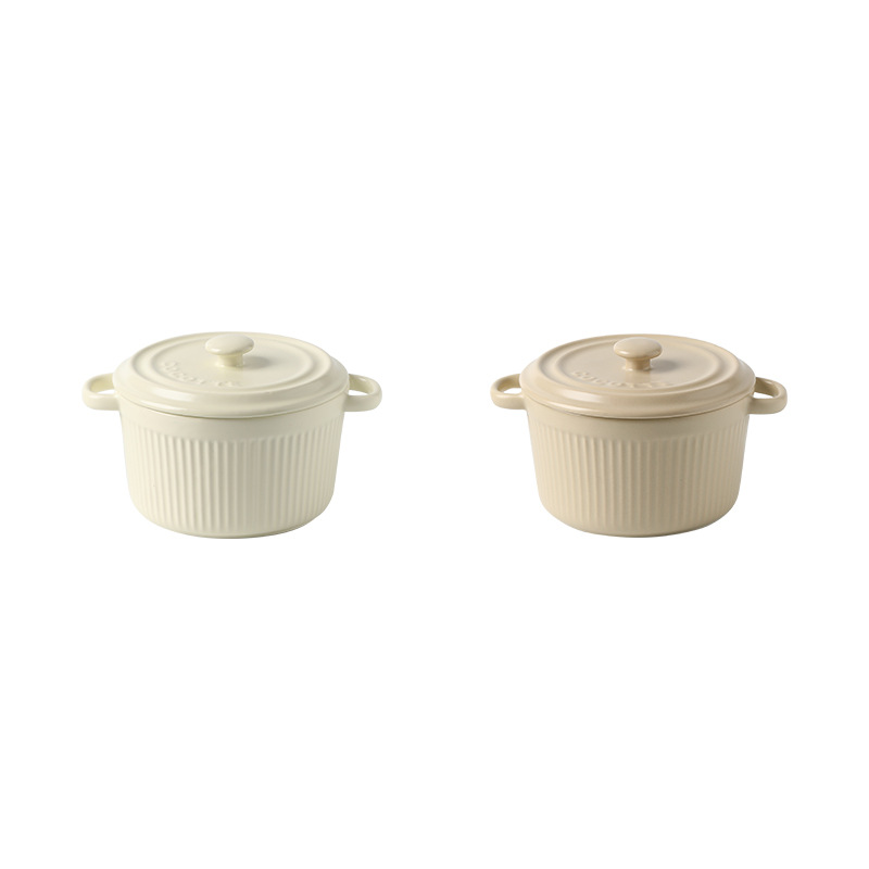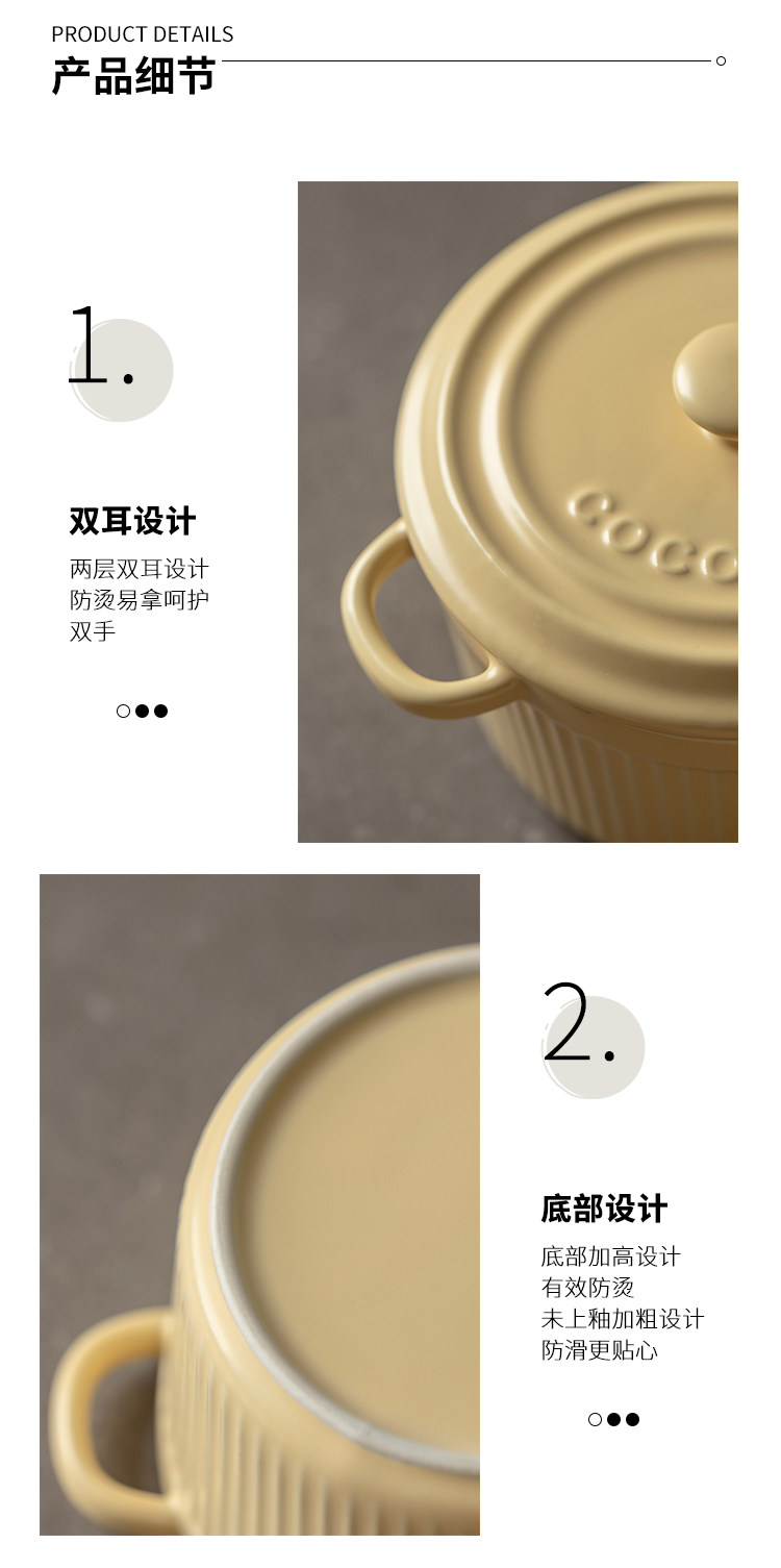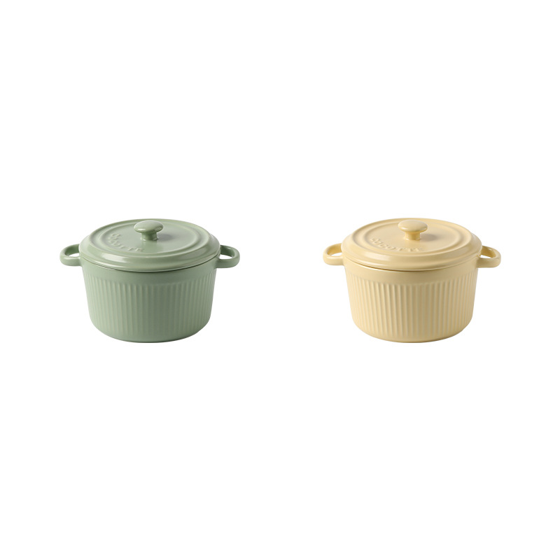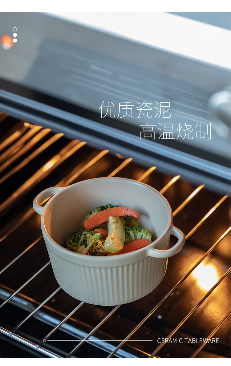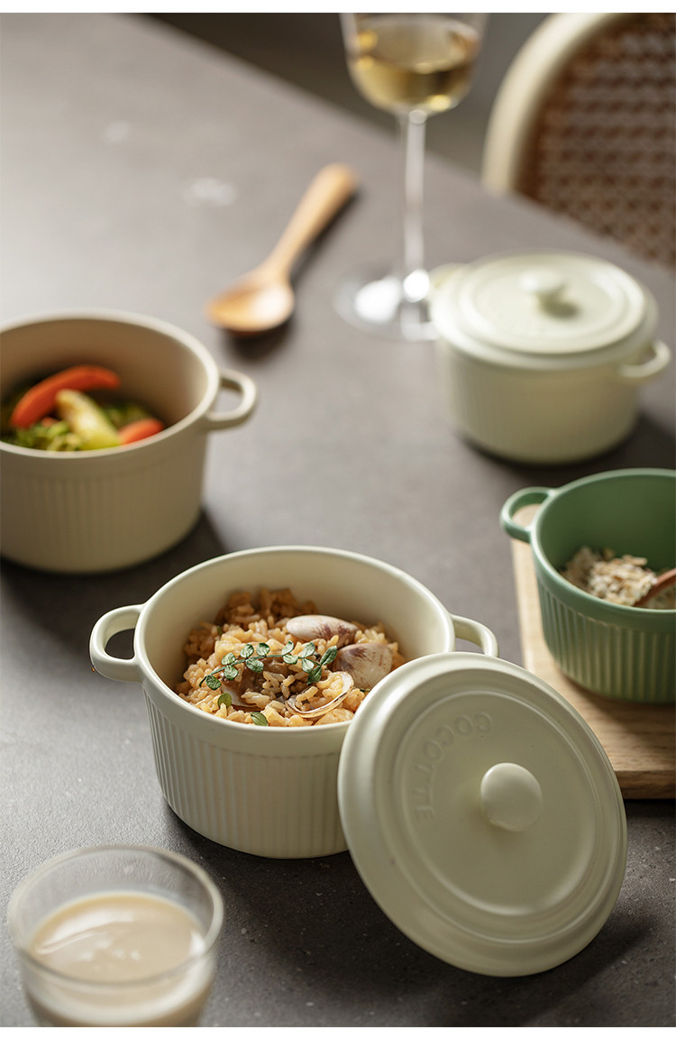 9QXC双耳蒸蛋碗舒芙蕾烤碗带盖空气炸锅儿童专用陶瓷炖蛋盅布丁碗