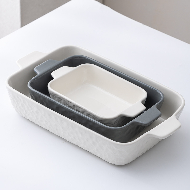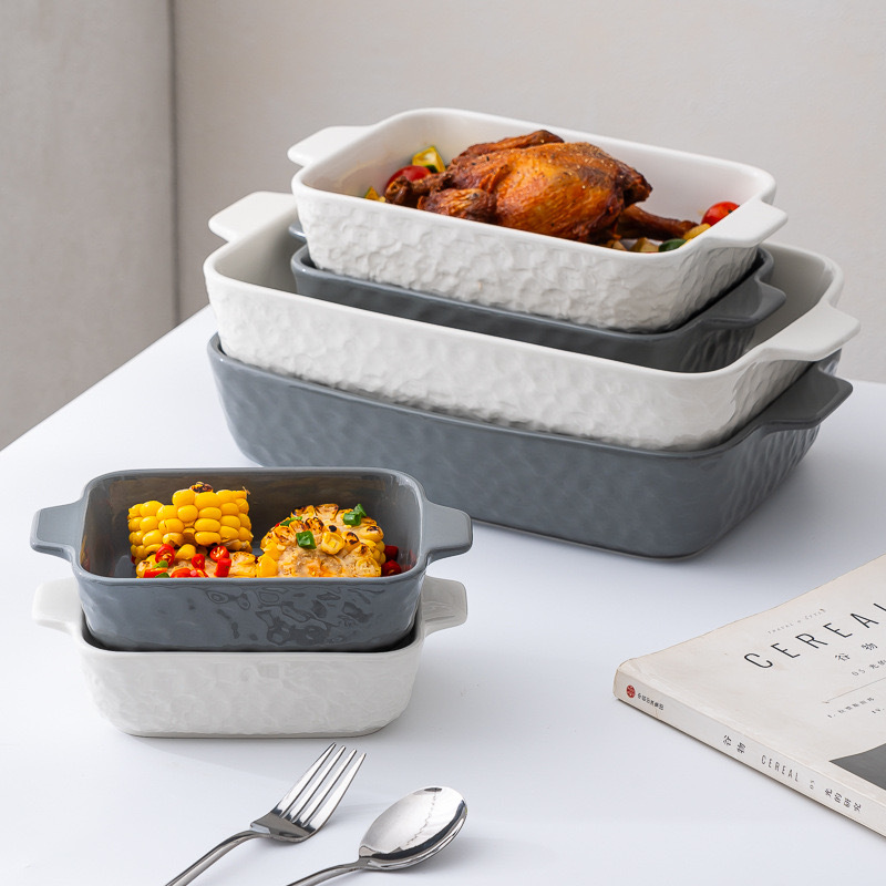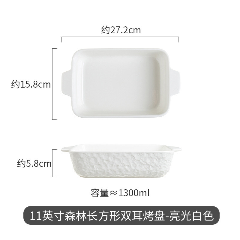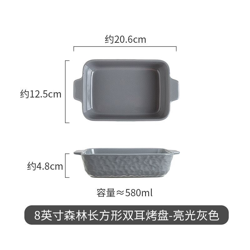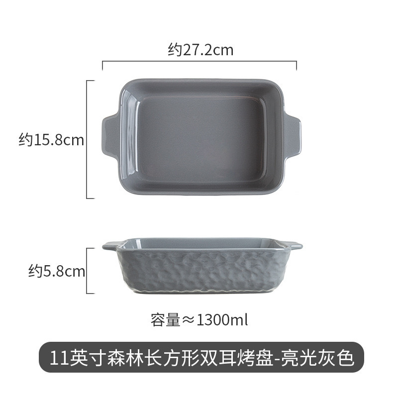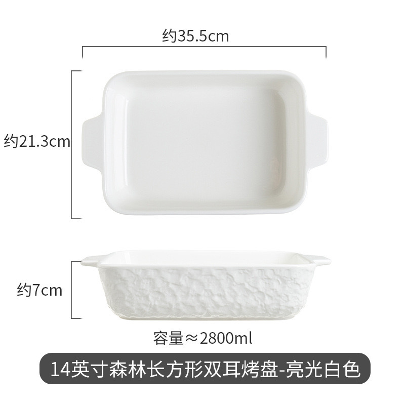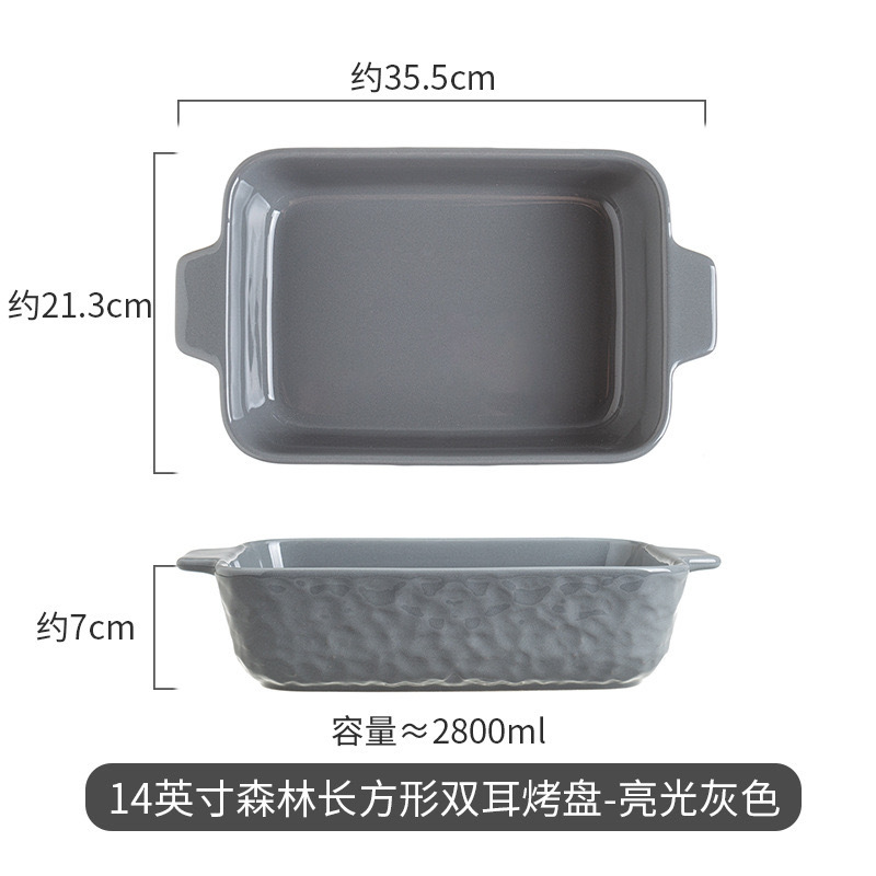 北欧简约纯色陶瓷双耳大号烤盘家用烤箱专用焗饭盘子家用双耳烤碗