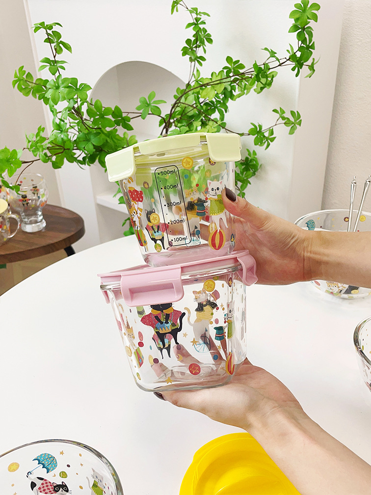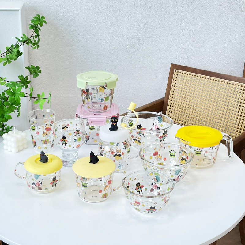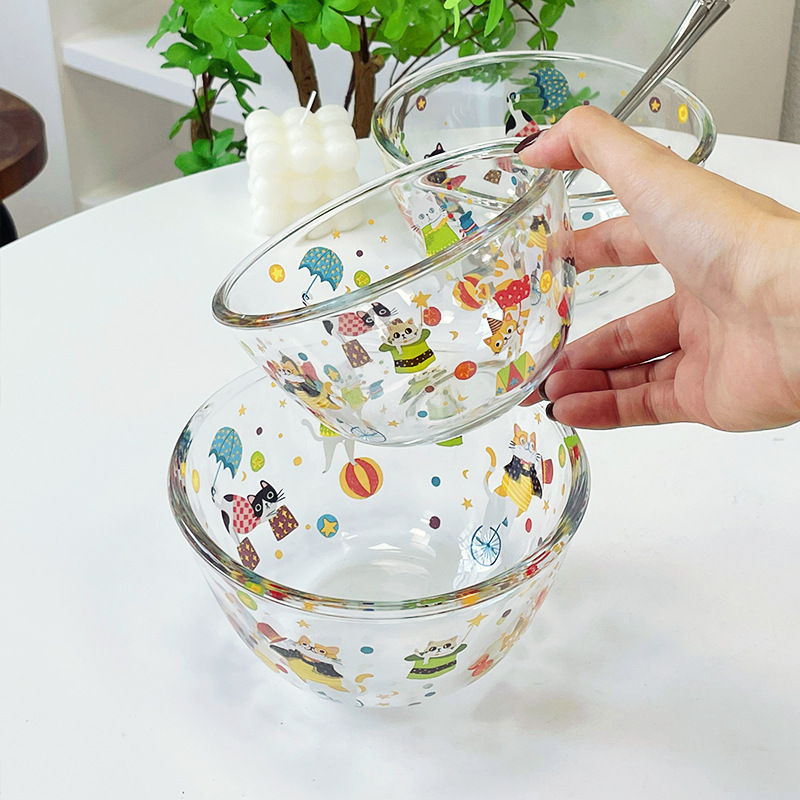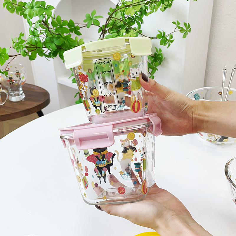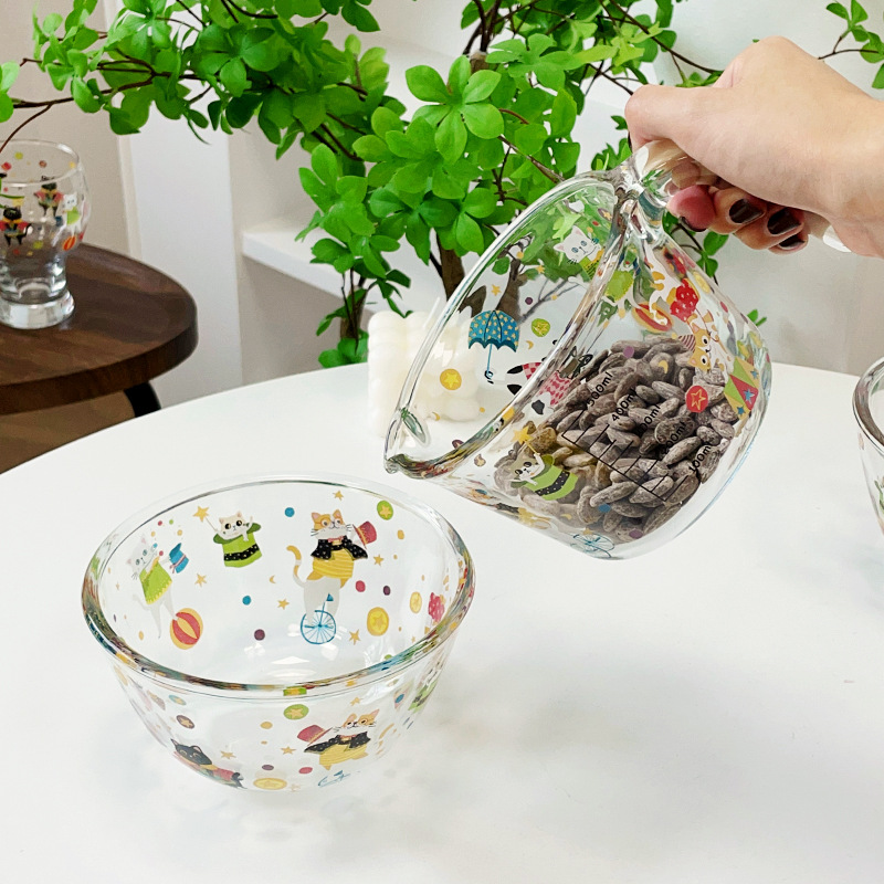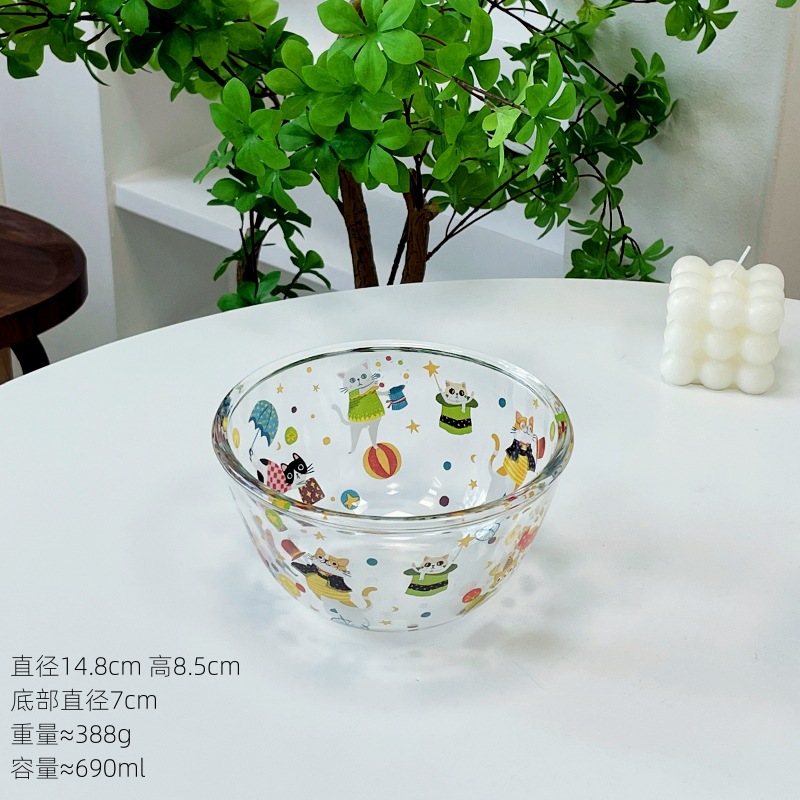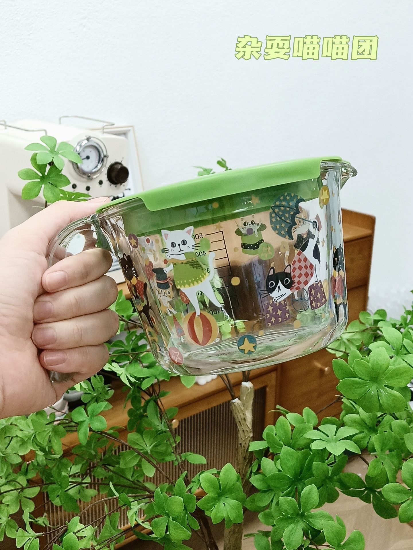 可爱喵咪烘焙量杯耐热玻璃水果沙拉碗素食碗家用烤碗密封保鲜罐