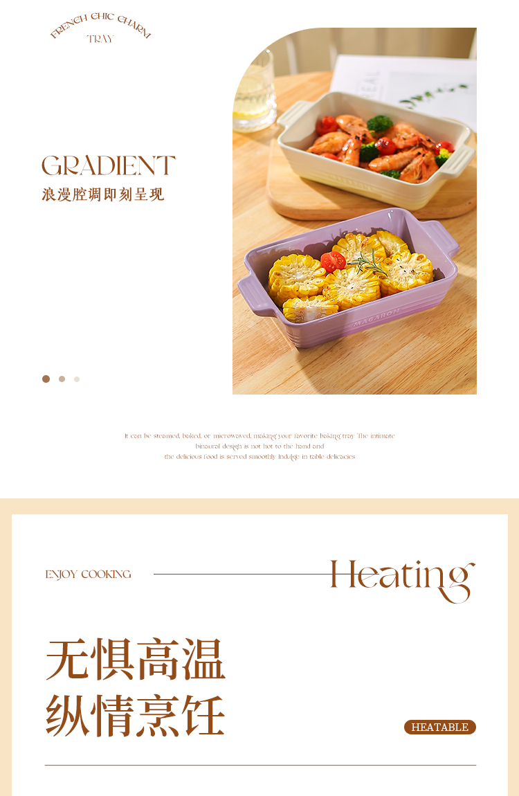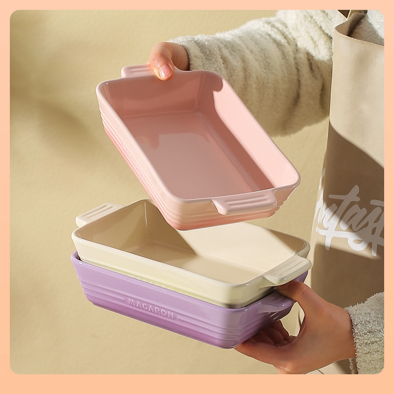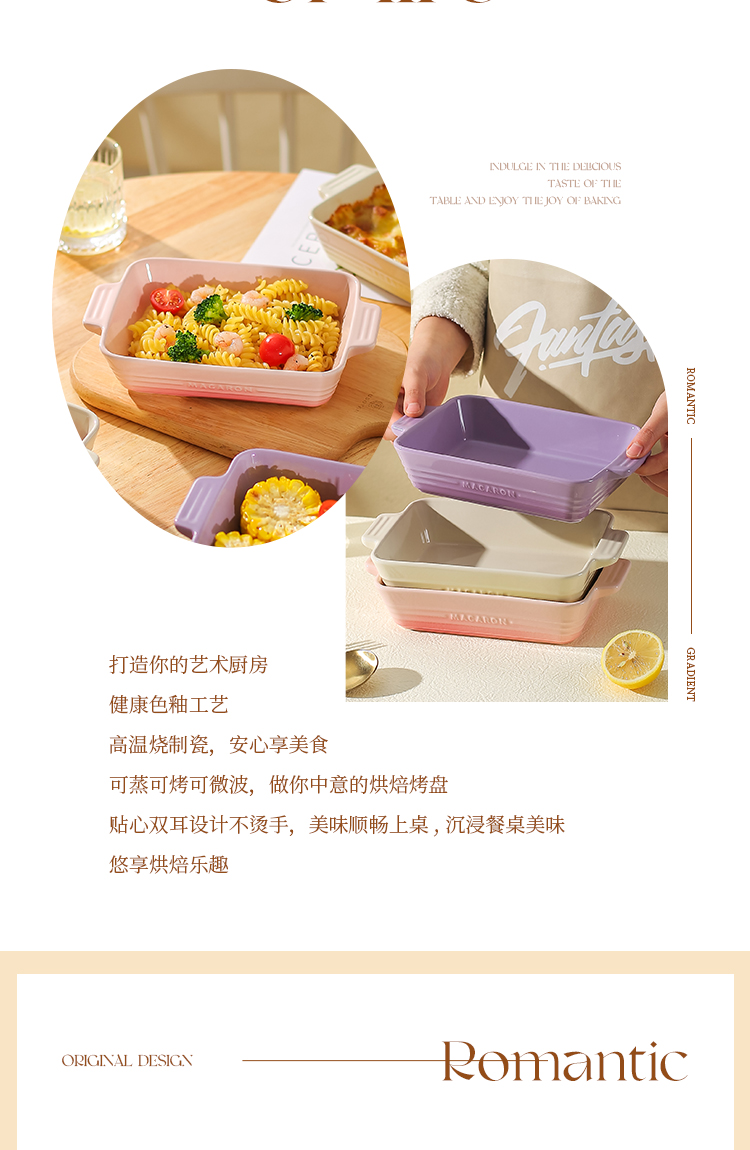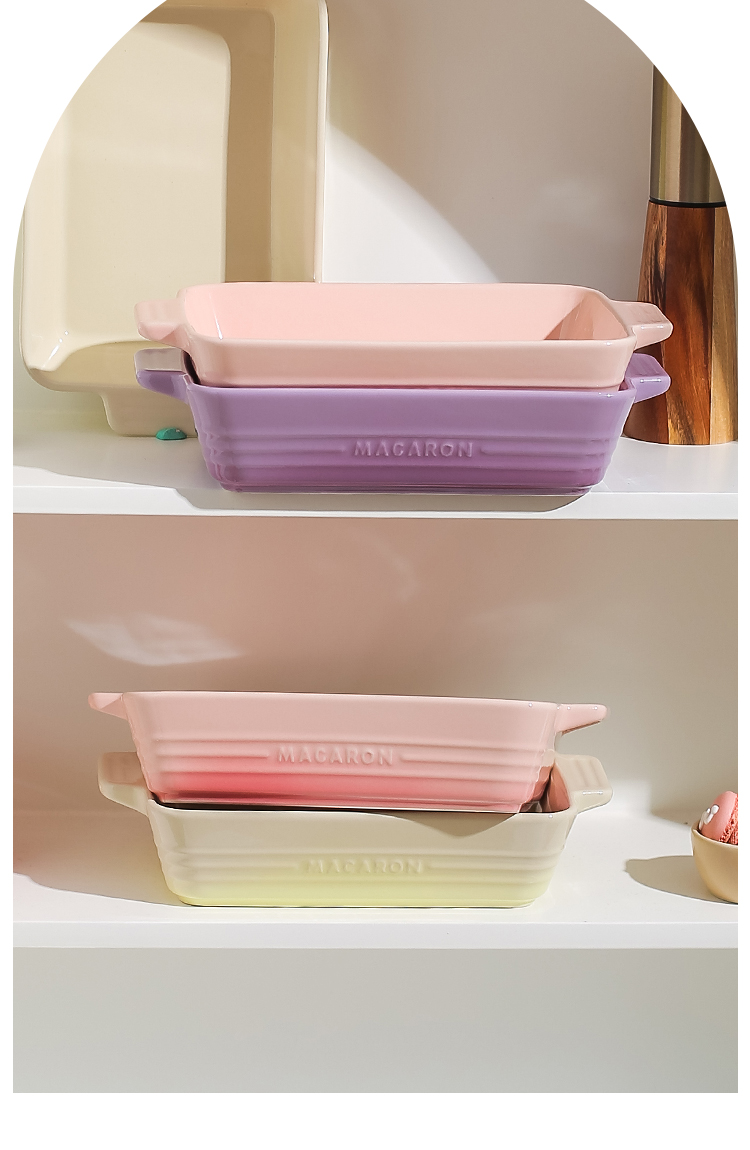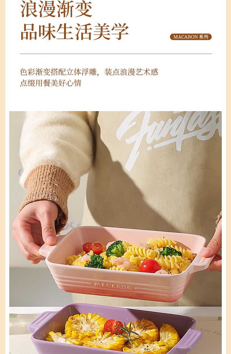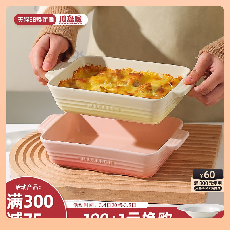✅川岛屋渐变双耳烤盘陶瓷烤碗焗饭盘长方形盘子微波炉烤箱