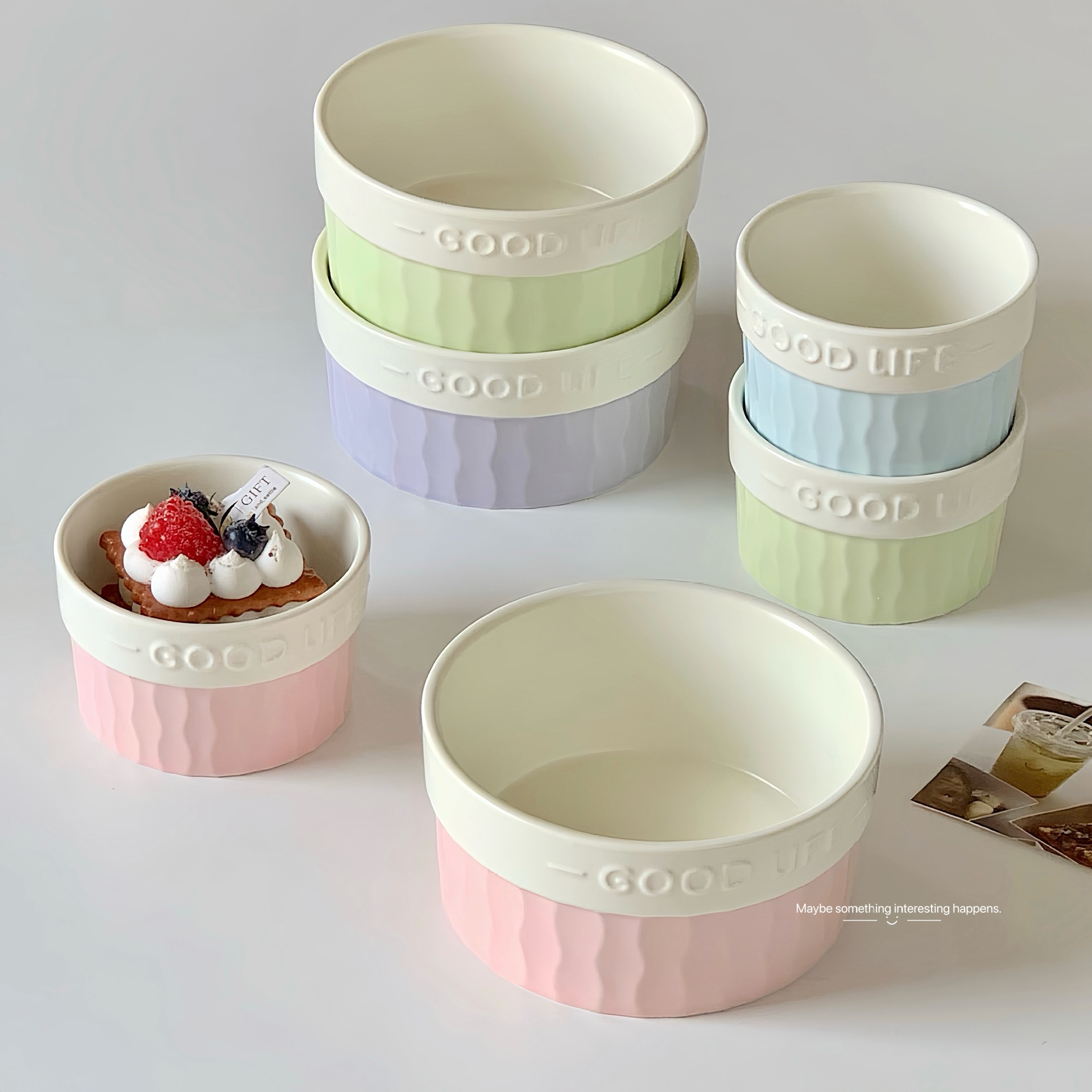 网红撞色陶瓷酸奶碗女生高颜值燕麦水果碗创意舒芙蕾烤碗蒸蛋碗