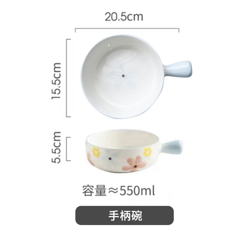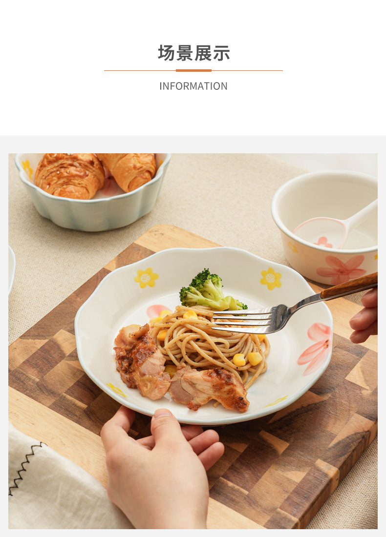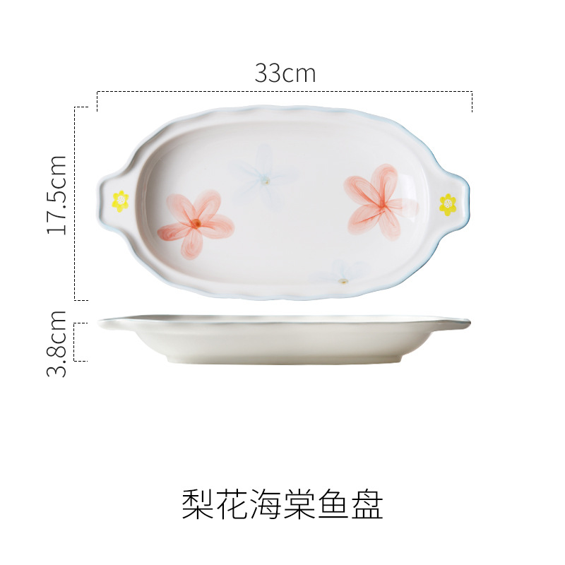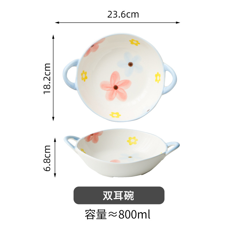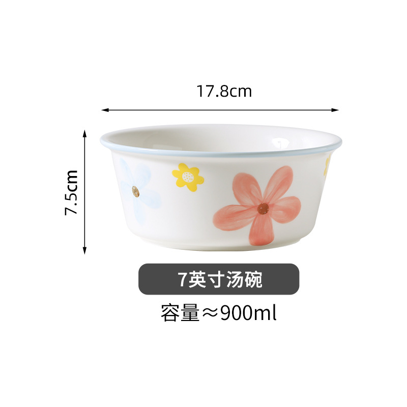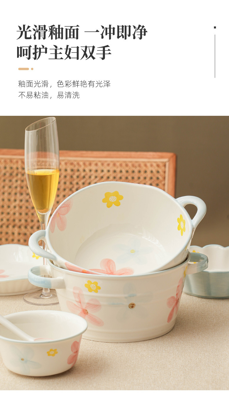 梨花海棠手绘陶瓷餐具高颜值釉下彩家用饭碗大号汤碗菜盘烘焙烤碗