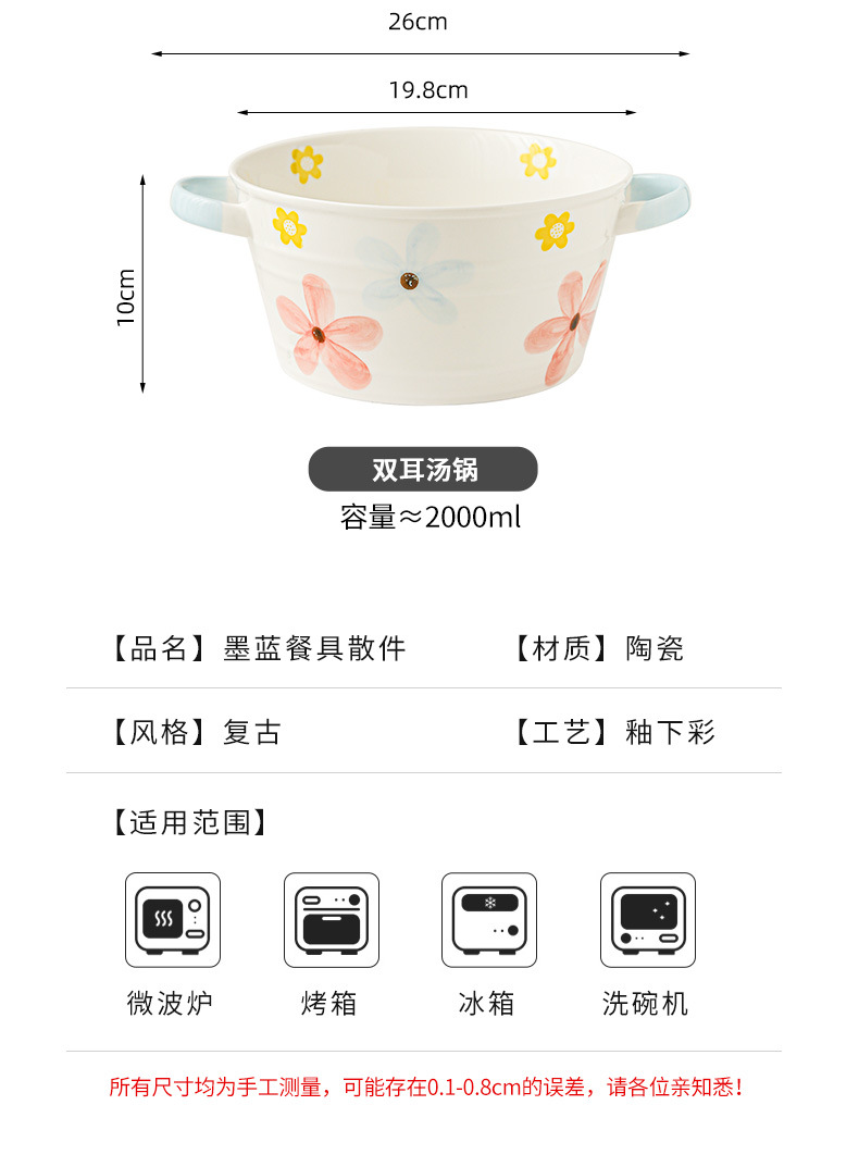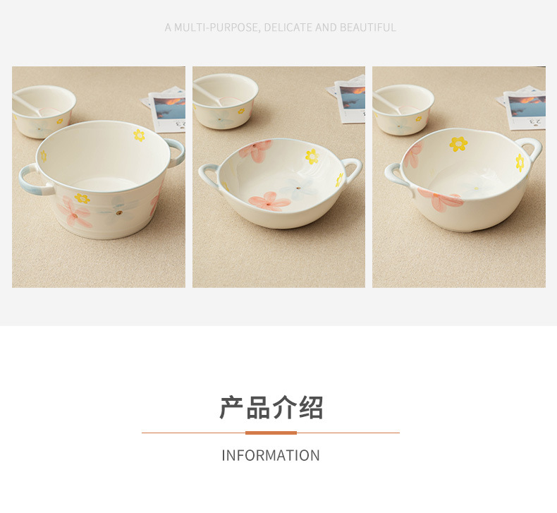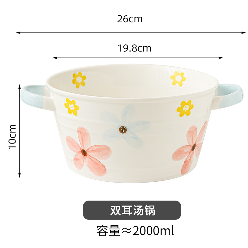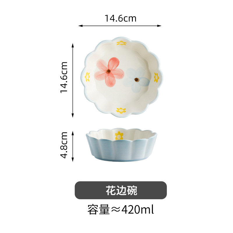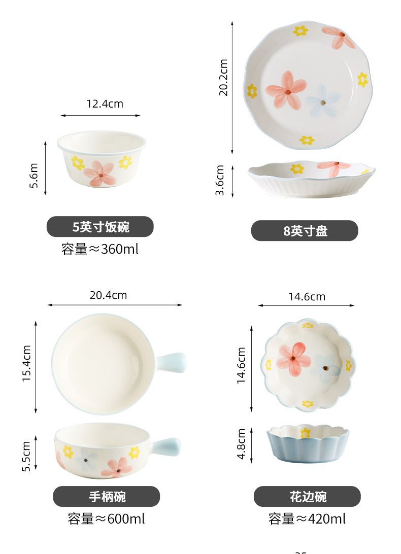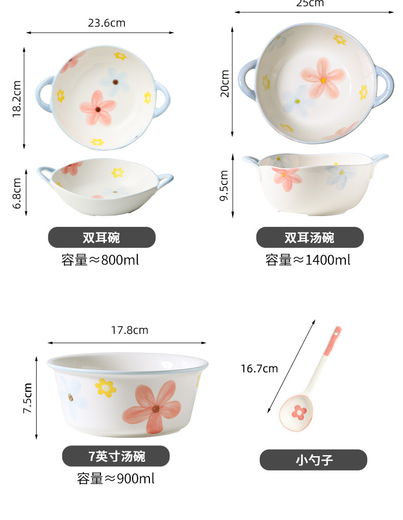 梨花海棠手绘陶瓷餐具高颜值釉下彩家用饭碗大号汤碗菜盘烘焙烤碗