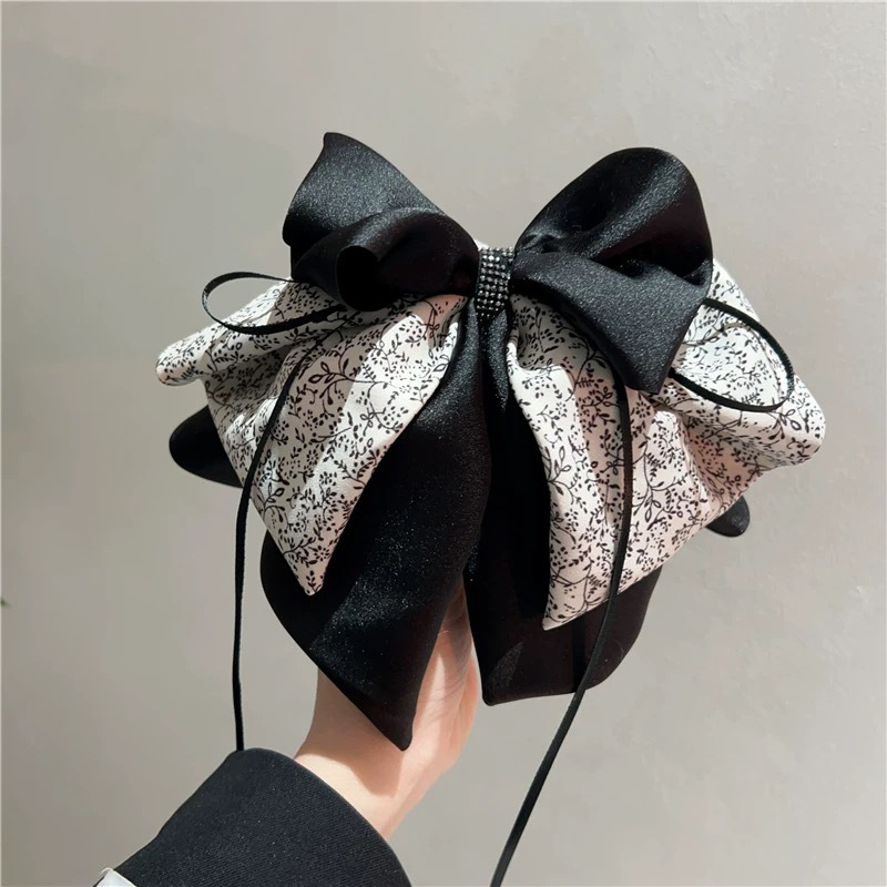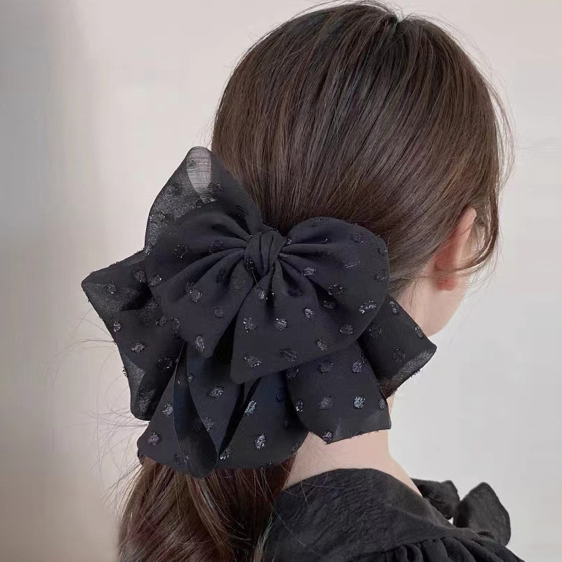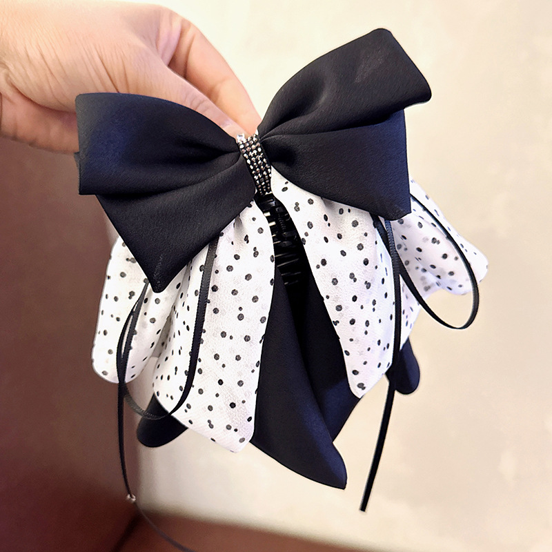 复古感缎面珍珠蝴蝶结抓夹女后脑勺低马尾发卡半扎发发夹气质发饰