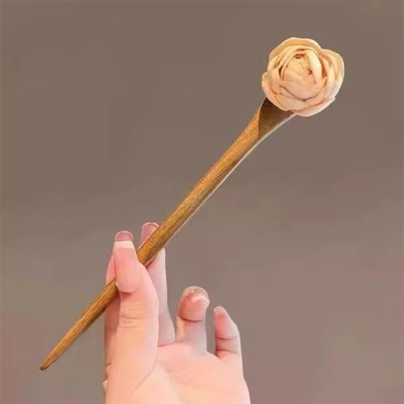 木质簪子复古仿真花朵发簪旗袍配饰新中式木簪高级感发钗古风头饰