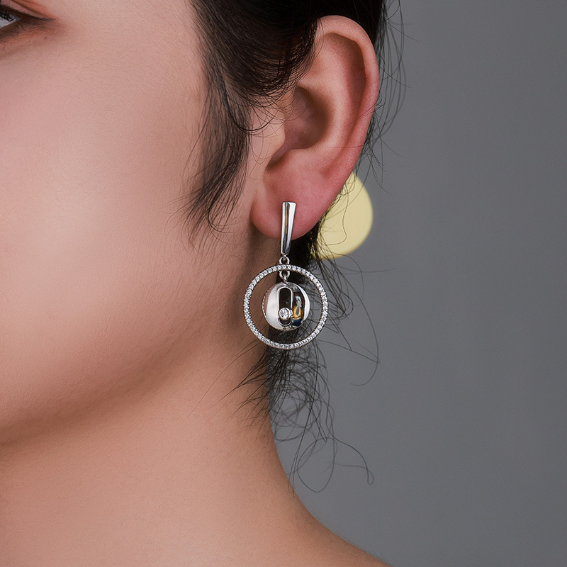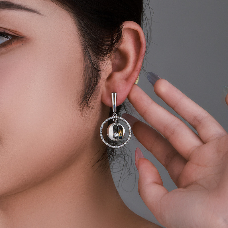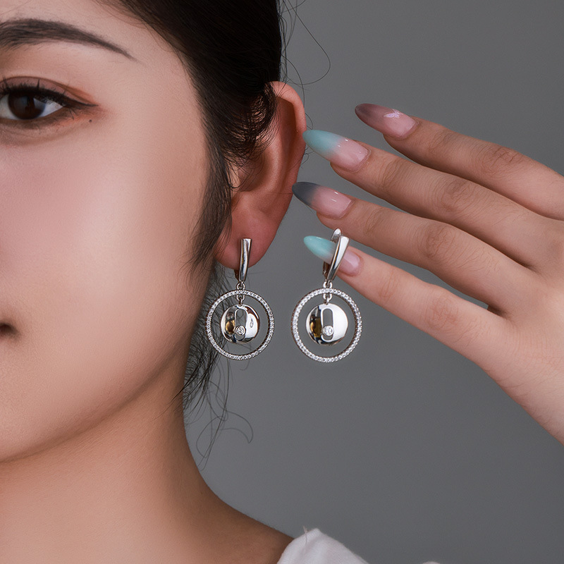 旭平 欧美跨境时尚合金电镀白色长款几何圆形D字扣耳环耳饰批发女