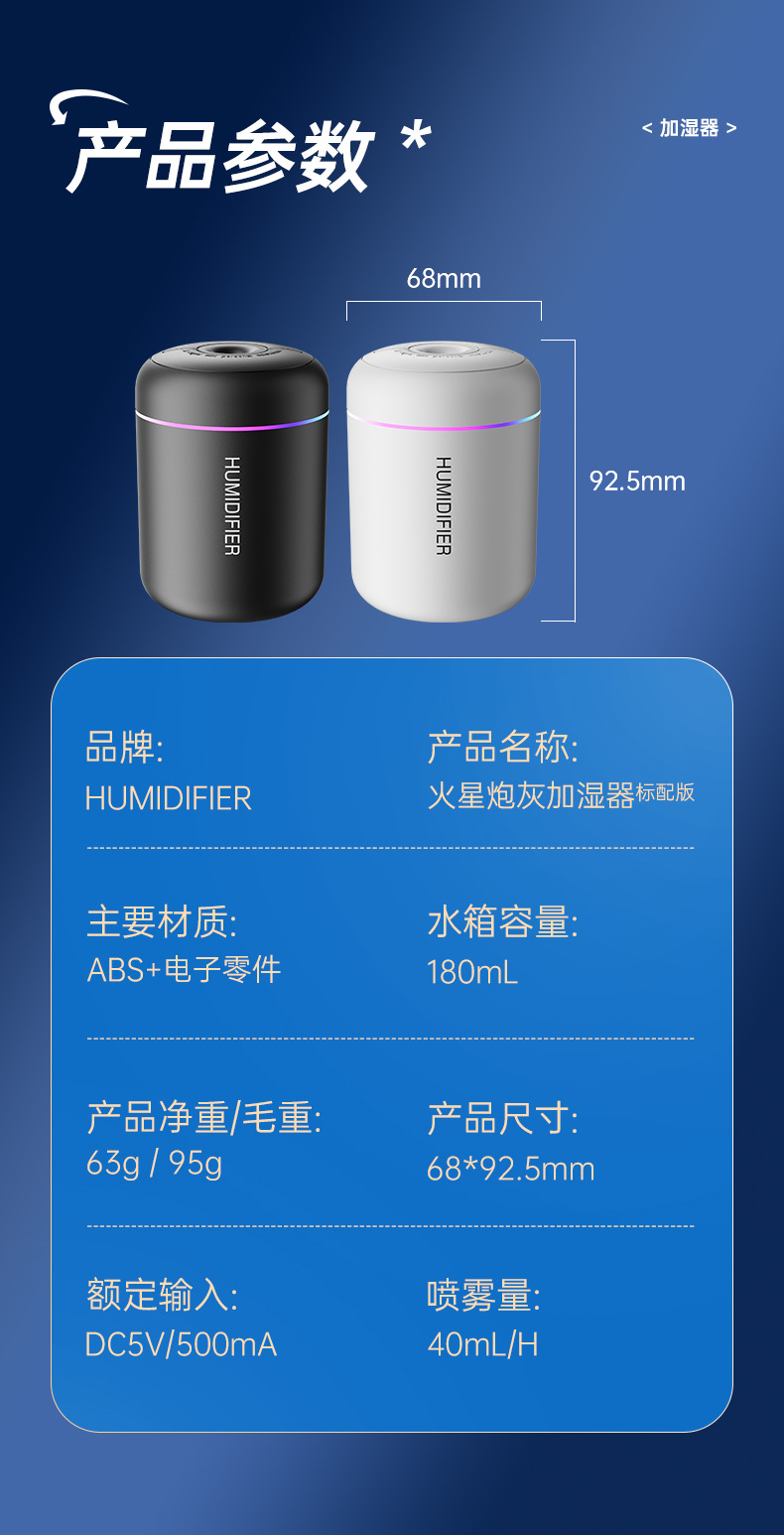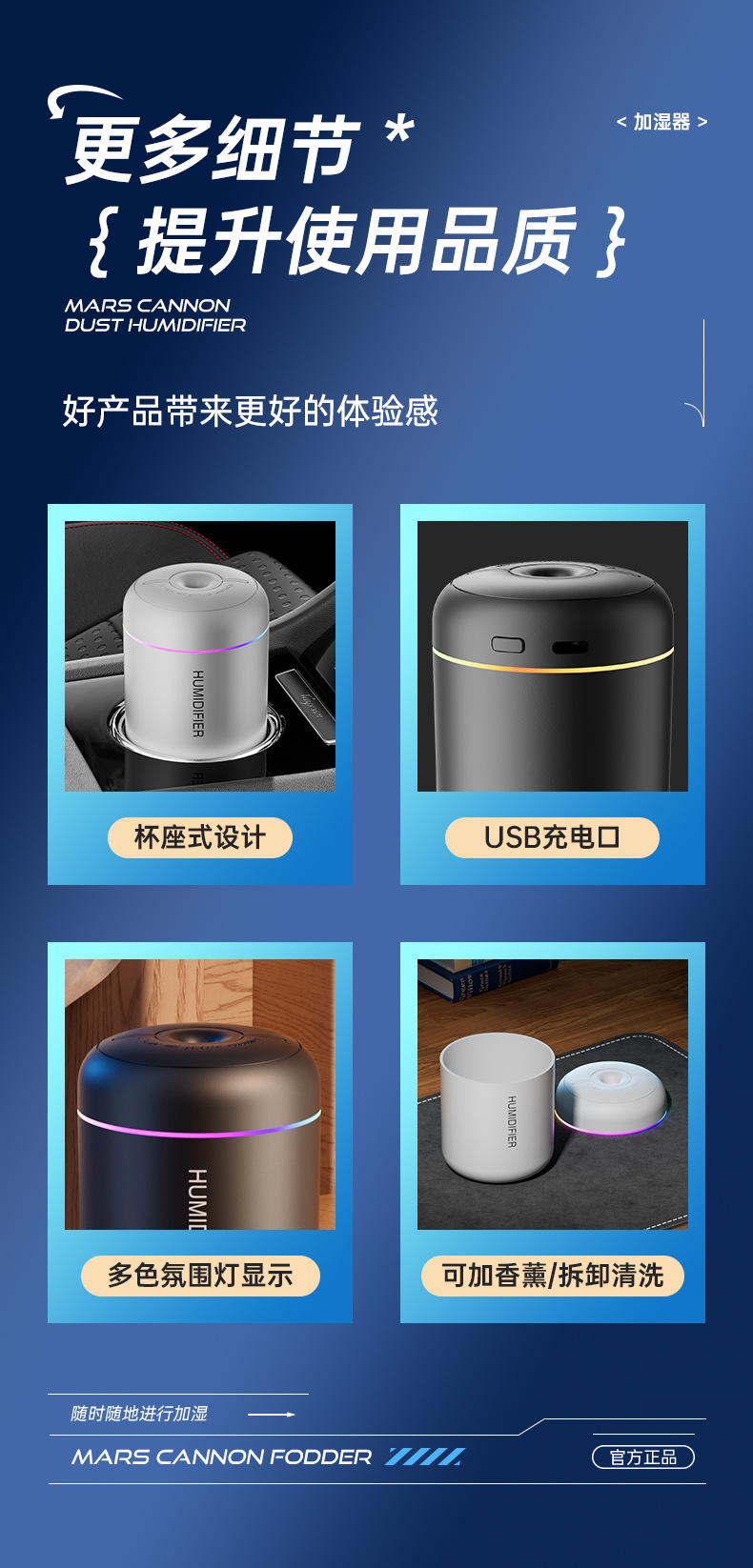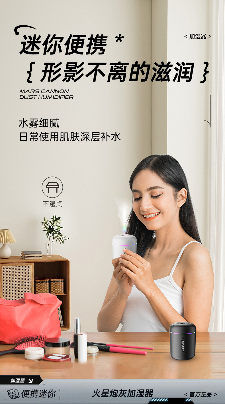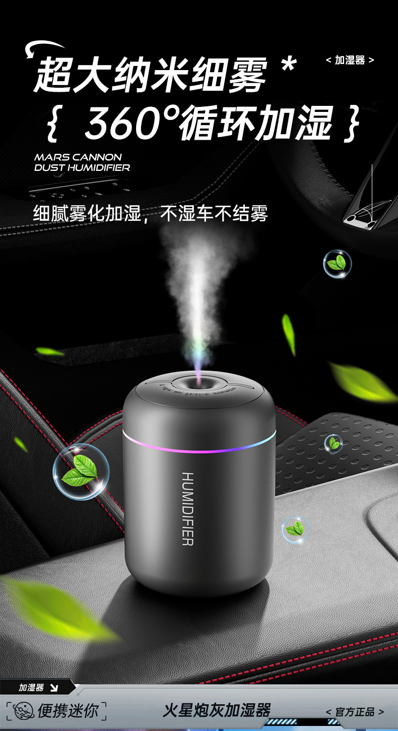 新款火星炮灰加湿器 车载香薰家用日常空气净化迷你雾化器
