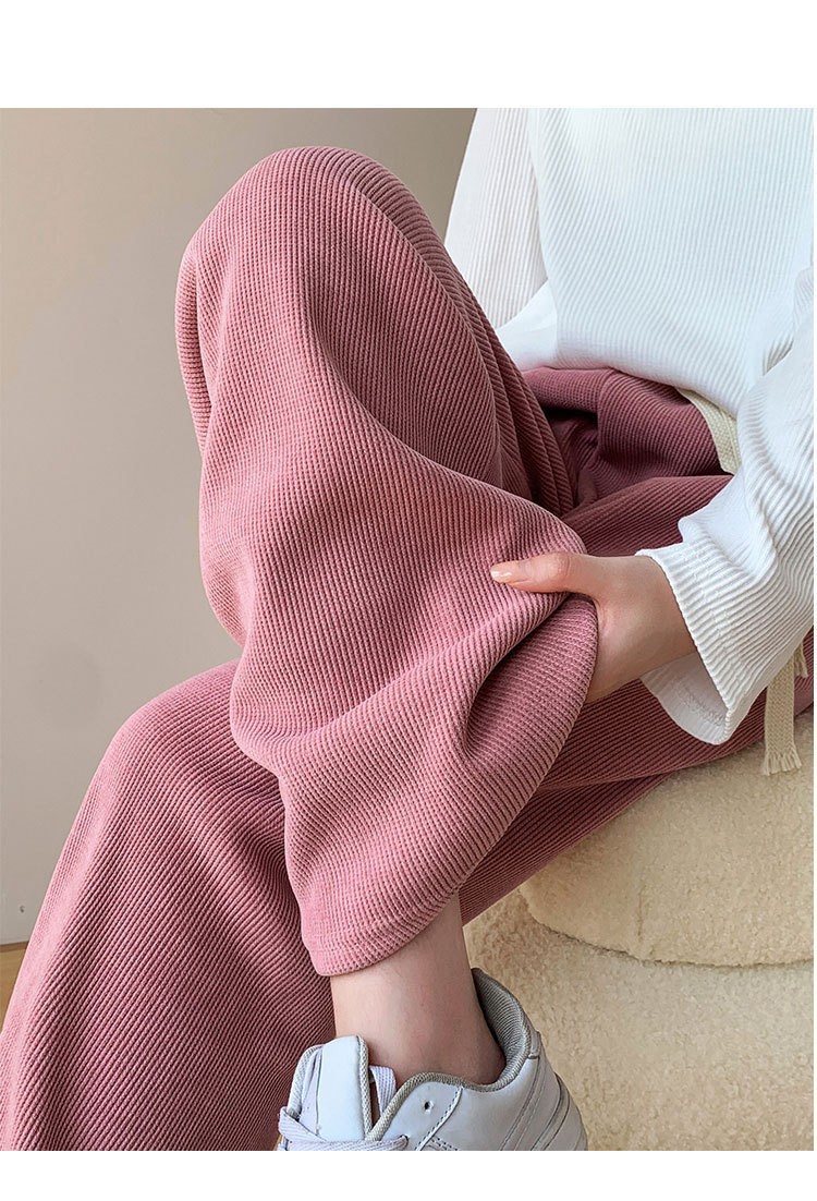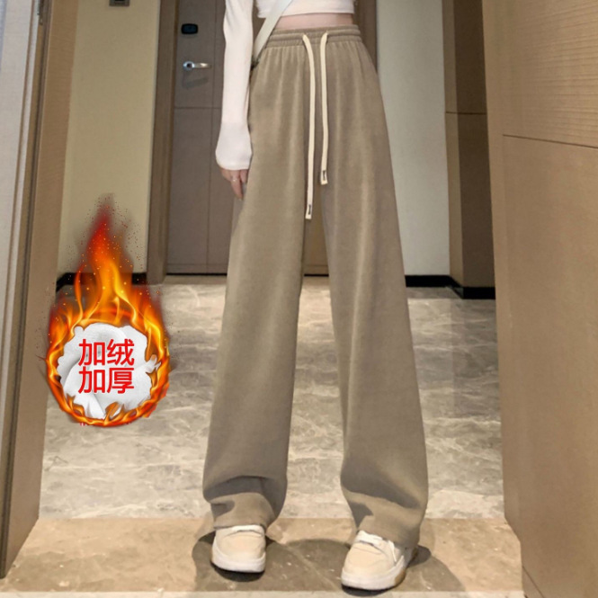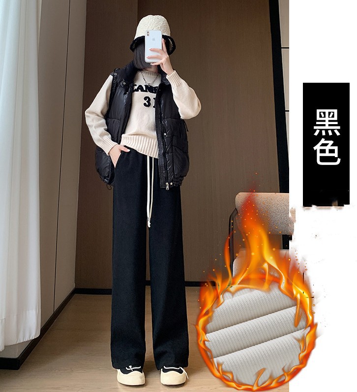 秋冬欧棉绒阔腿裤女高腰垂感宽松直筒加绒裤子休闲加厚灯芯绒长裤