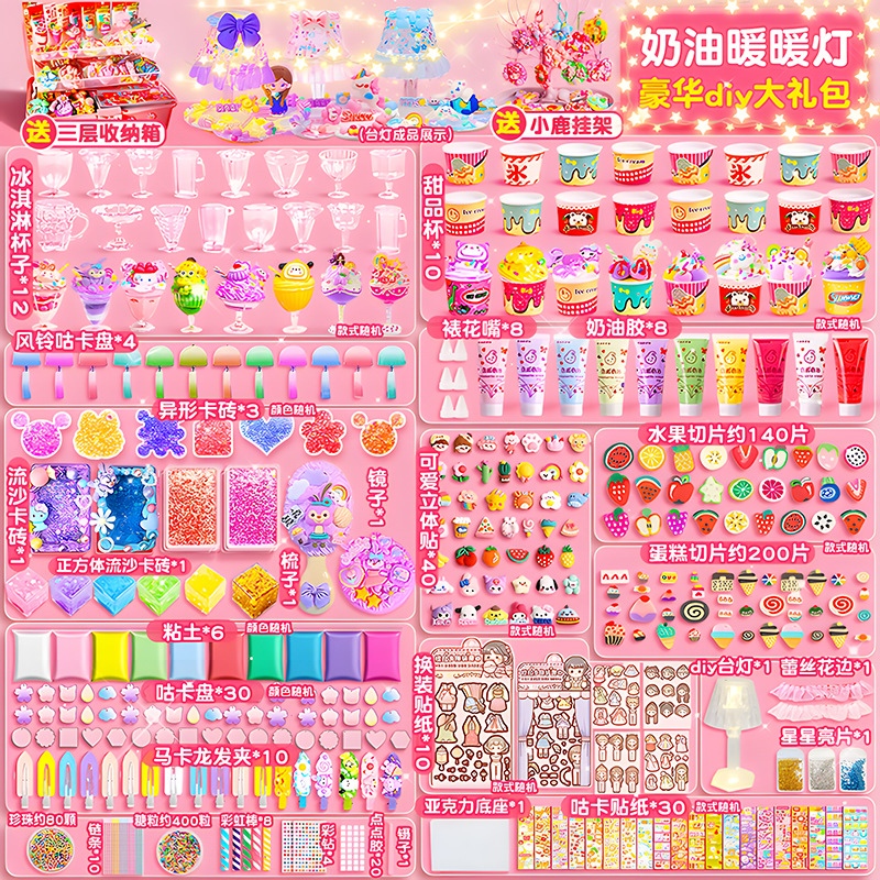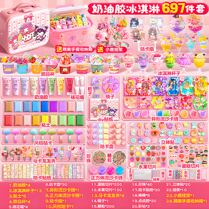 奶油胶杯冰淇淋咕卡套装风铃咕卡手工diy制作材料包创意女孩玩具