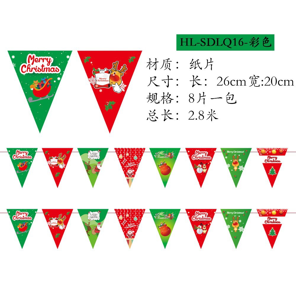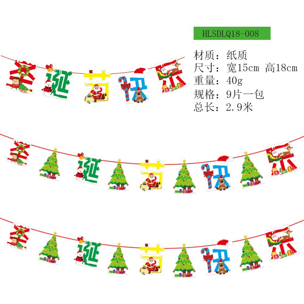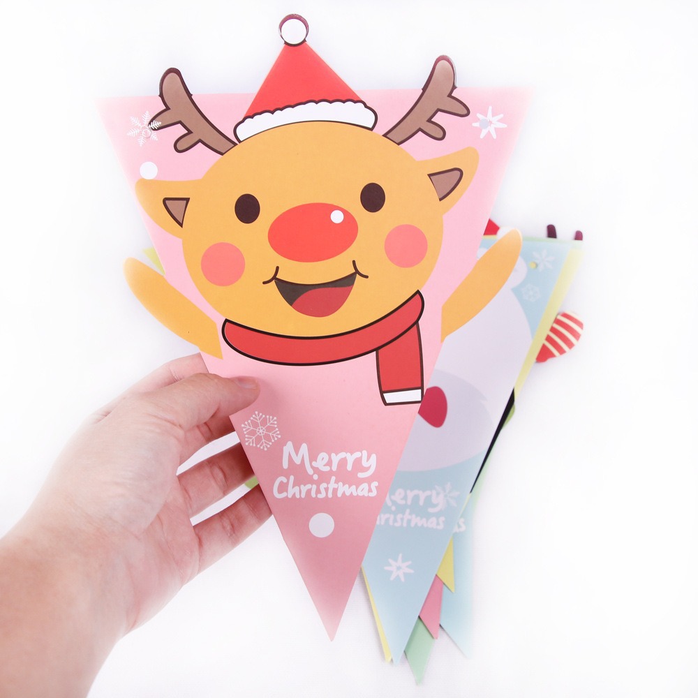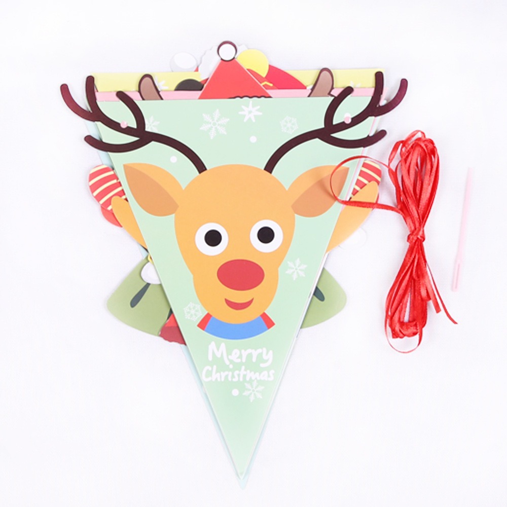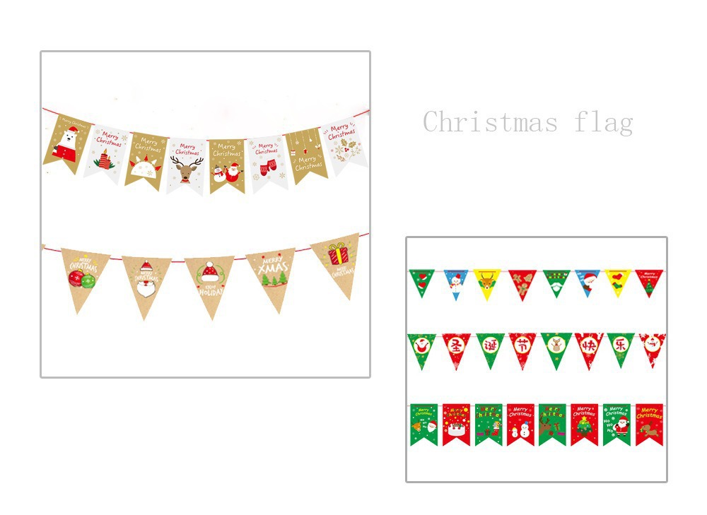圣诞纸质拉旗拉花横幅圣诞节派对装饰用品圣诞雪人麋鹿三角旗彩旗