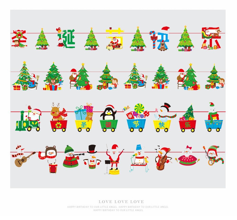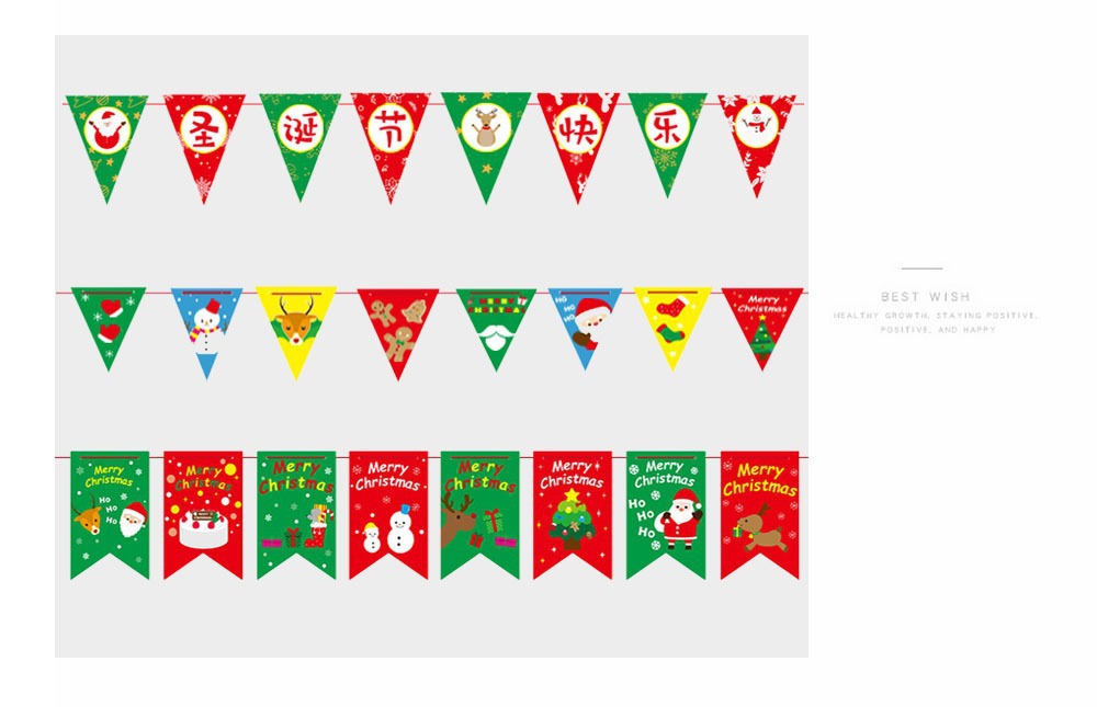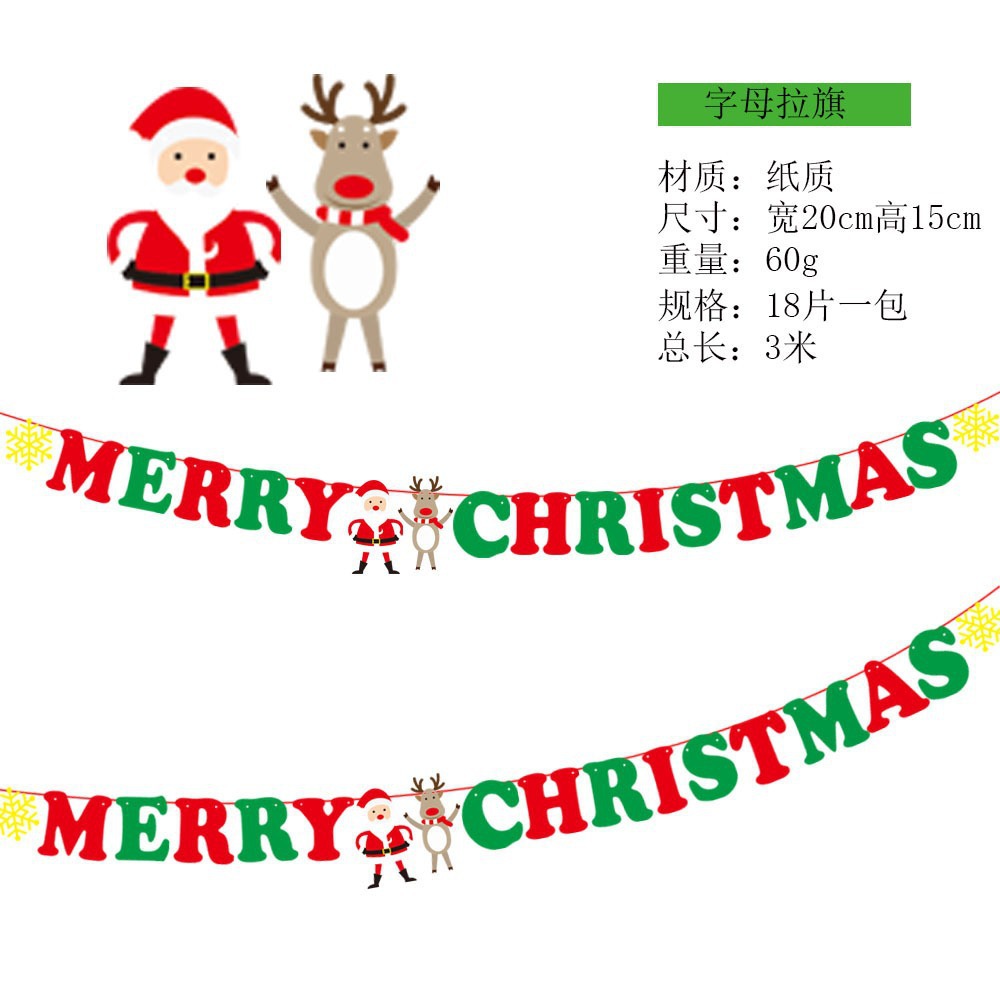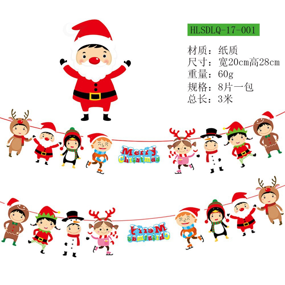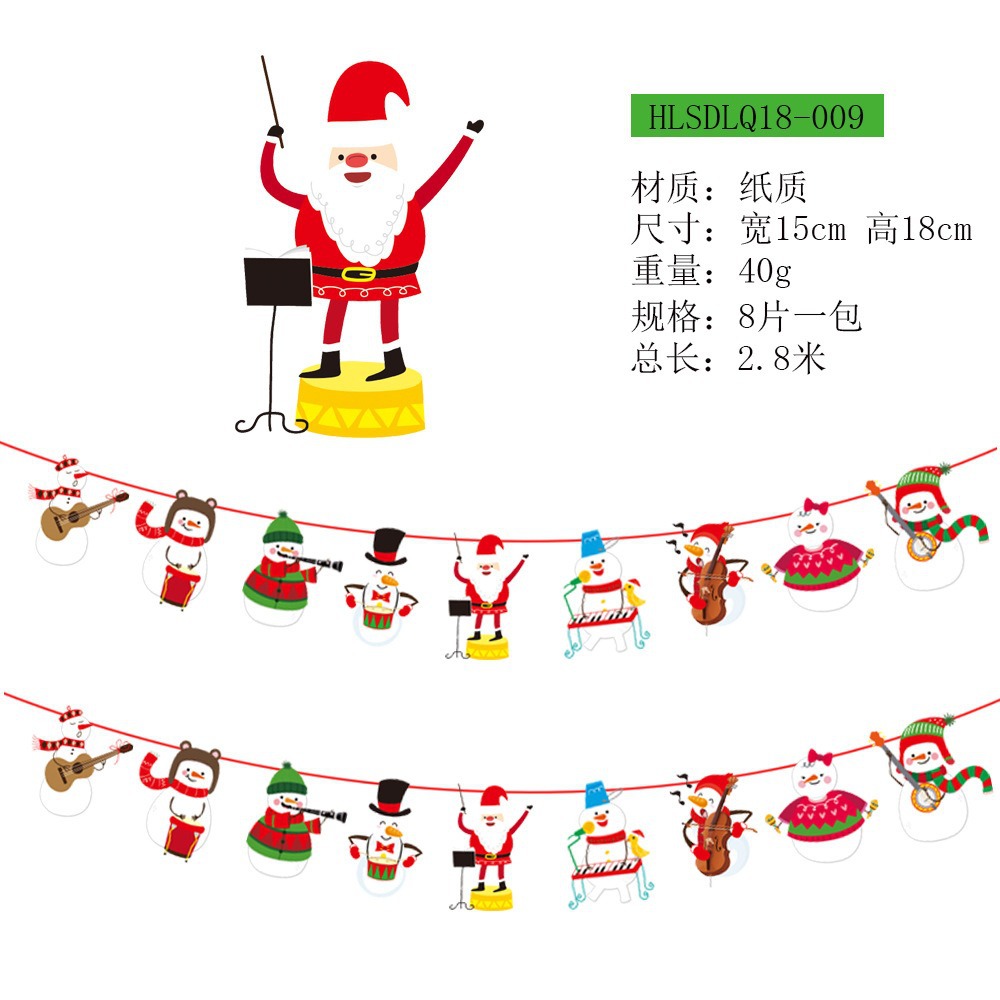 圣诞纸质拉旗拉花横幅圣诞节派对装饰用品圣诞雪人麋鹿三角旗彩旗