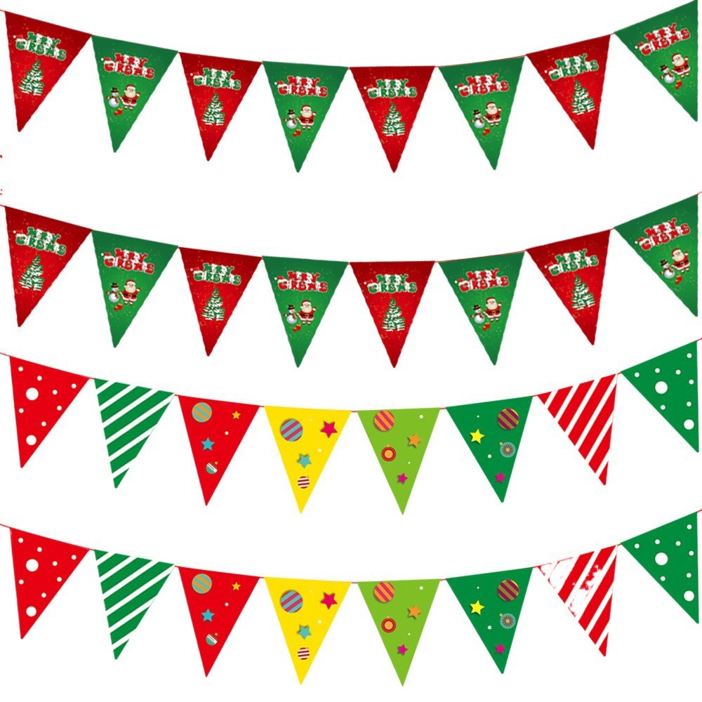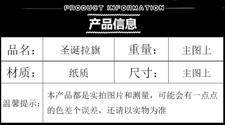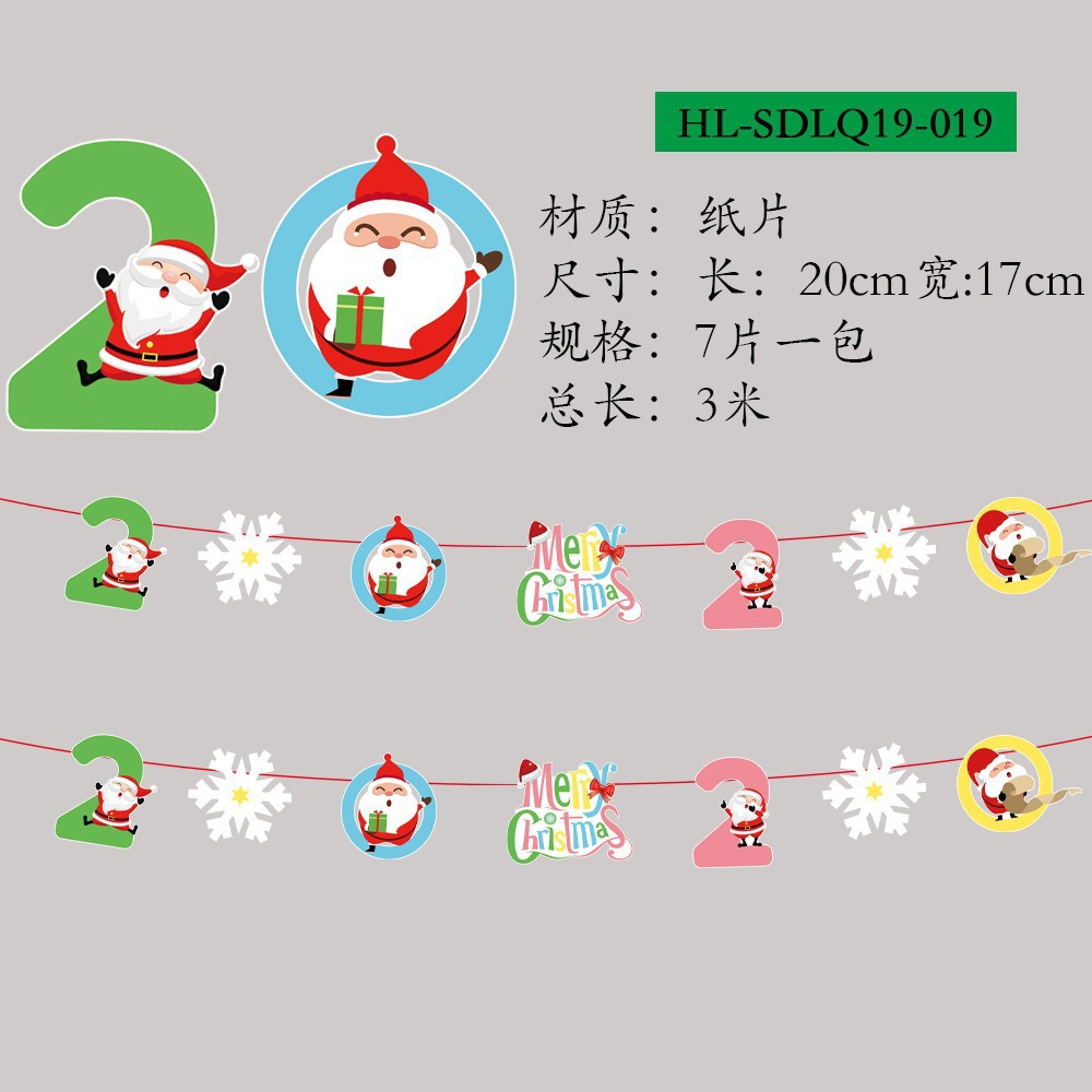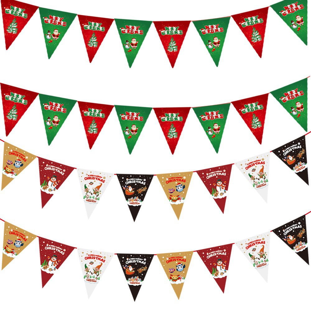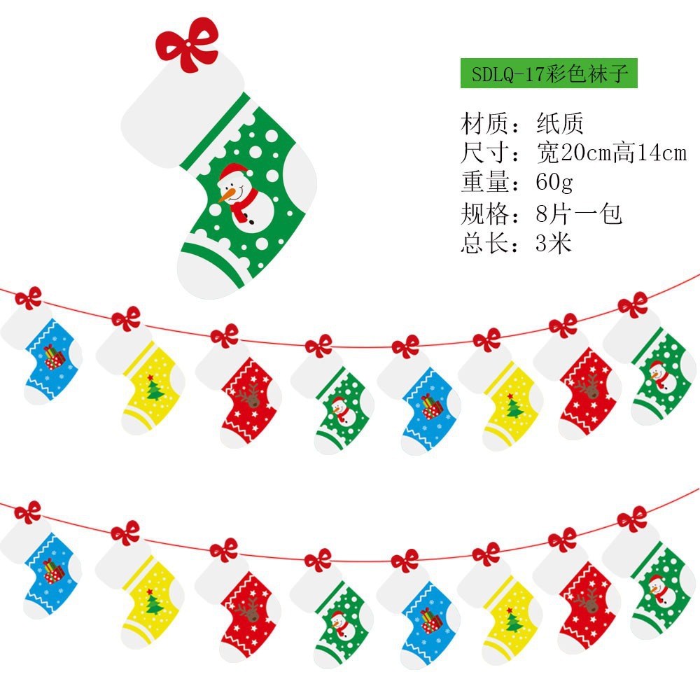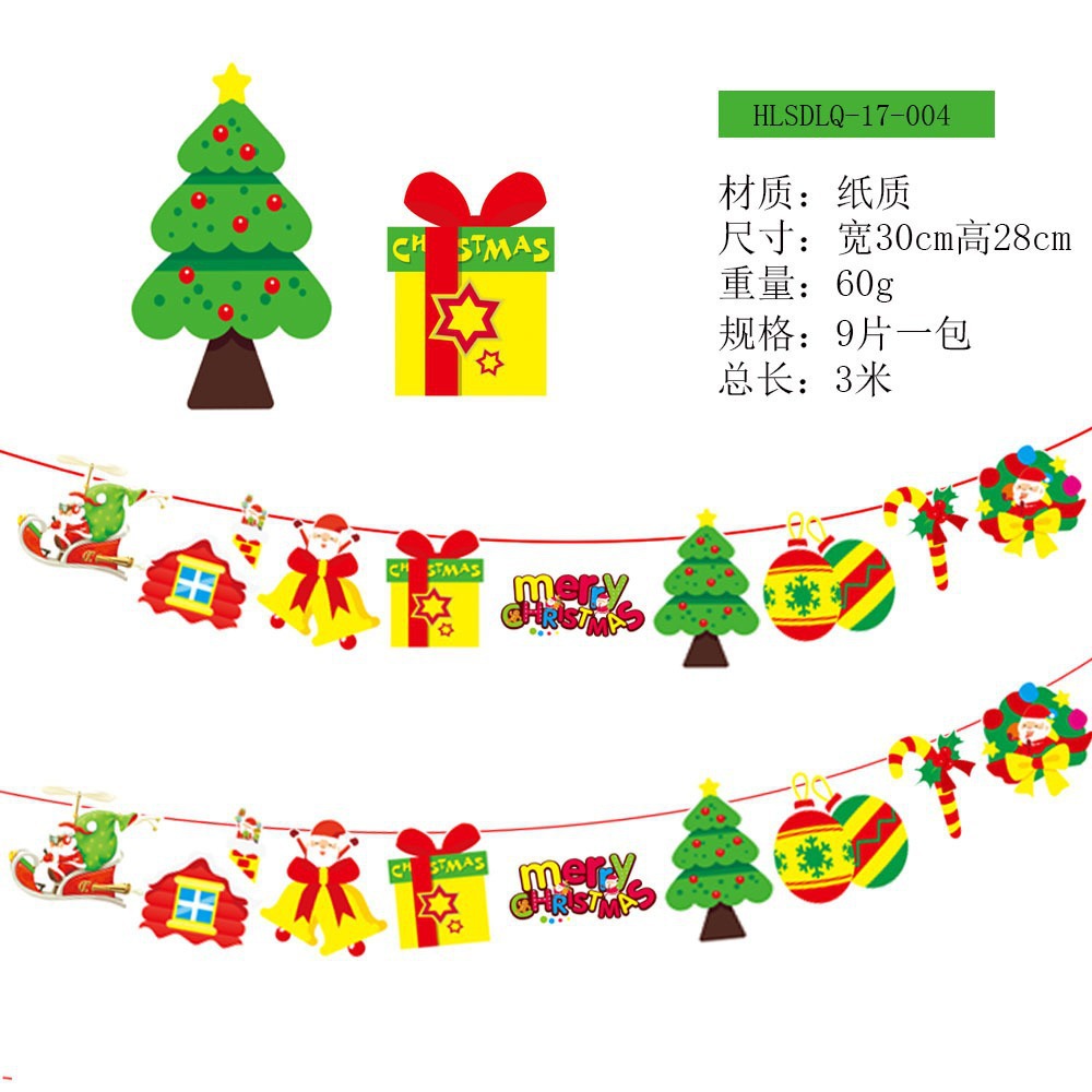 圣诞纸质拉旗拉花横幅圣诞节派对装饰用品圣诞雪人麋鹿三角旗彩旗