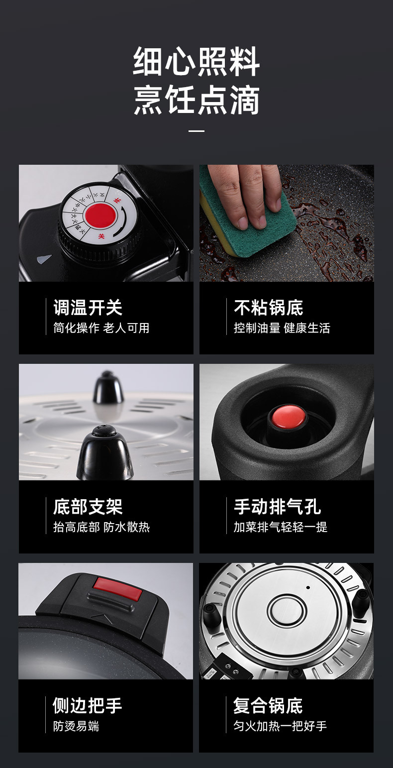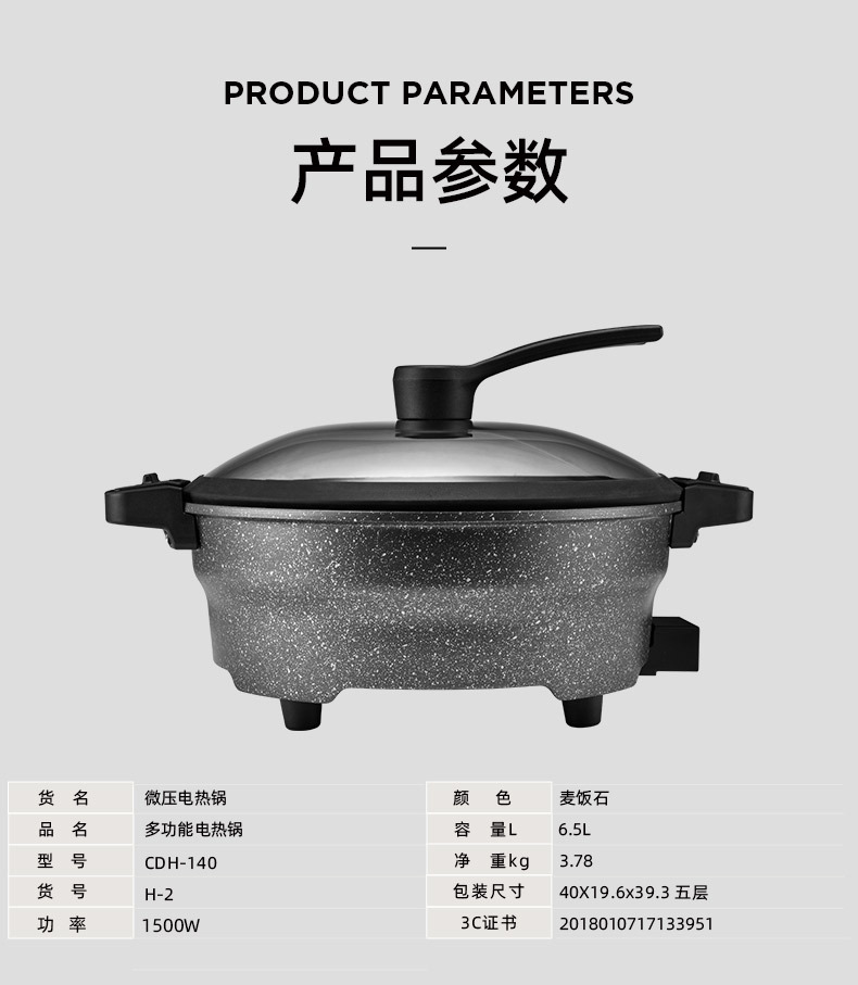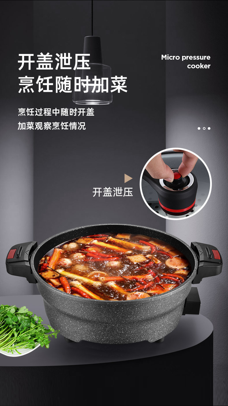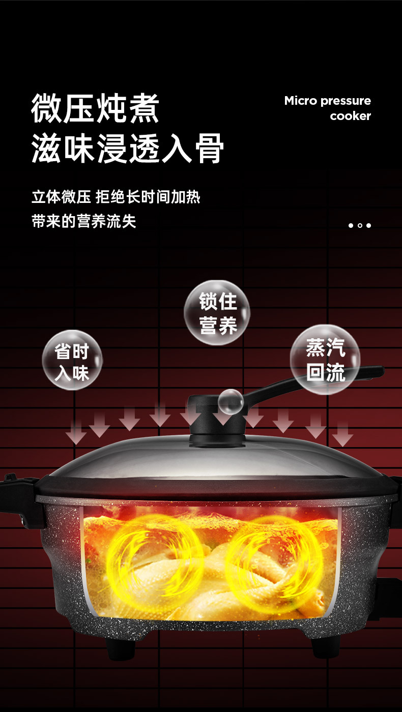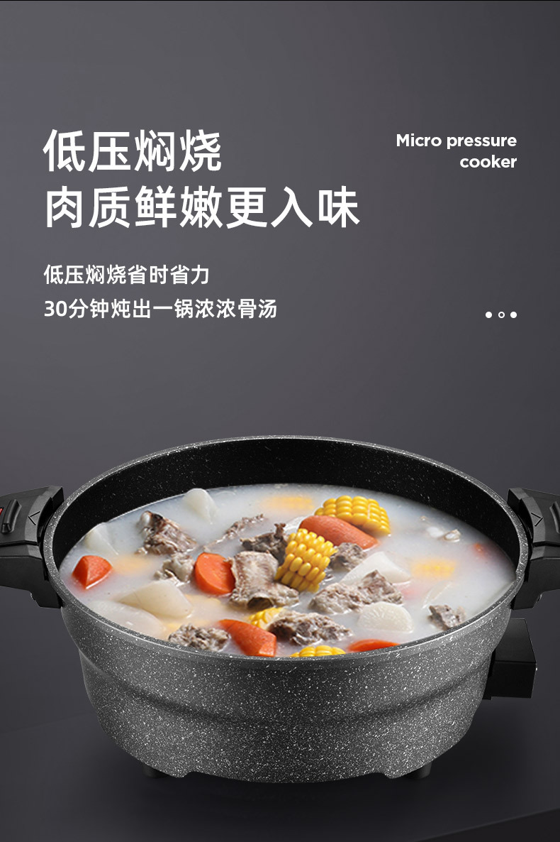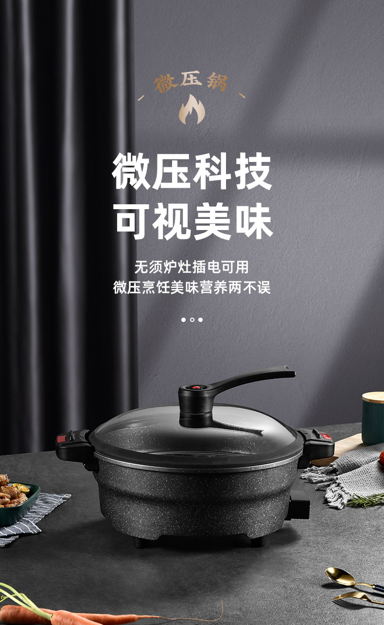 新款麦饭石电微压锅电炒锅家用大容量一锅多用多功能不粘电火锅