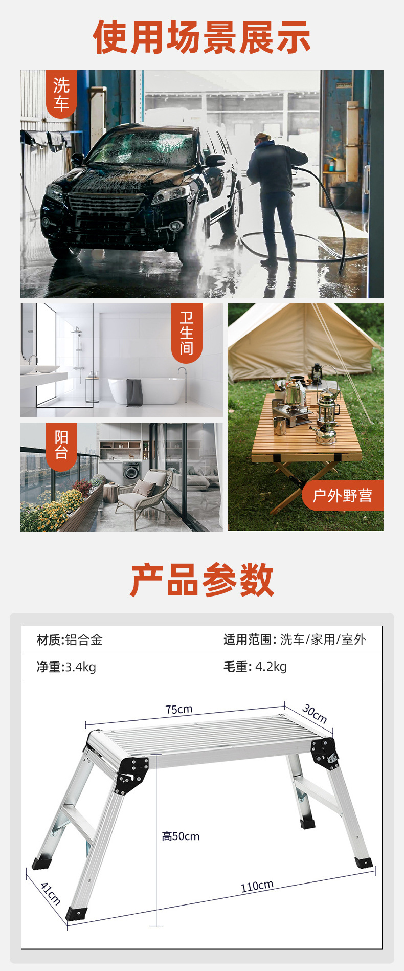 家用铝合金便携梯子户外洗车凳室内外装修折叠便携马凳