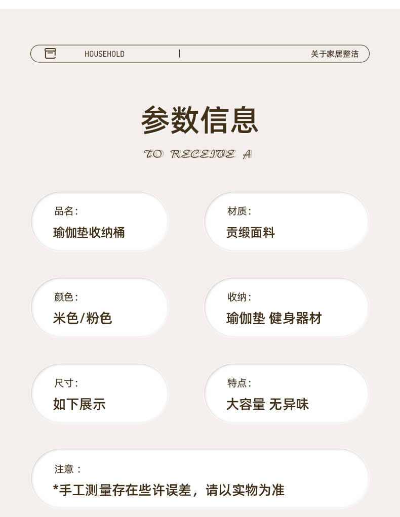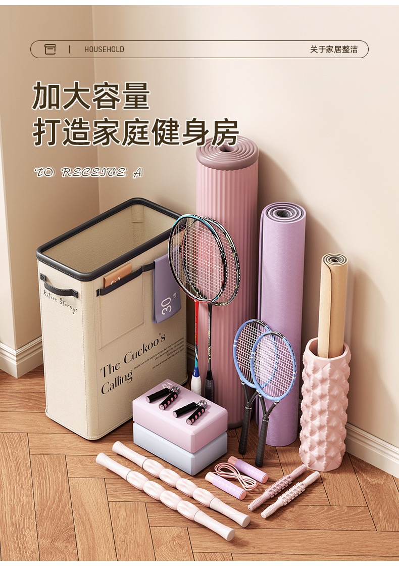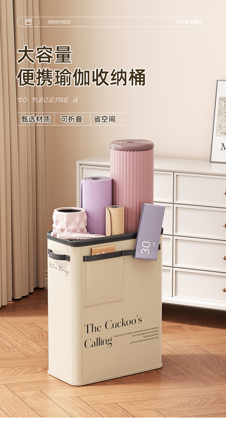运动装备收纳筐家用瑜伽垫锻炼器材环保收纳可折叠水洗布艺瑜伽桶