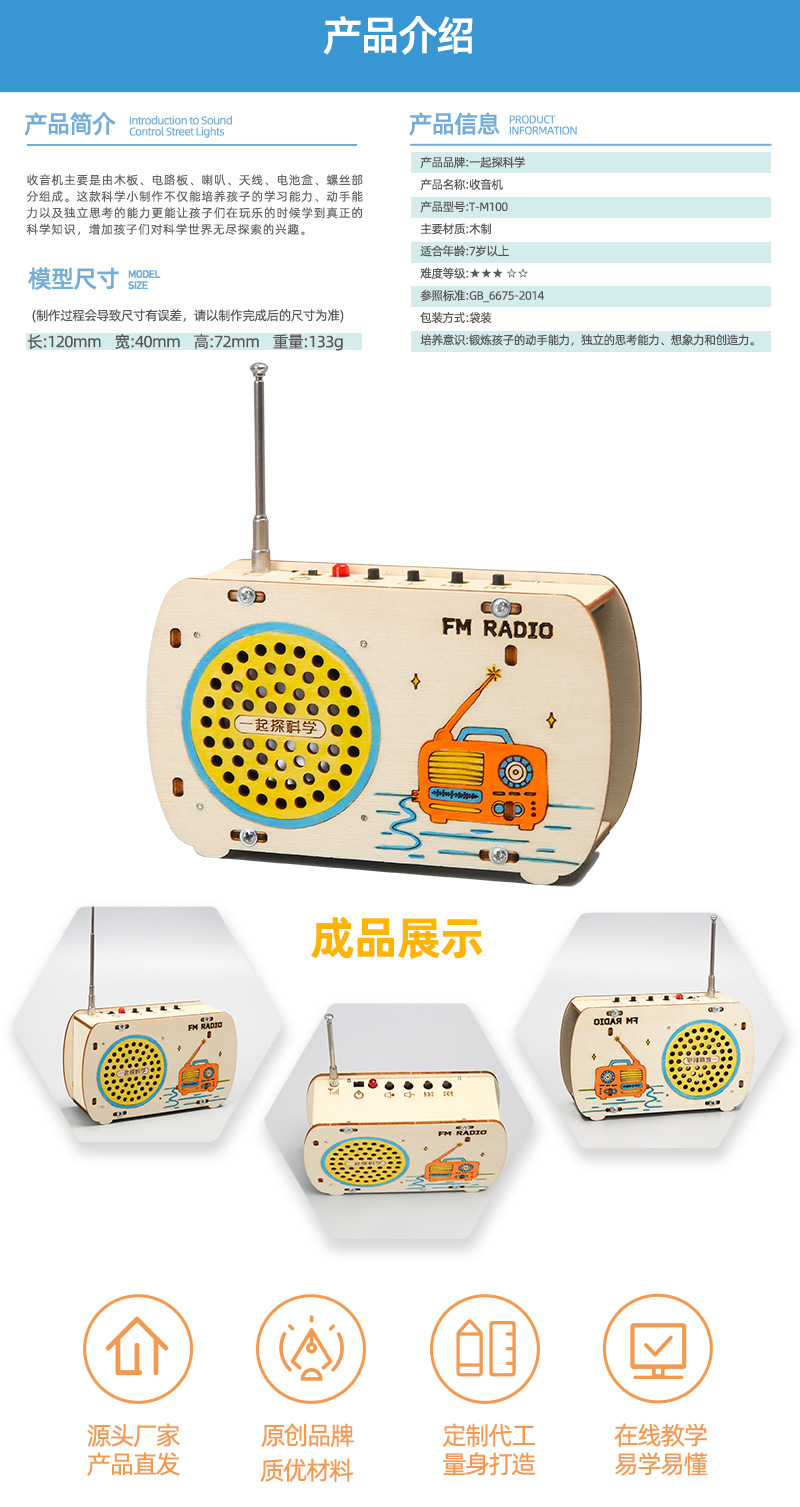 科技小制作儿童益智玩具DIY收音机学生自制手工模型科学实验批发