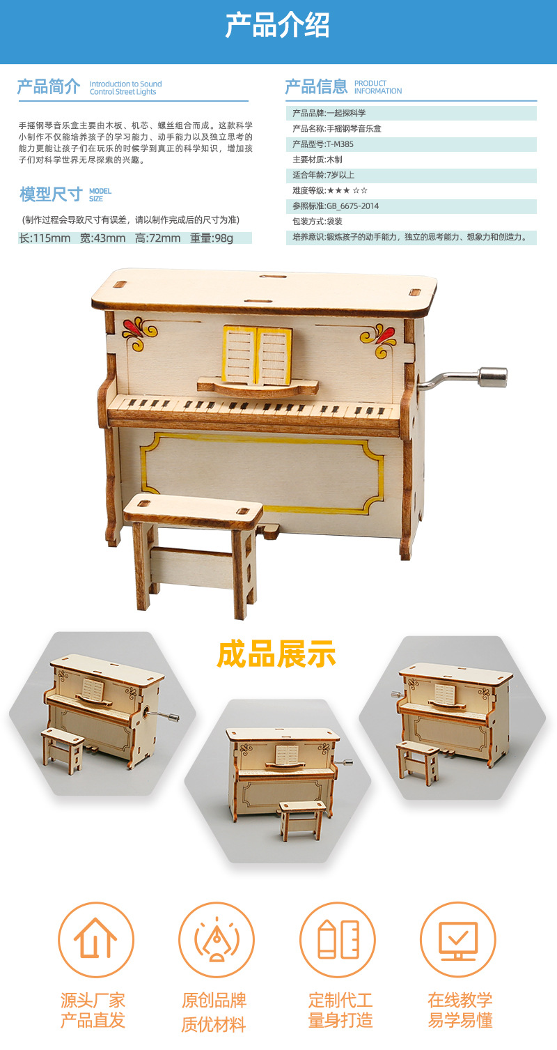 儿童手摇钢琴音乐盒小学生科技手工八音盒制材料DIY科学实验玩具