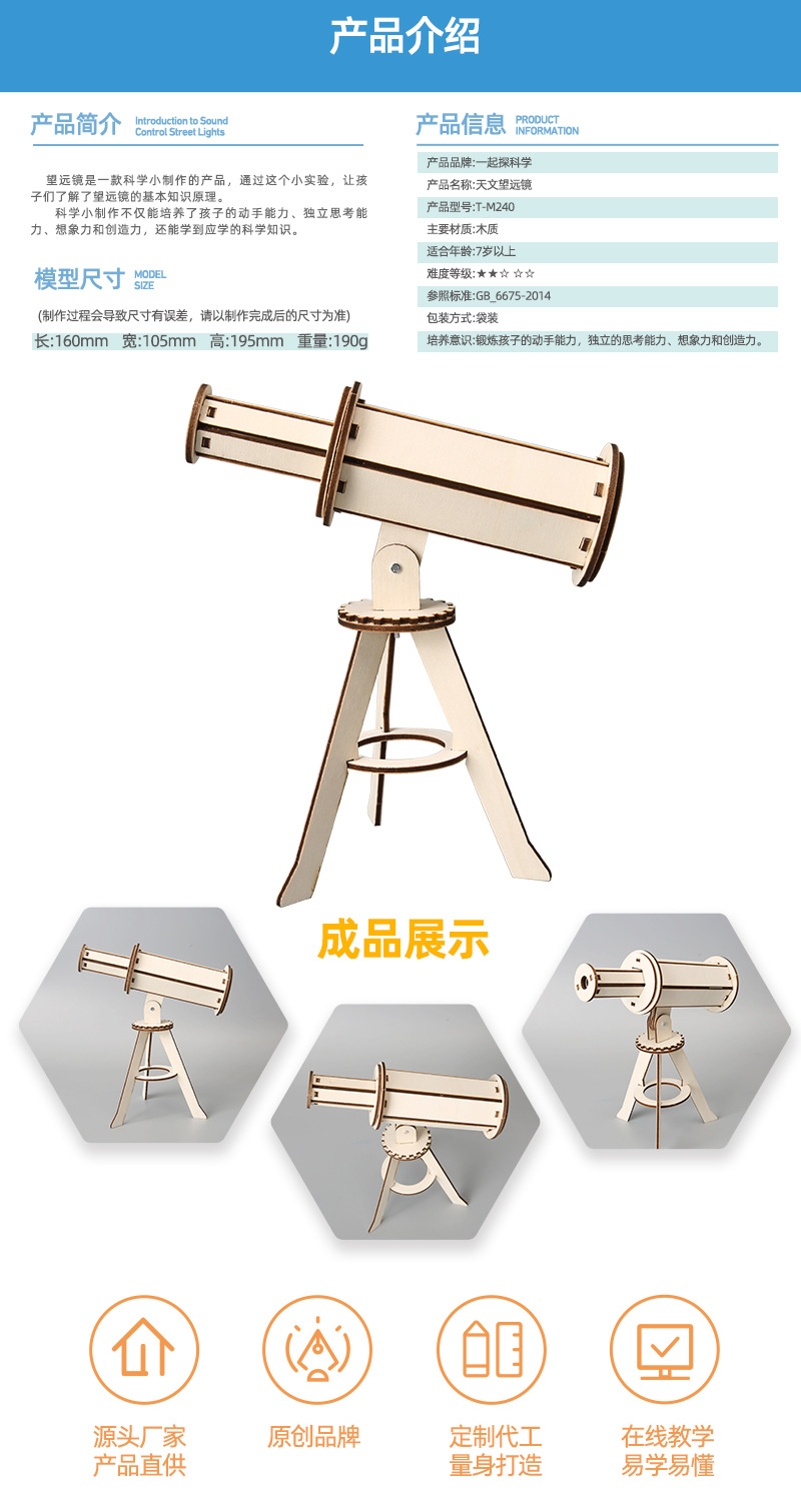diy科技小制作天文望远镜模型儿童手工拼装玩具材料物理科学实验